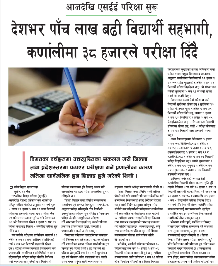 एसईई परीक्षालाई मर्यादित बनाउन जोड