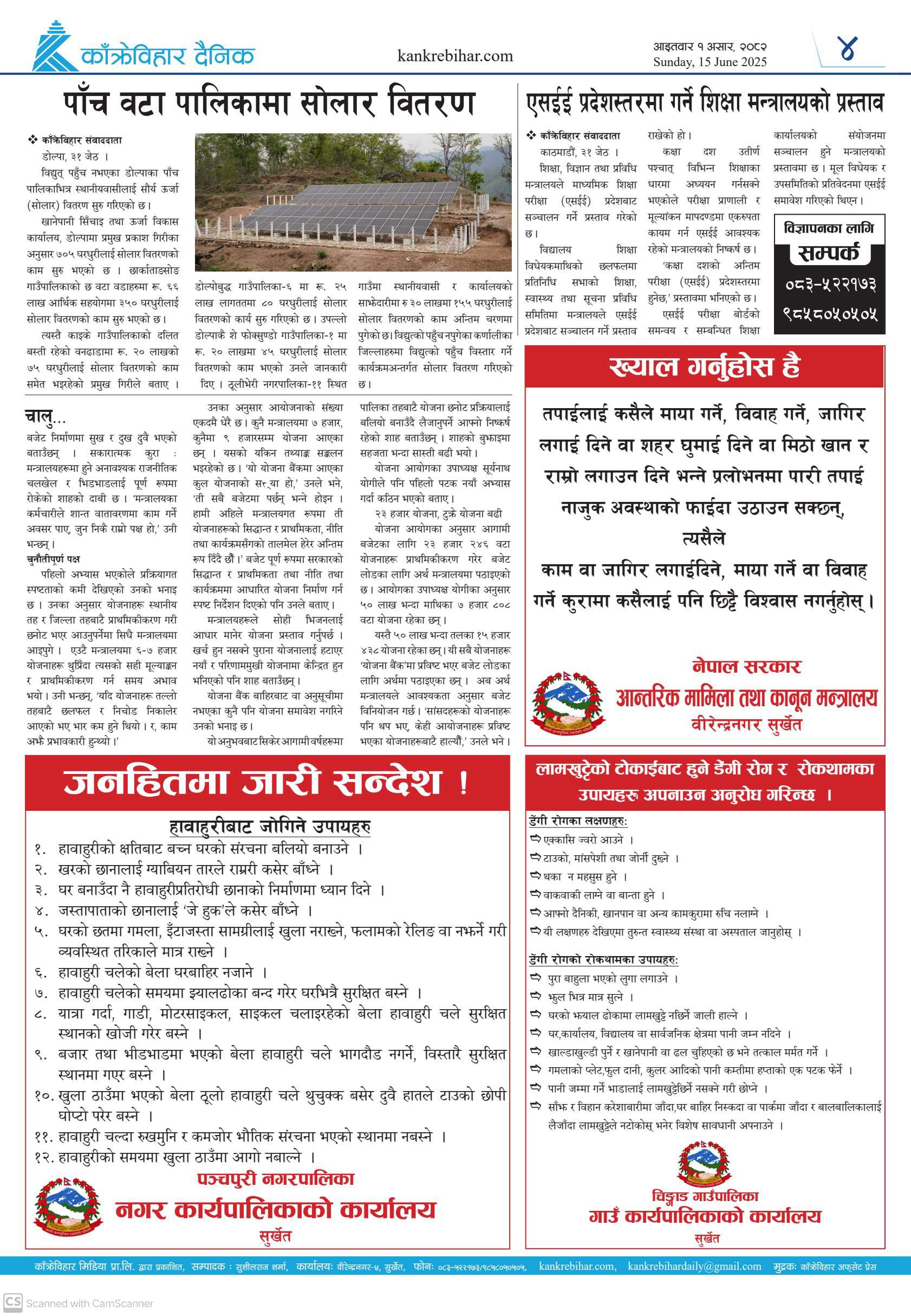 काँक्रेविहार दैनिकः आइतवार १ असर २०८२, 15 Jun 2025