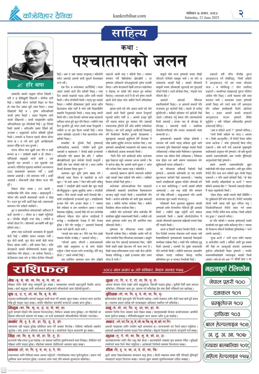 काँक्रेविहार दैनिकः शनिवार ७ असर २०८२, 21 Jun 2025
