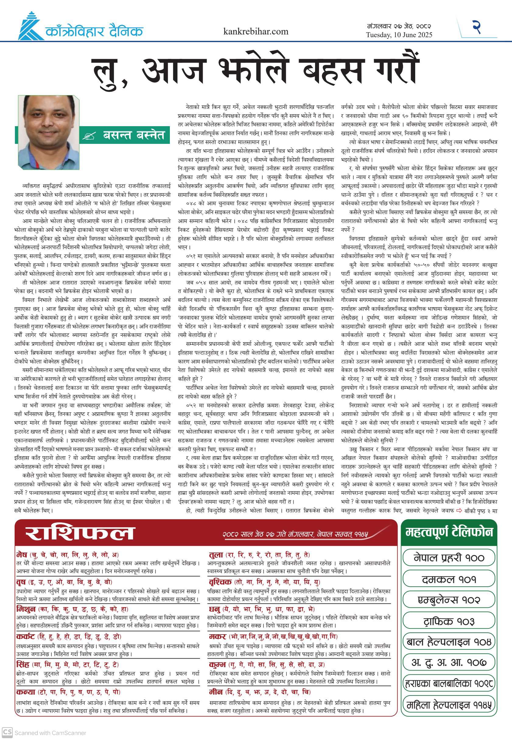 काँक्रेविहार दैनिकः मंगलवार २७ जेठ २०८२, 10 Jun 2025