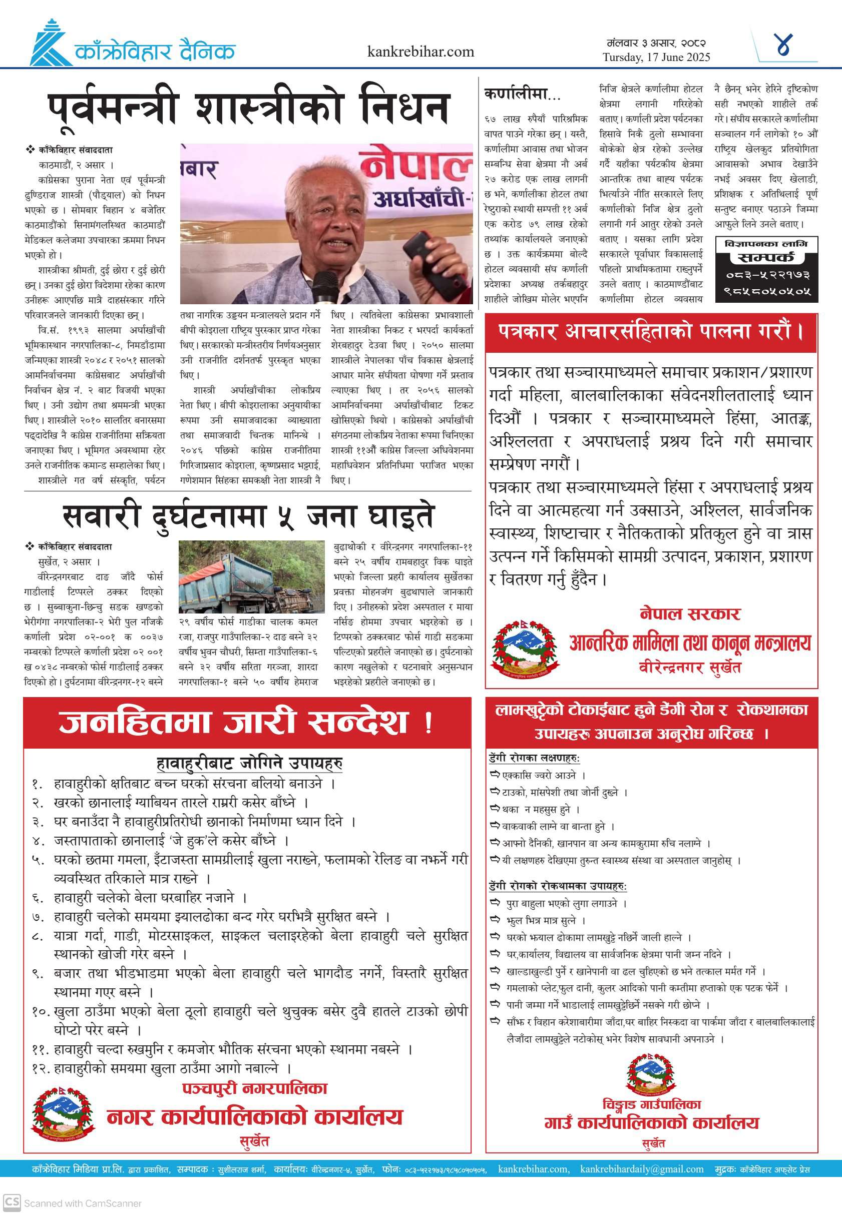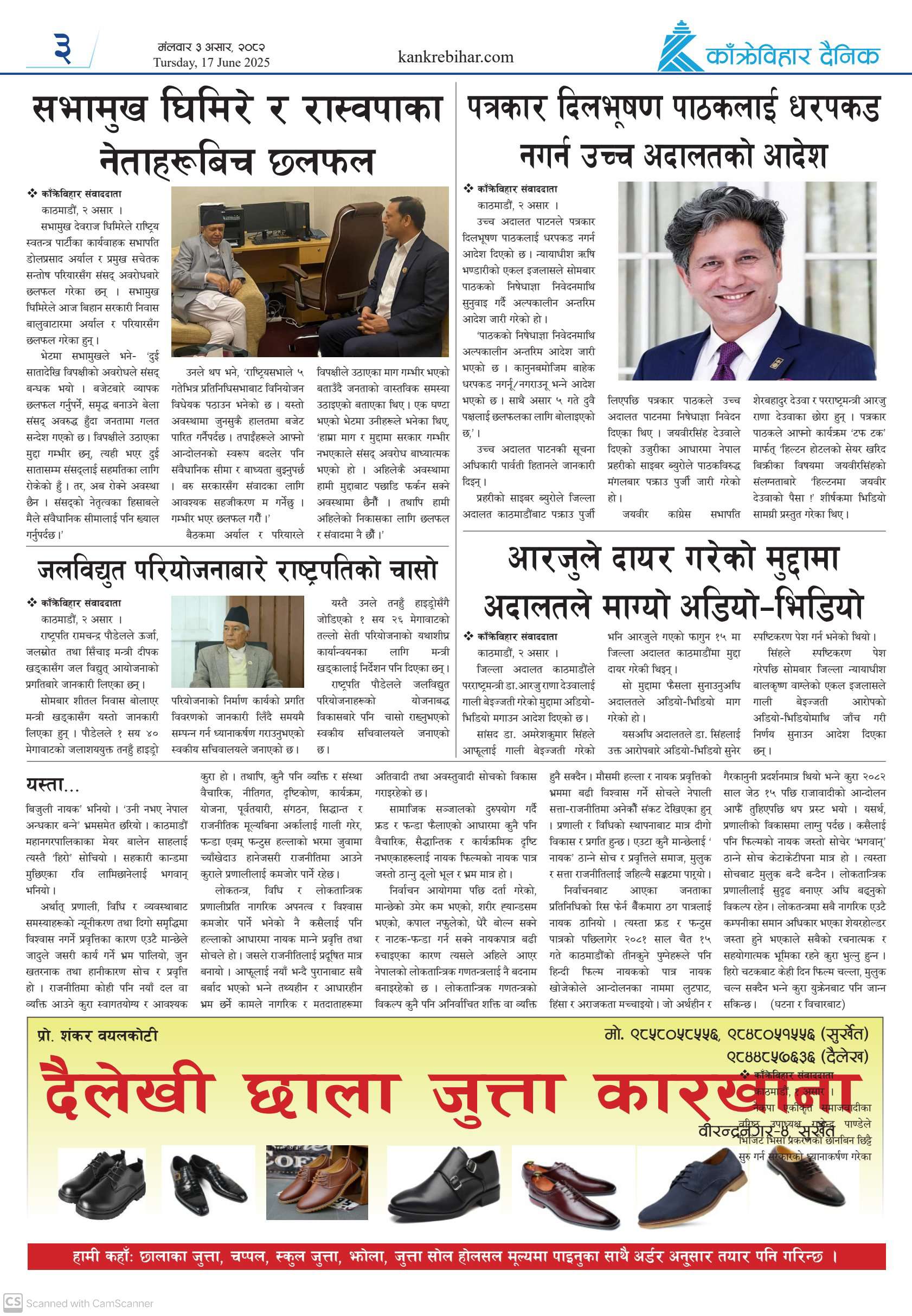 काँक्रेविहार दैनिकः मंगलवार ३ असर २०८२, 17 Jun 2025