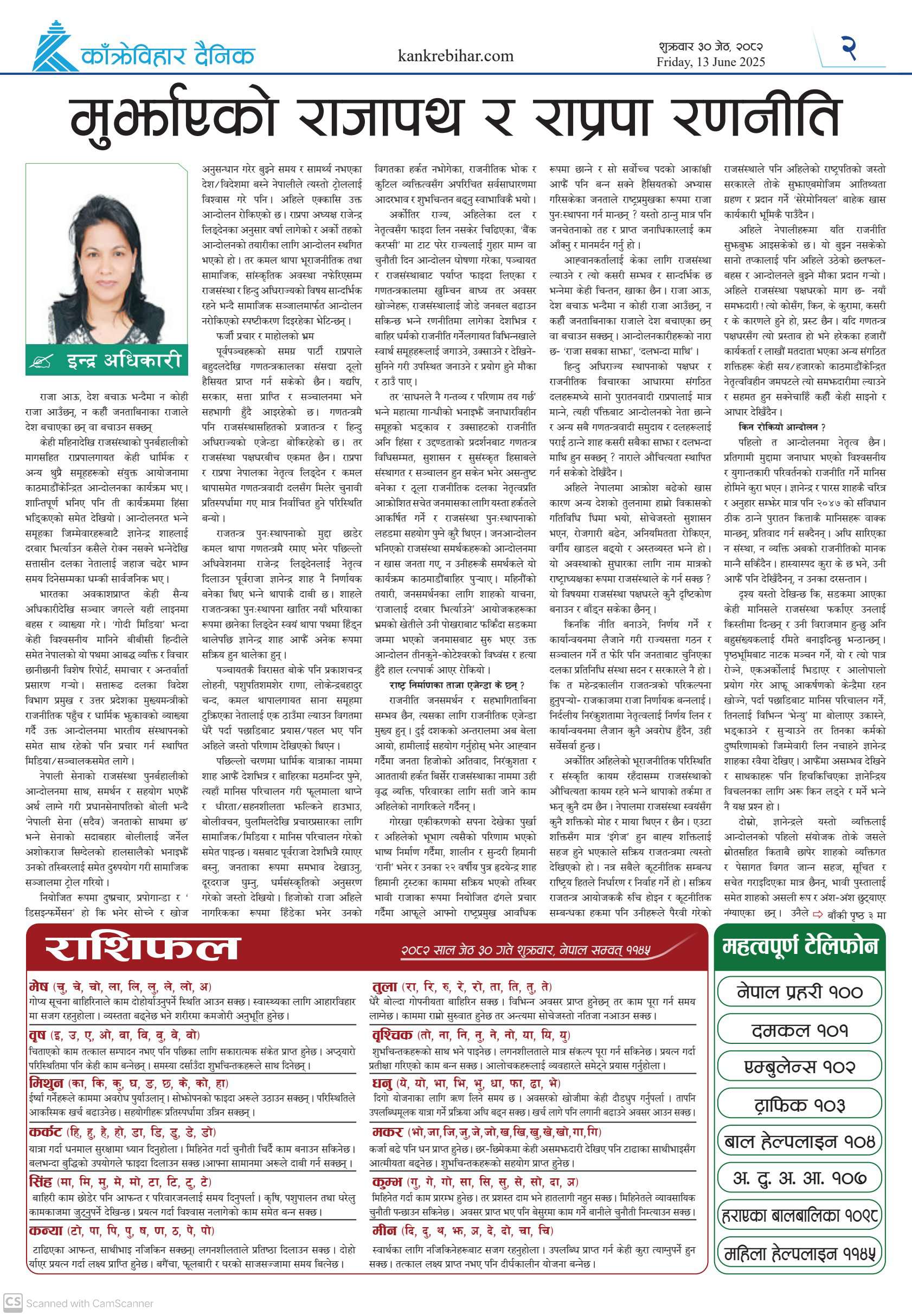 काँक्रेविहार दैनिकः शुक्रवार ३० जेठ २०८२, 13 Jun 2025