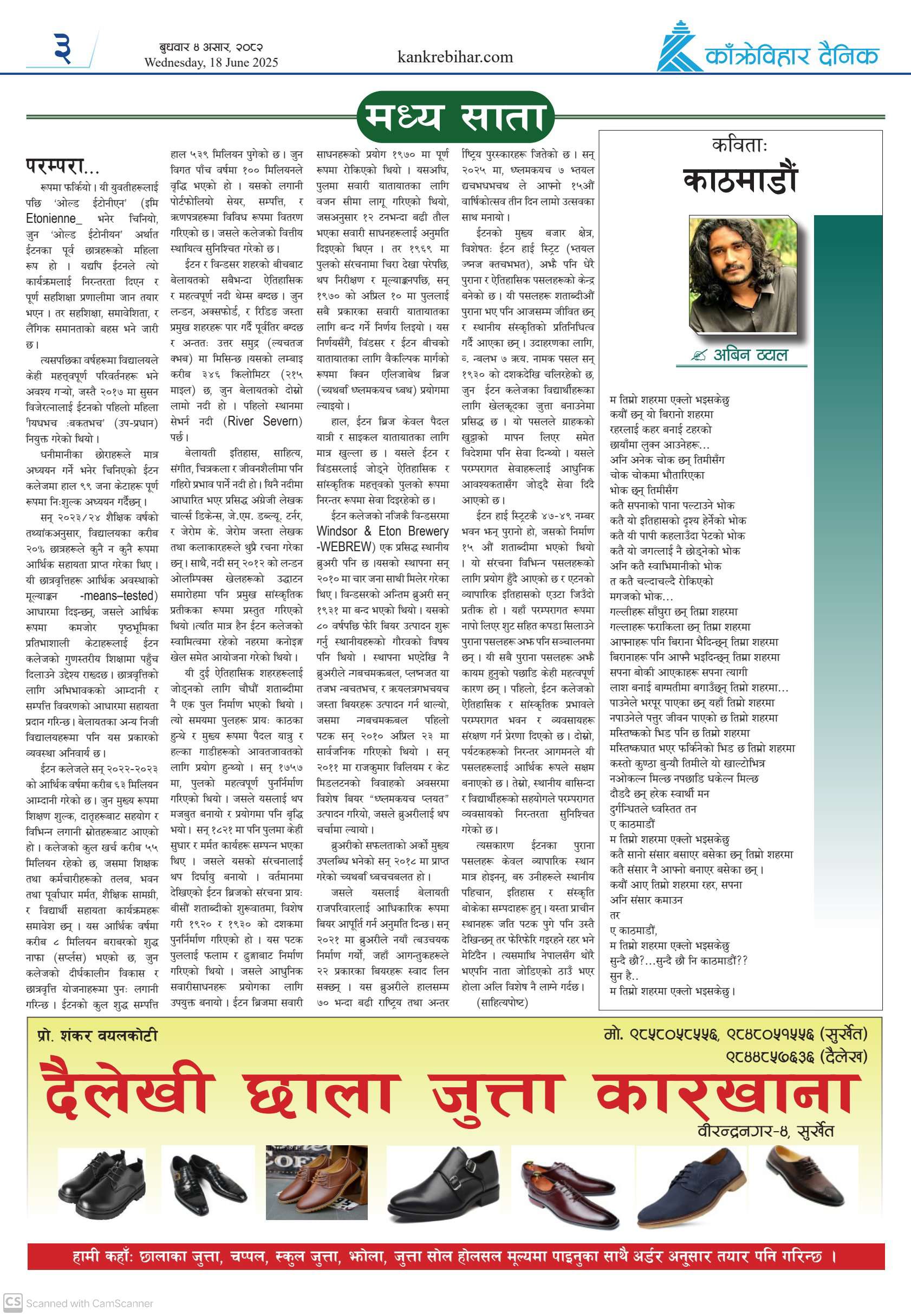 काँक्रेविहार दैनिकः बिहिवार २९ जेठ २०८२, 12 Jun 2025