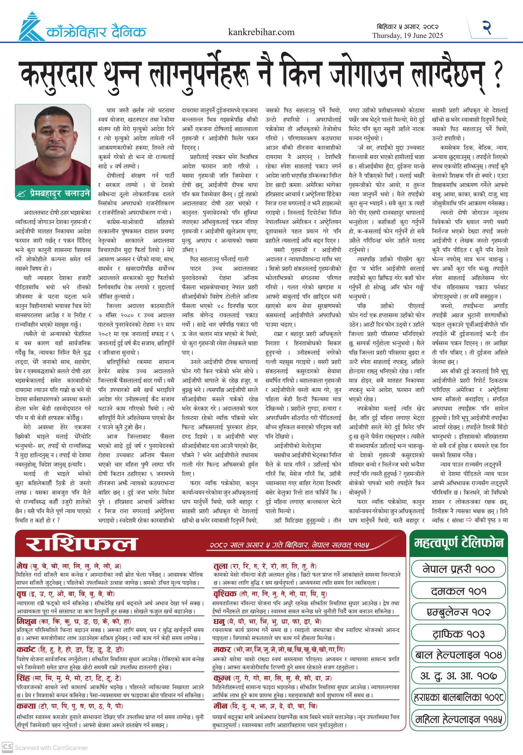 काँक्रेविहार दैनिकः विहिवार ५ असर २०८२, 19 Jun 2025