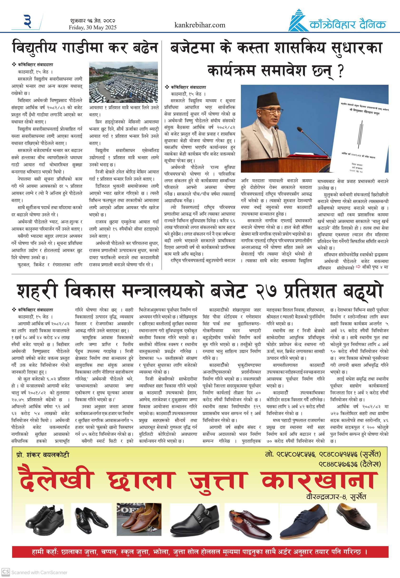 काँक्रेविहार दैनिकः शुक्रवार १६ जेठ २०८२, 30 May 2025