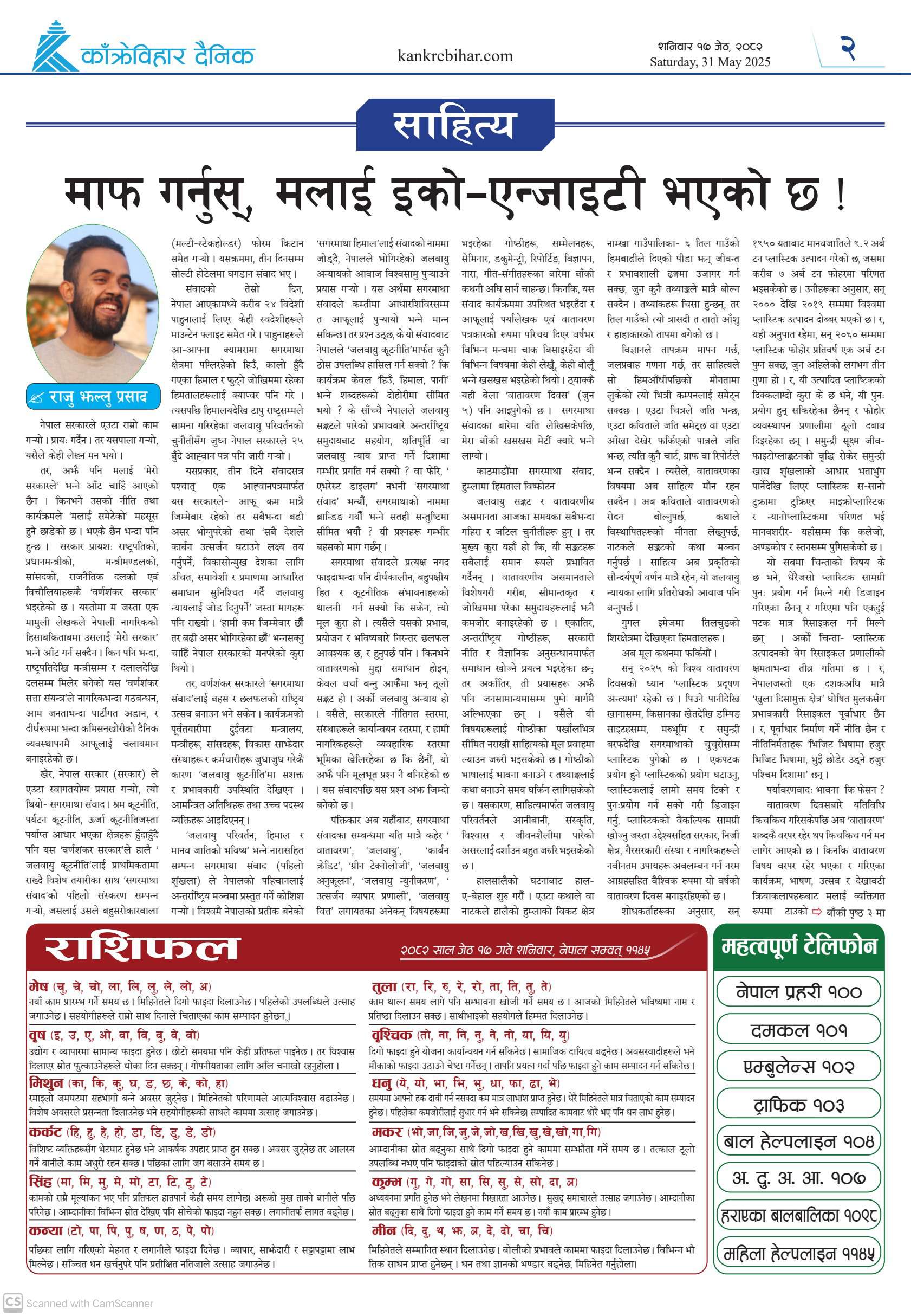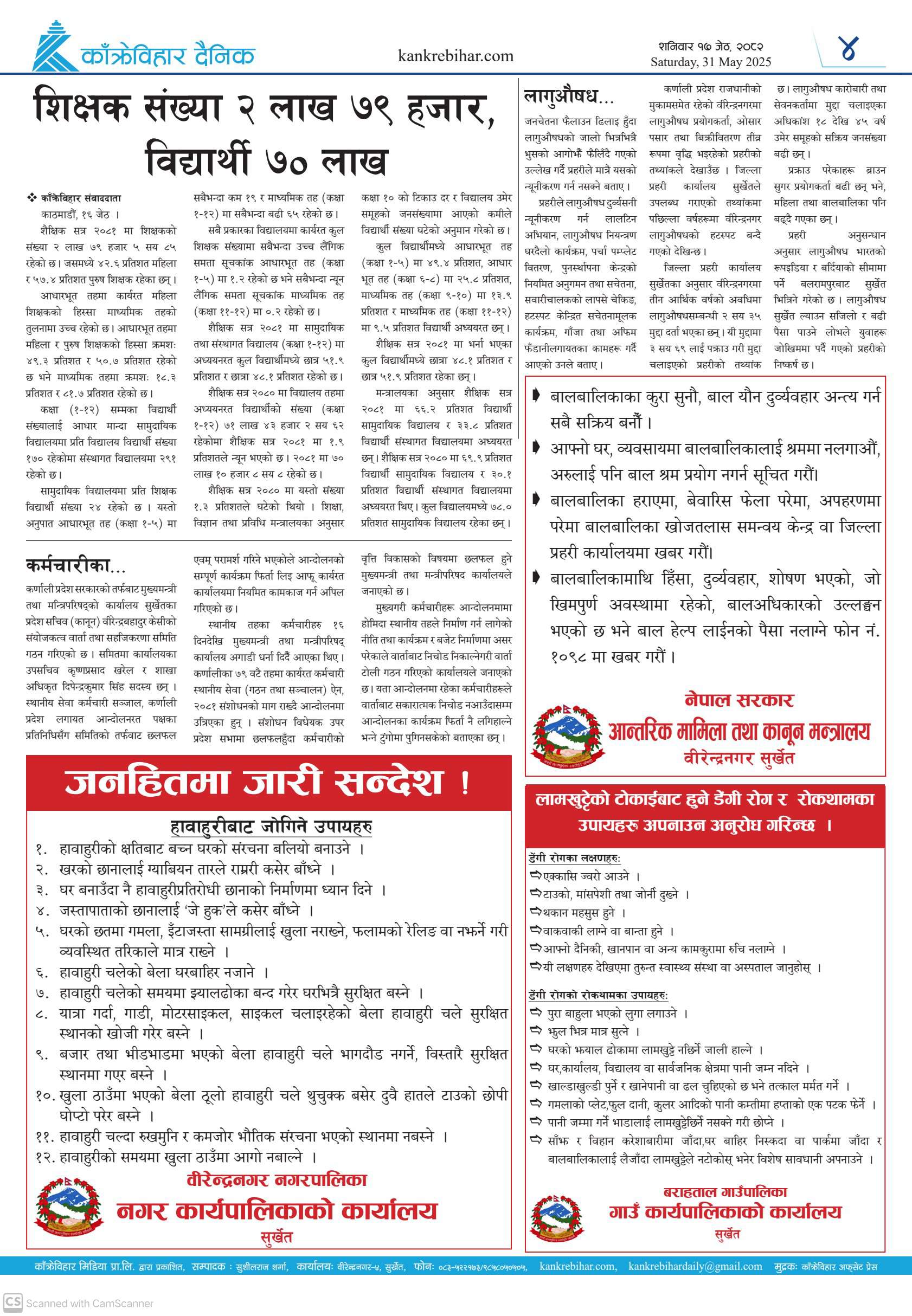काँक्रेविहार दैनिकः शनिवार १७ जेठ २०८२, 31 May 2025