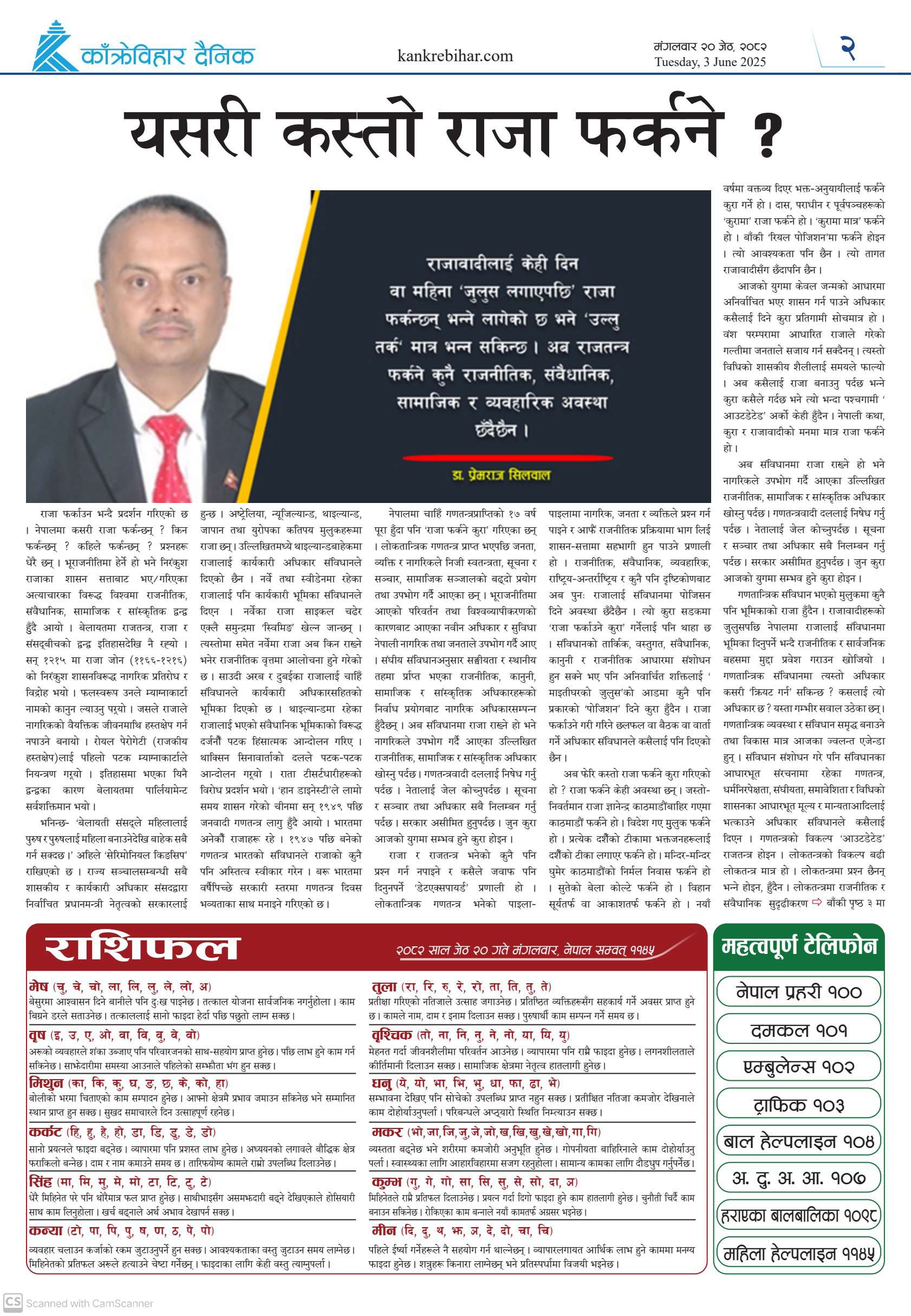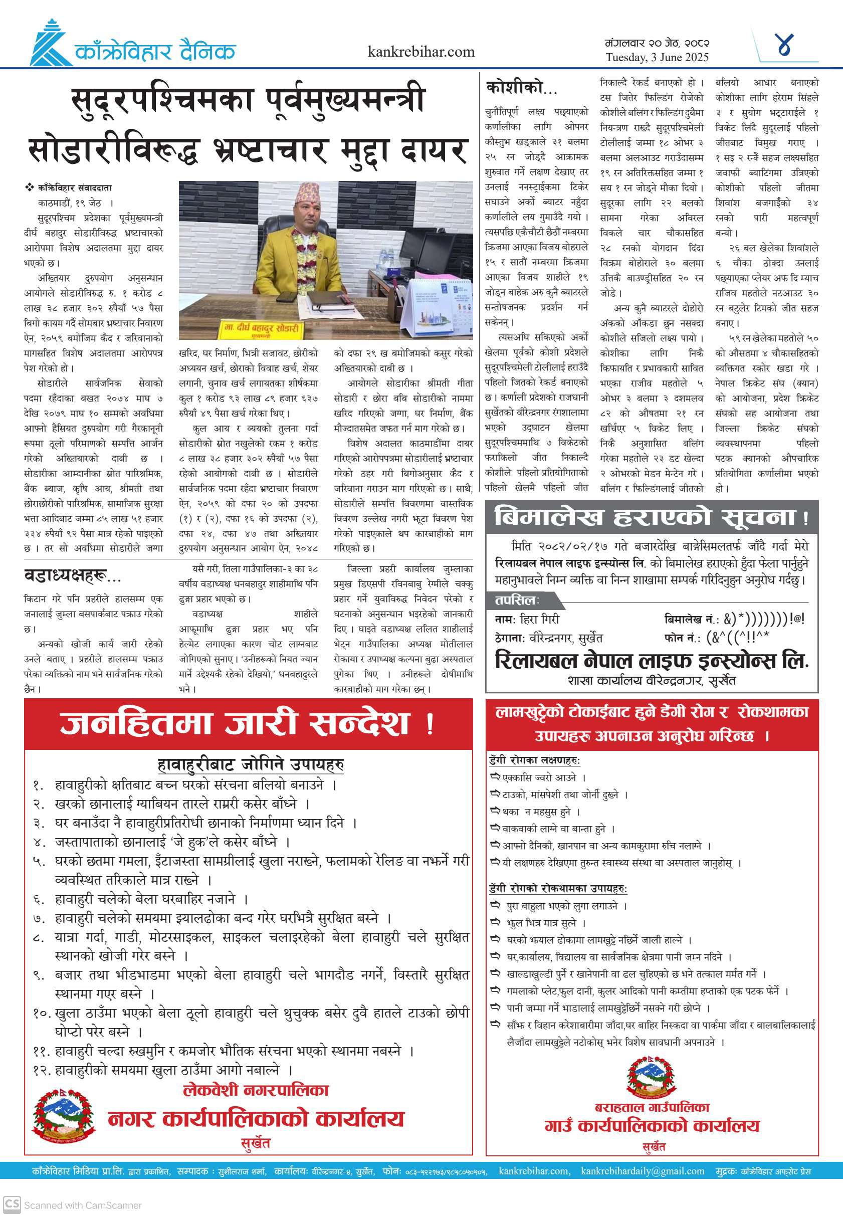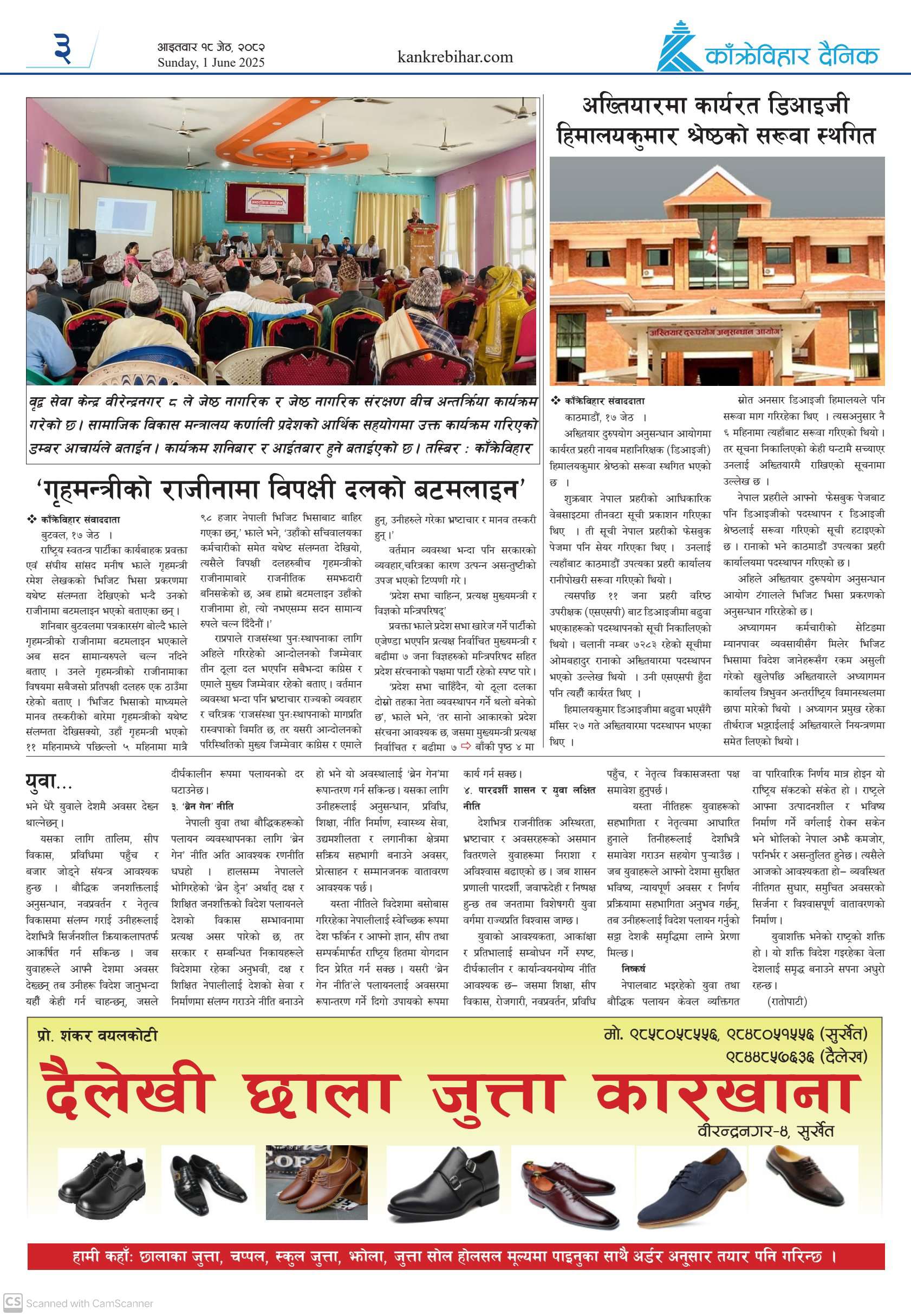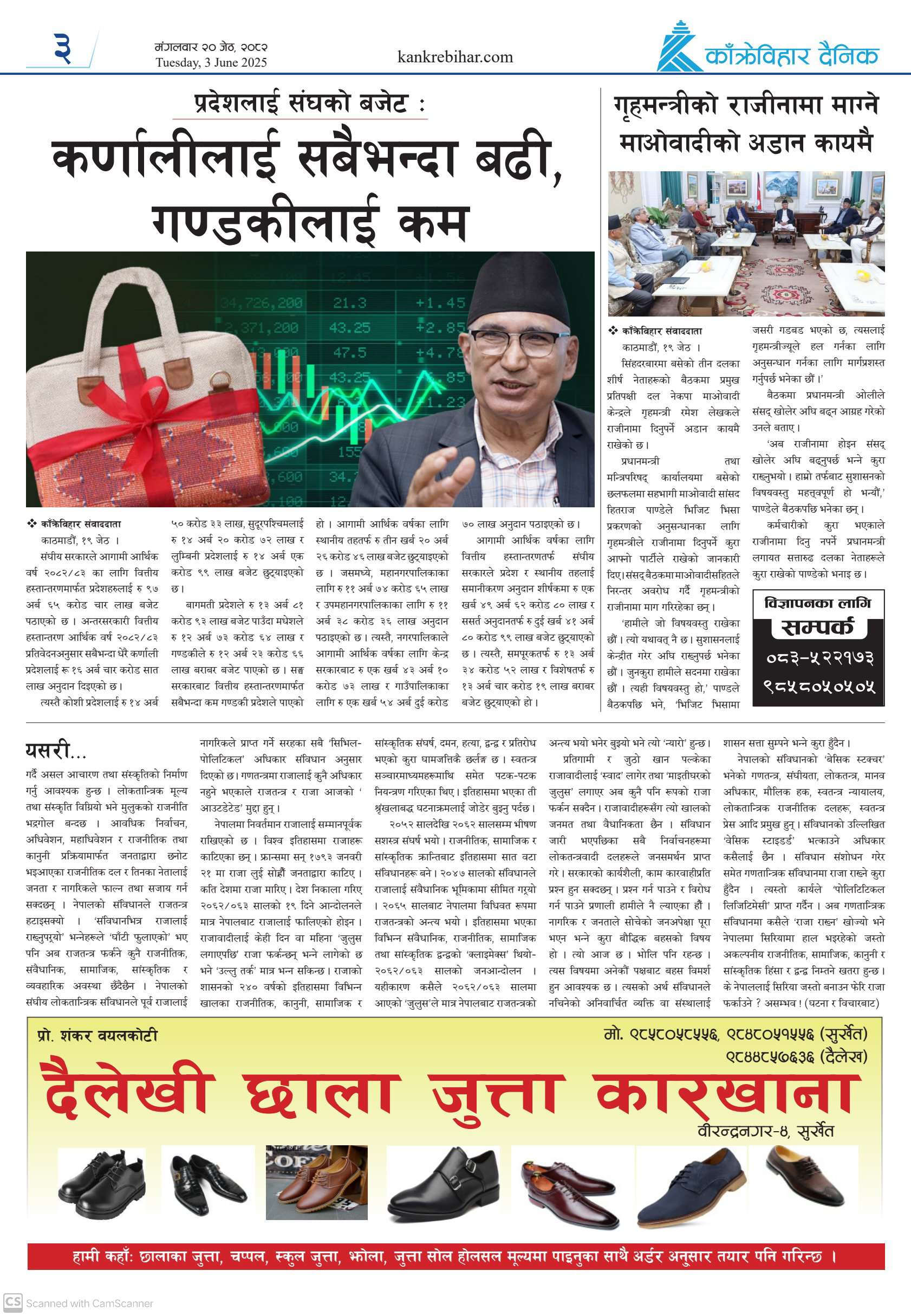 काँक्रेविहार दैनिकः मंगलवार २० जेठ २०८२, 3 Jun 2025