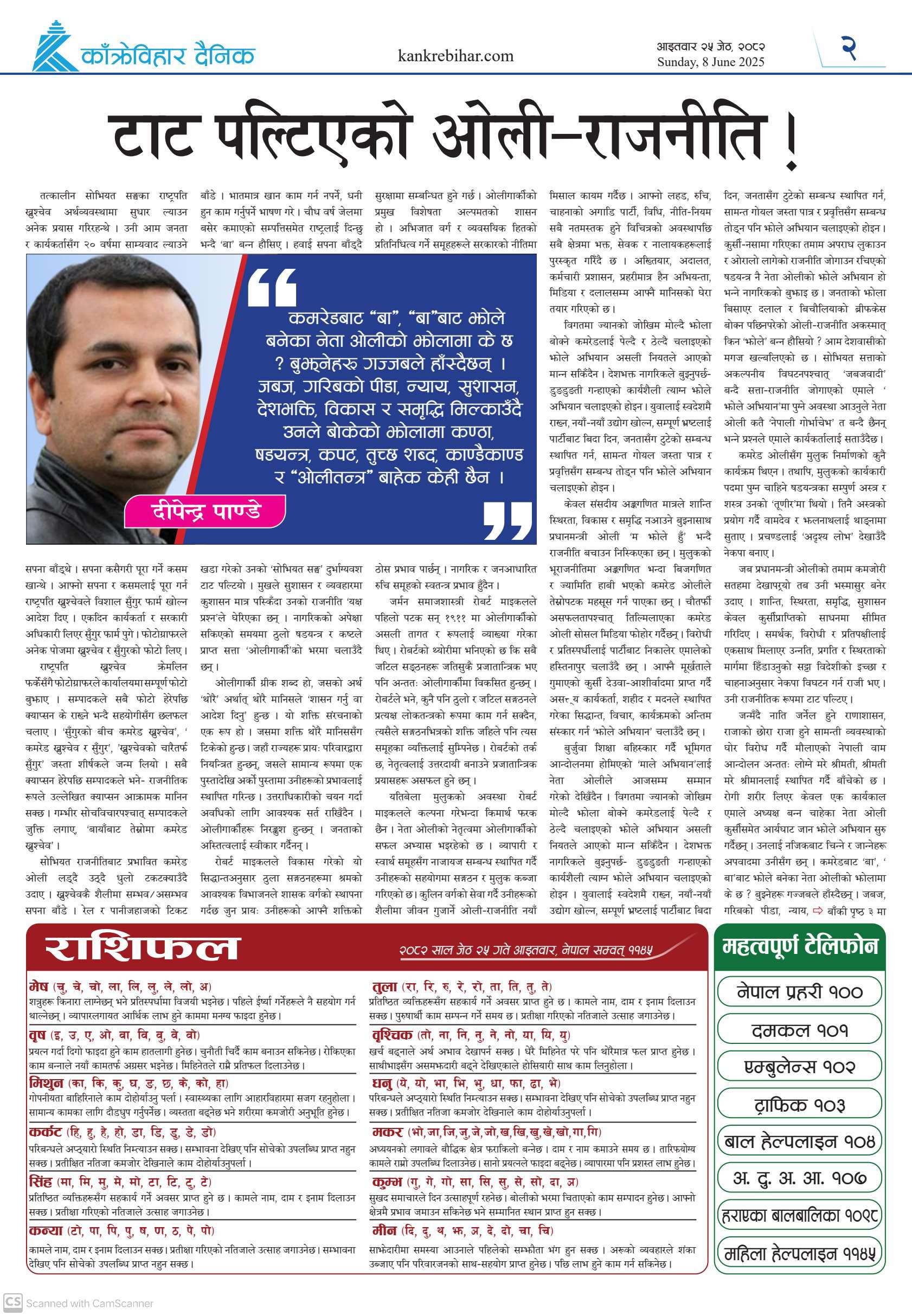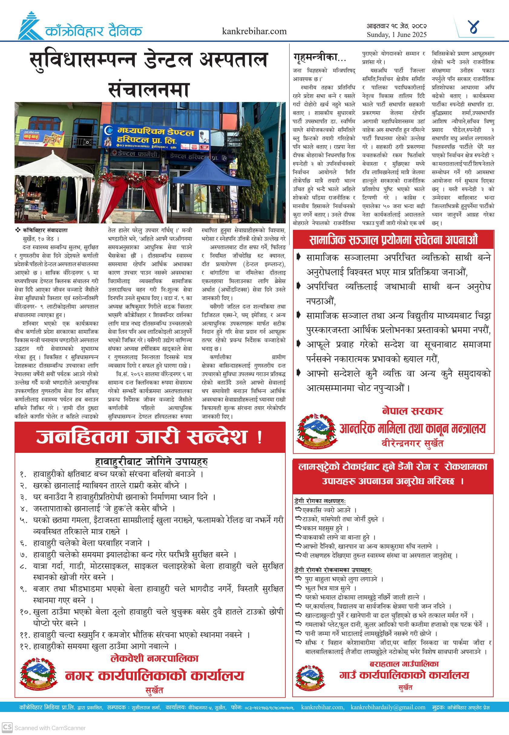 काँक्रेविहार दैनिकः आइतवार २५ जेठ २०८२, 8 Jun 2025