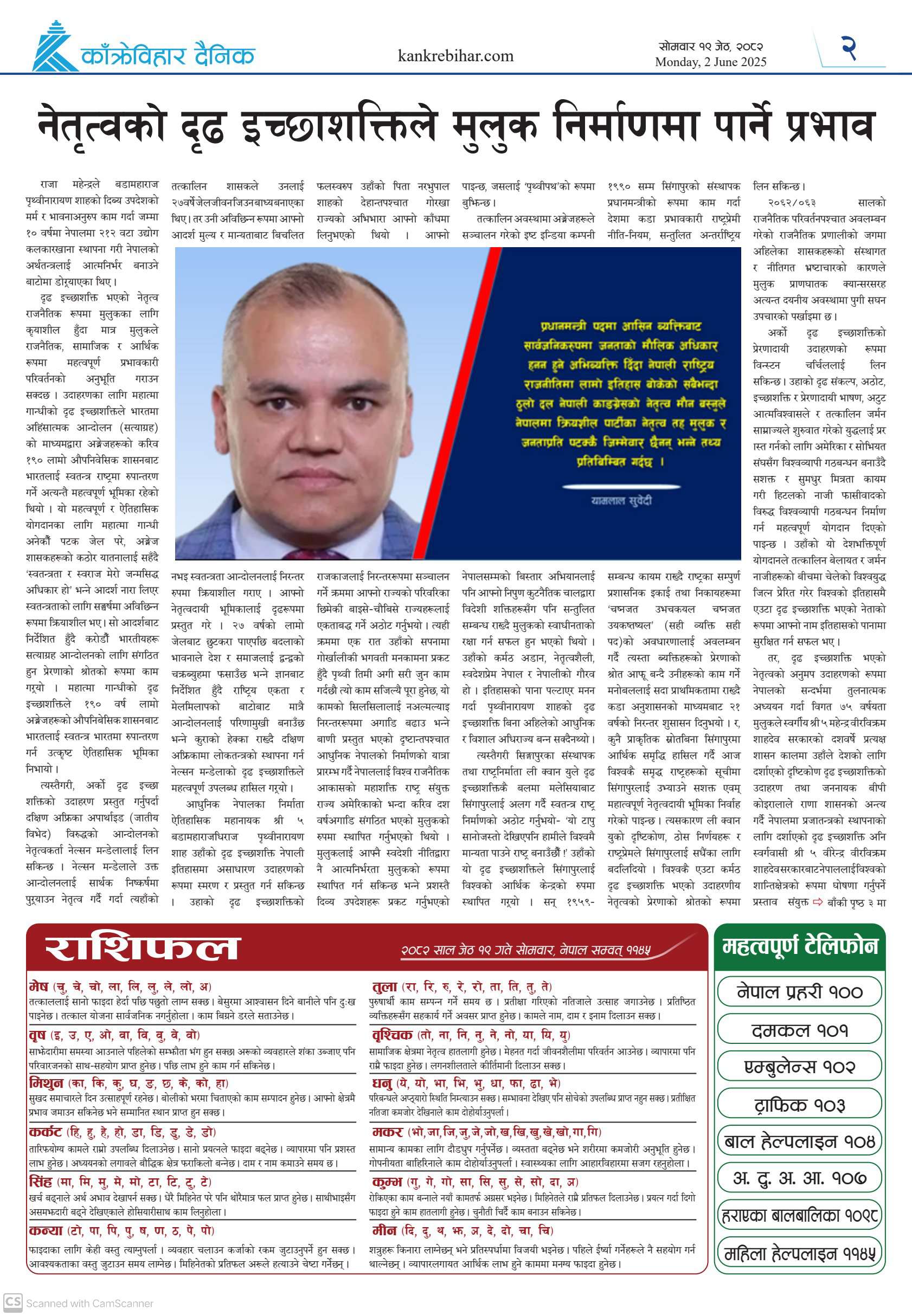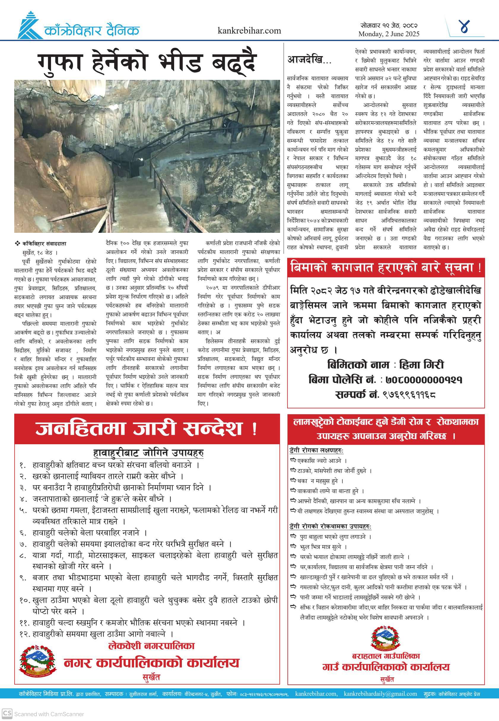 काँक्रेविहार दैनिकः सोमवार १९ जेठ २०८२, 2 Jun 2025