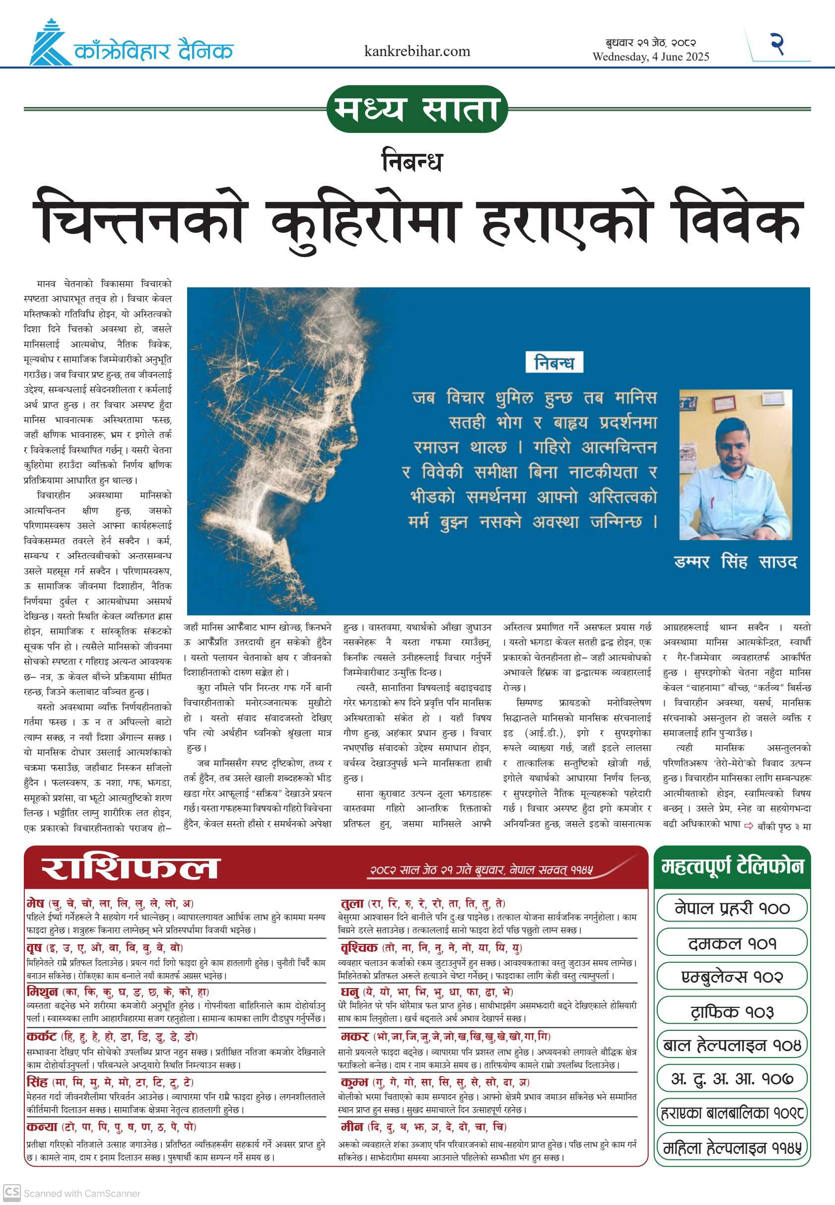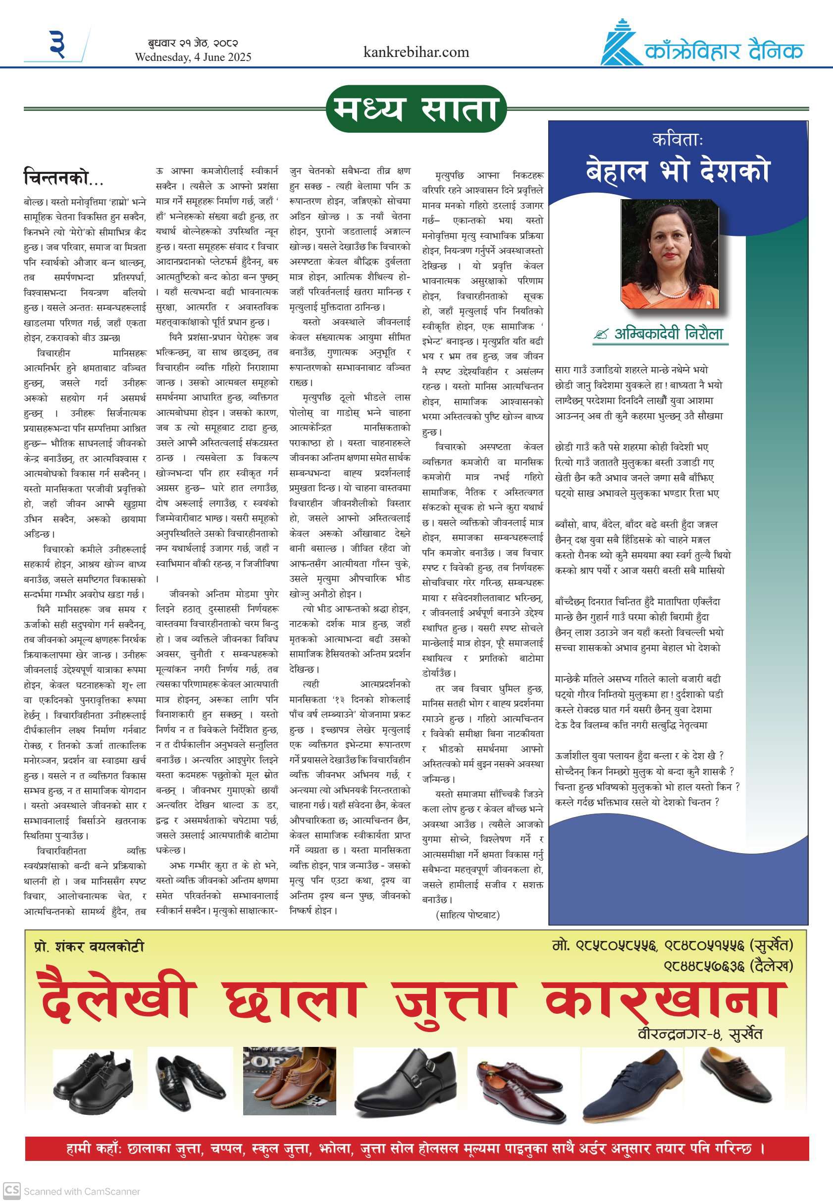 काँक्रेविहार दैनिकः बुधवार २१ जेठ २०८२, 4 Jun 2025