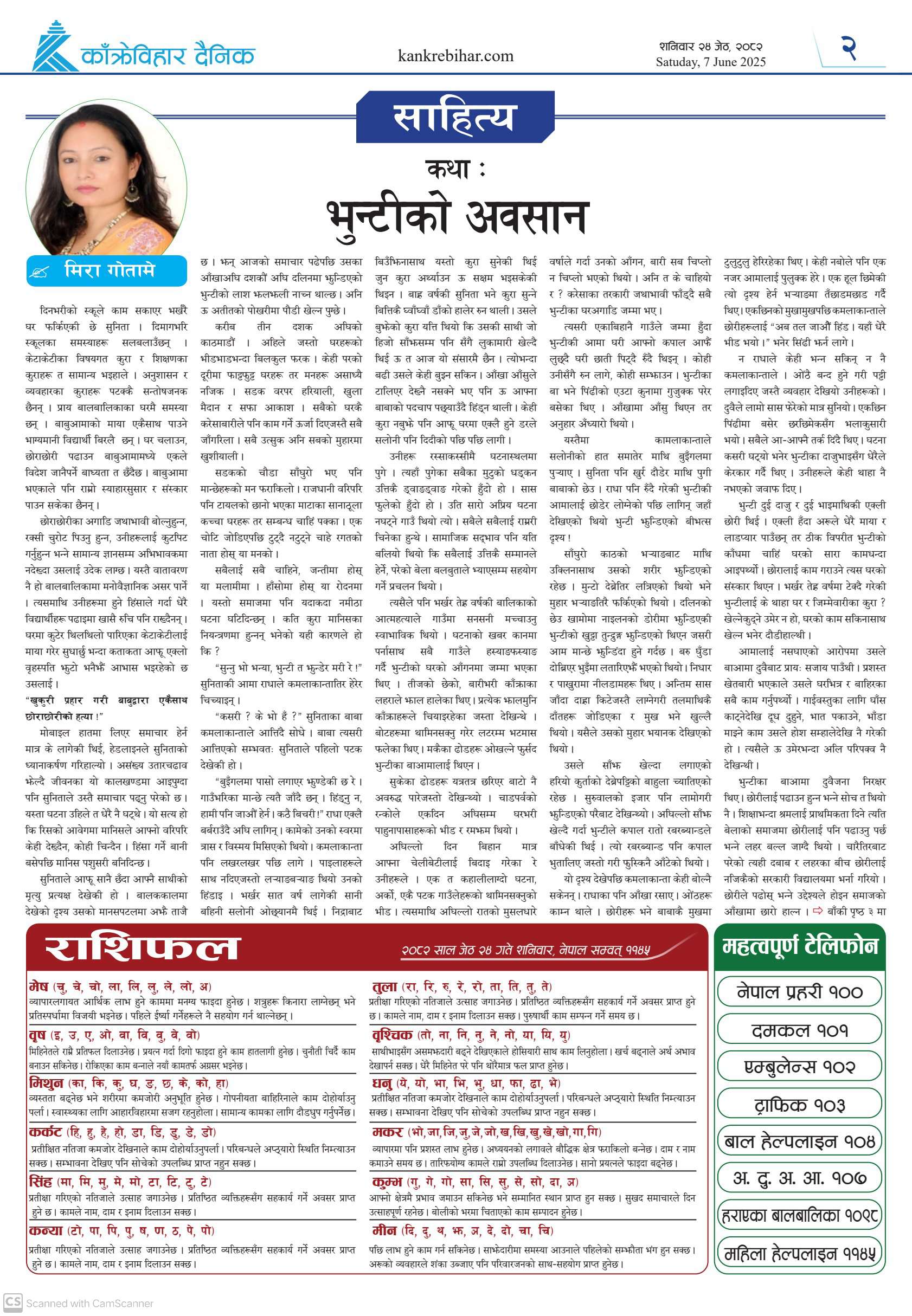 काँक्रेविहार दैनिकः शनिवार २४ जेठ २०८२, 7 Jun 2025