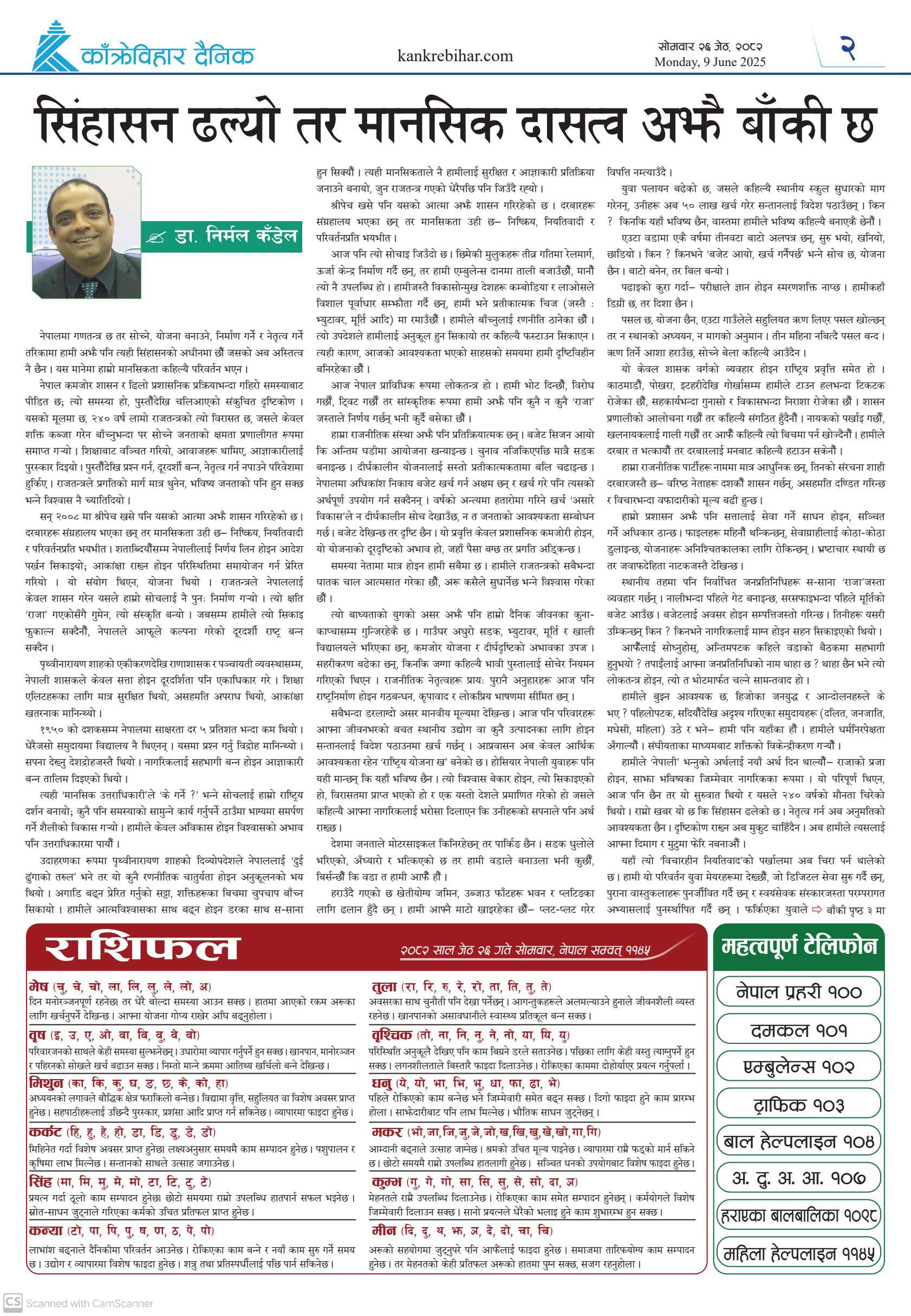 काँक्रेविहार दैनिकः सोमवार २६ जेठ २०८२, 9 Jun 2025