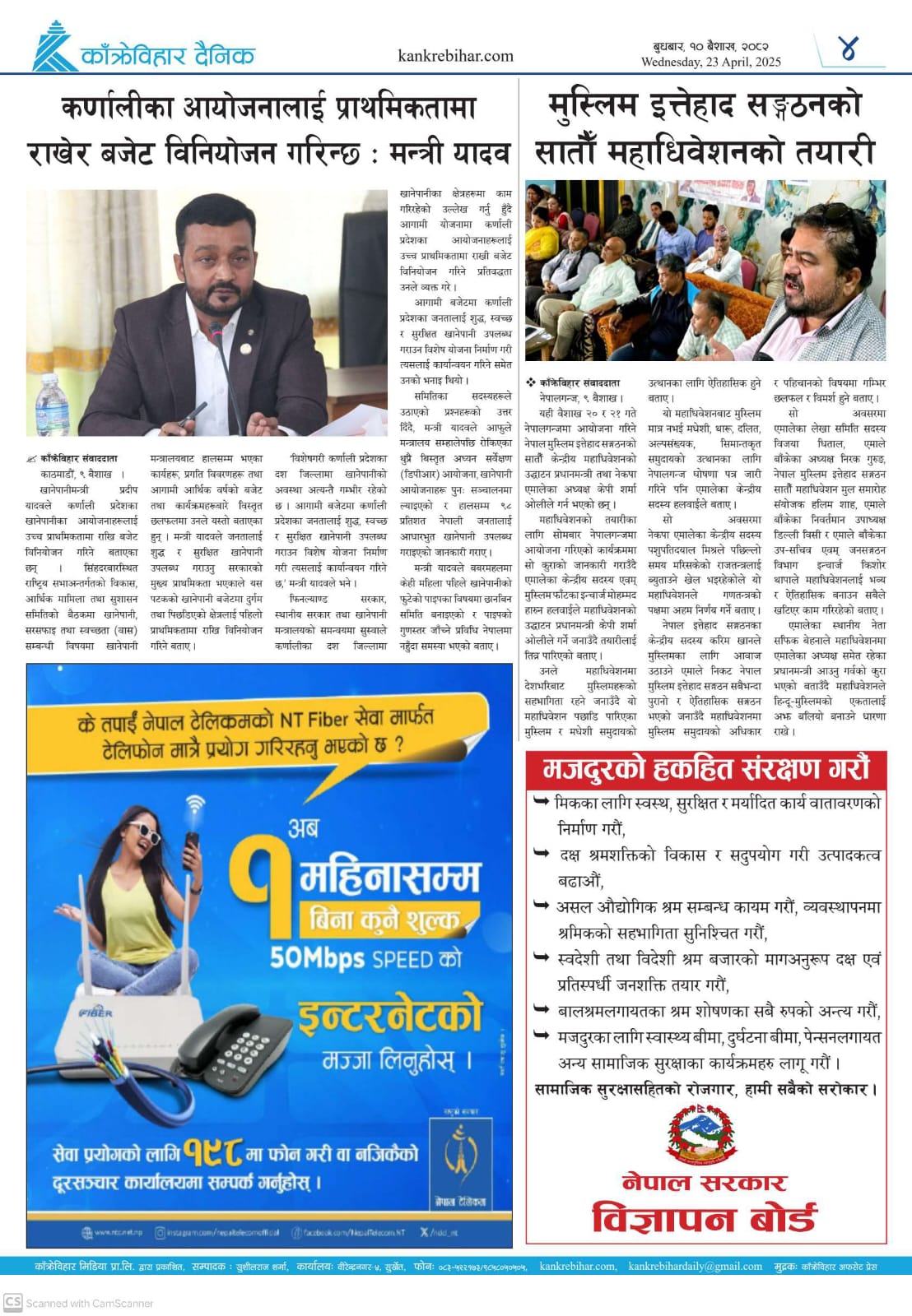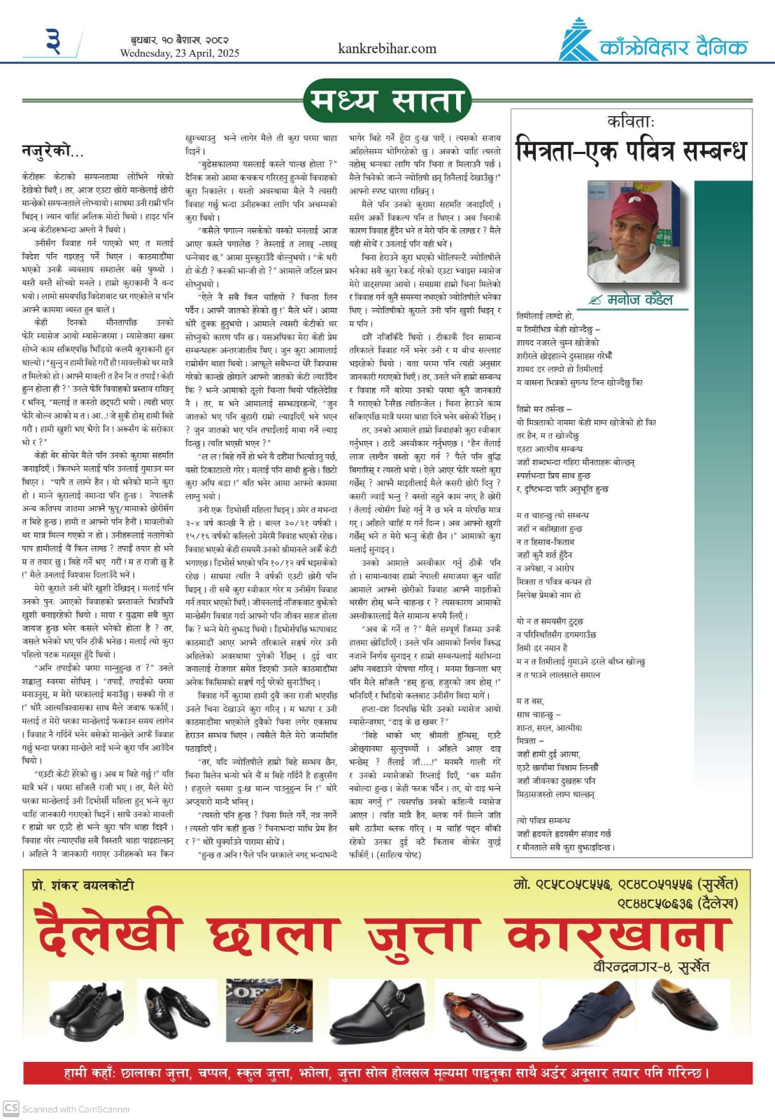 काँक्रेविहार दैनिकः बुधवार १० बैशाख २०८२, 23 April 2025
