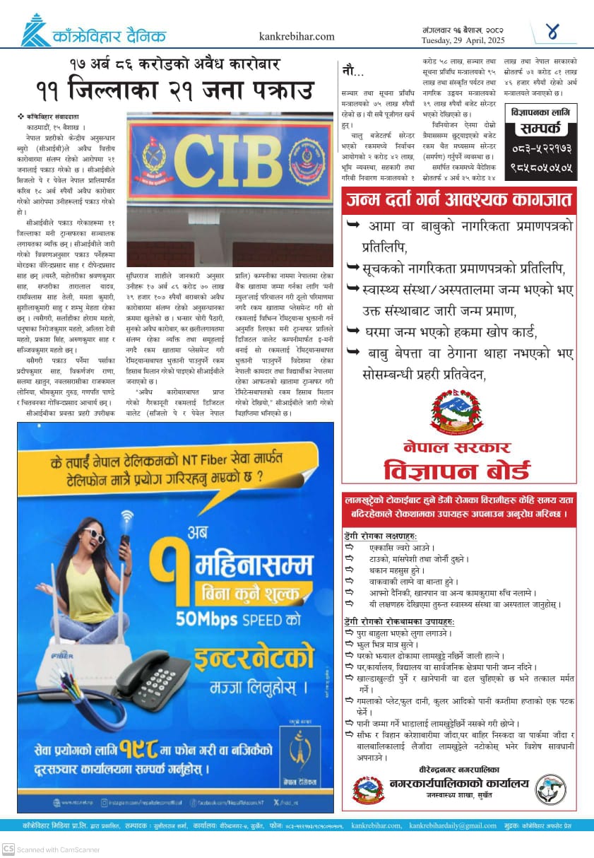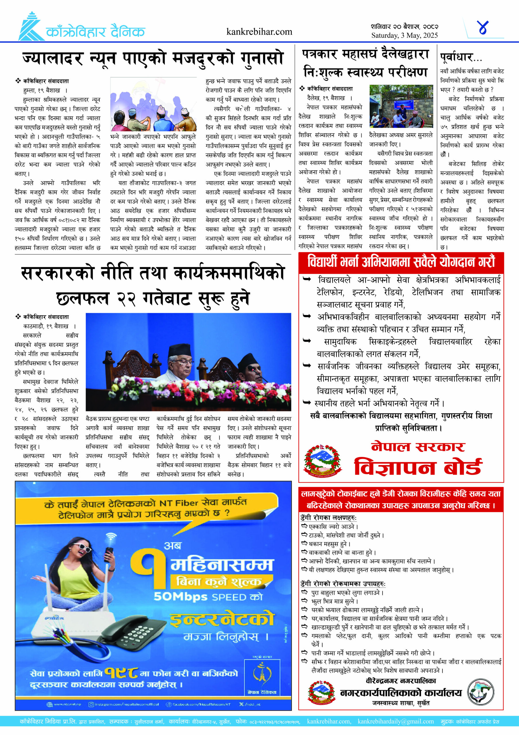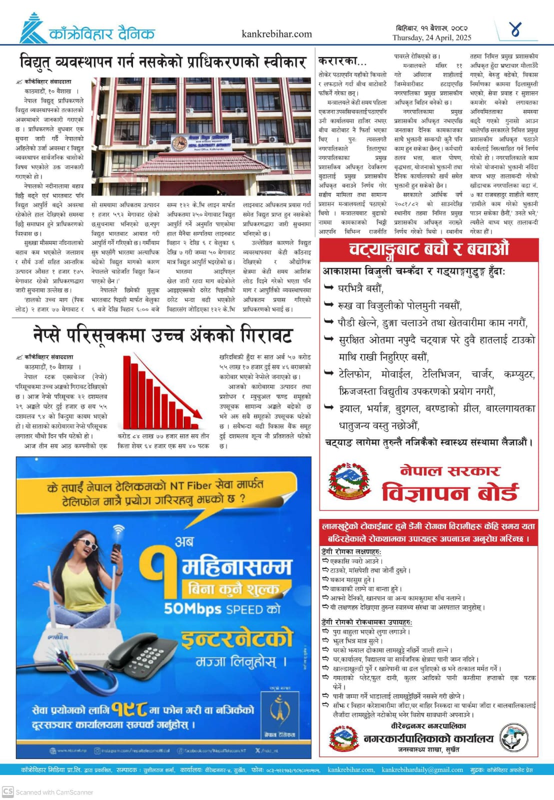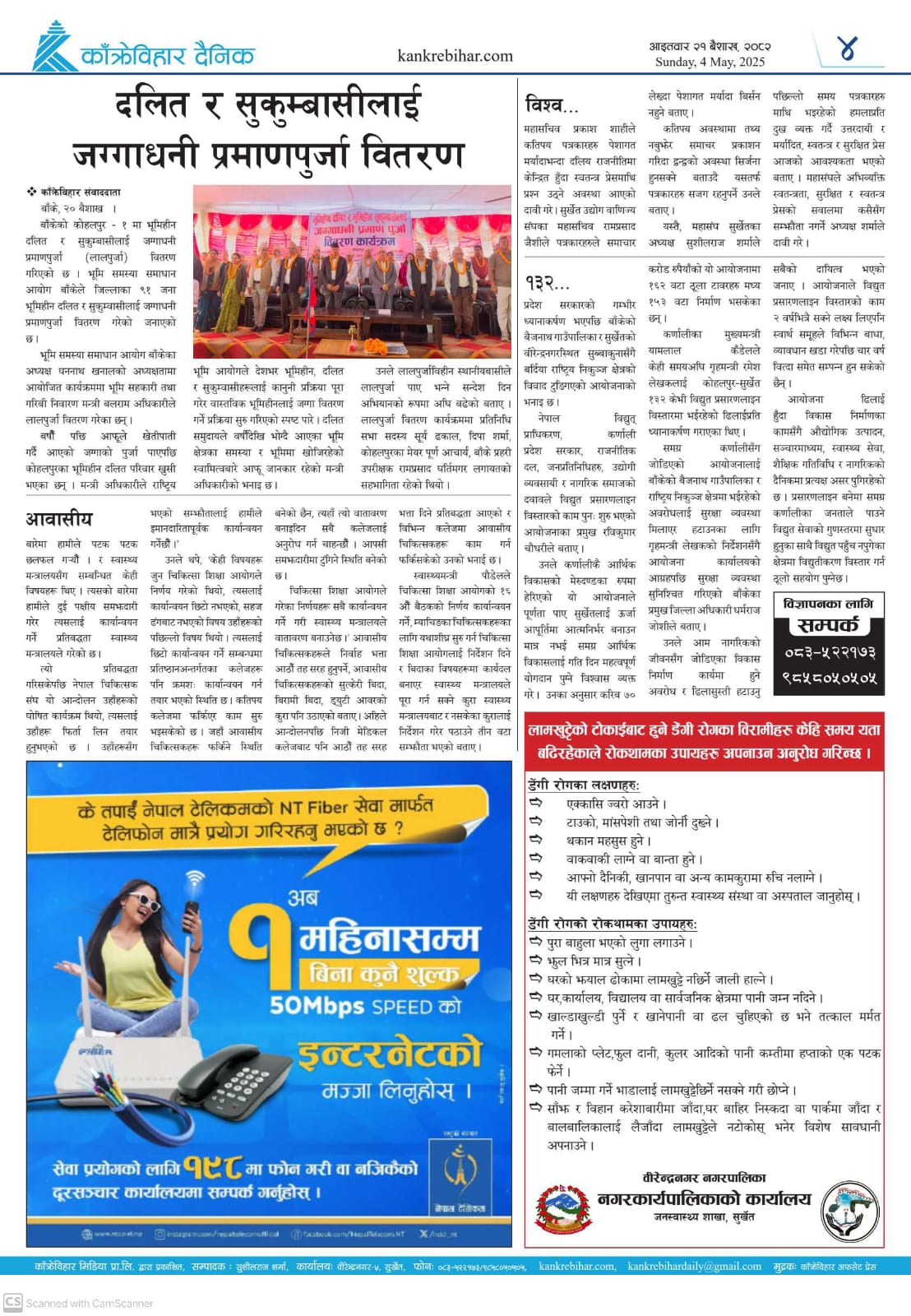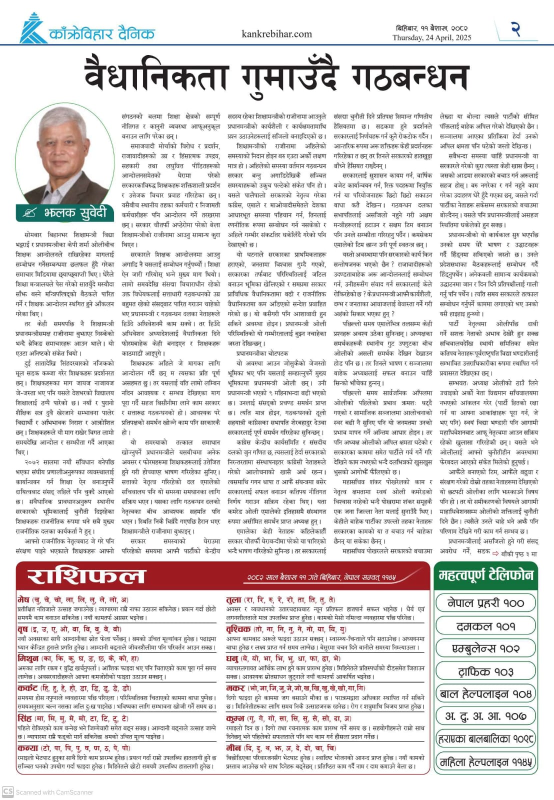 काँक्रेविहार दैनिकः आइतवार २१ बैशाख २०८२, 4 May 2025