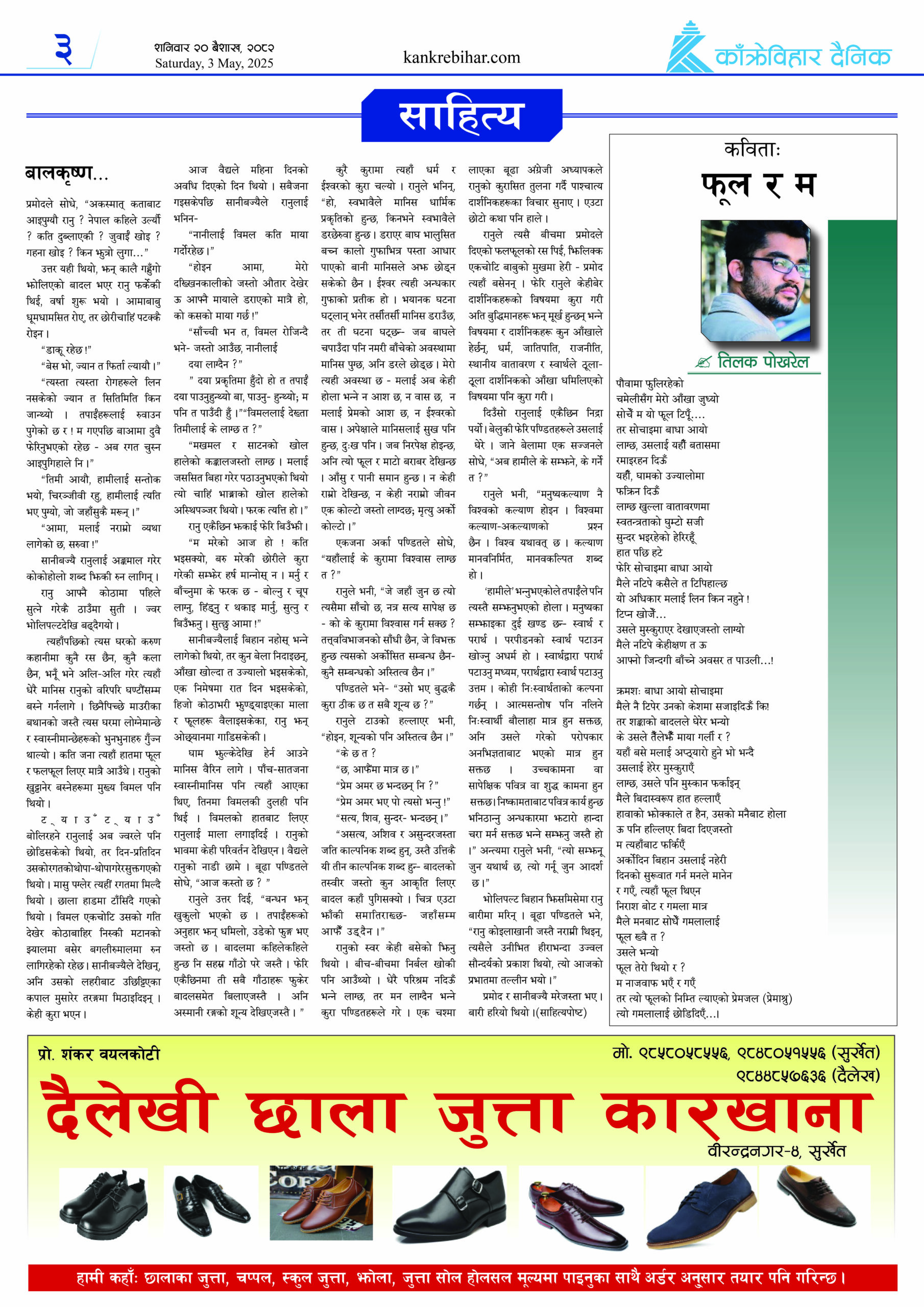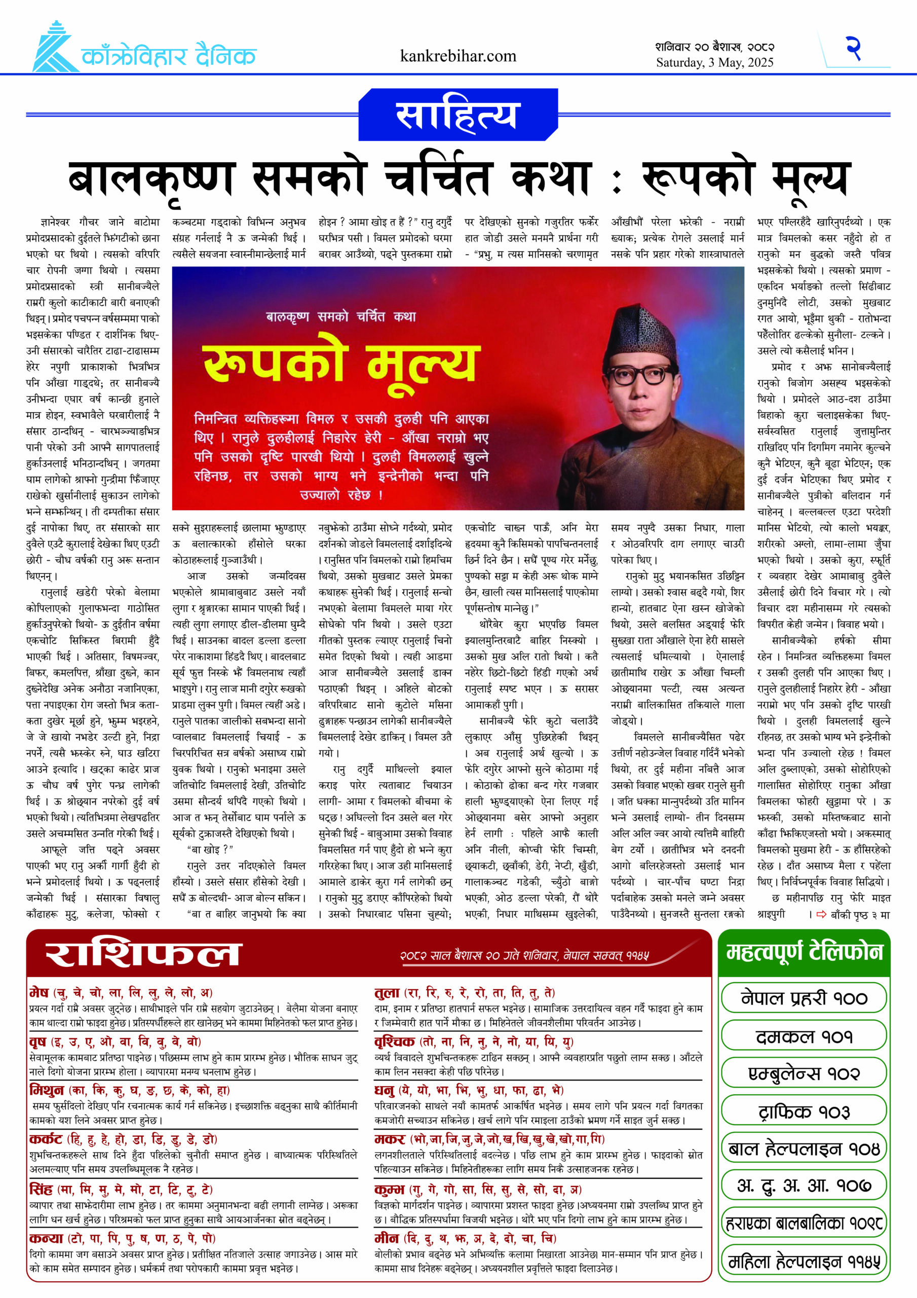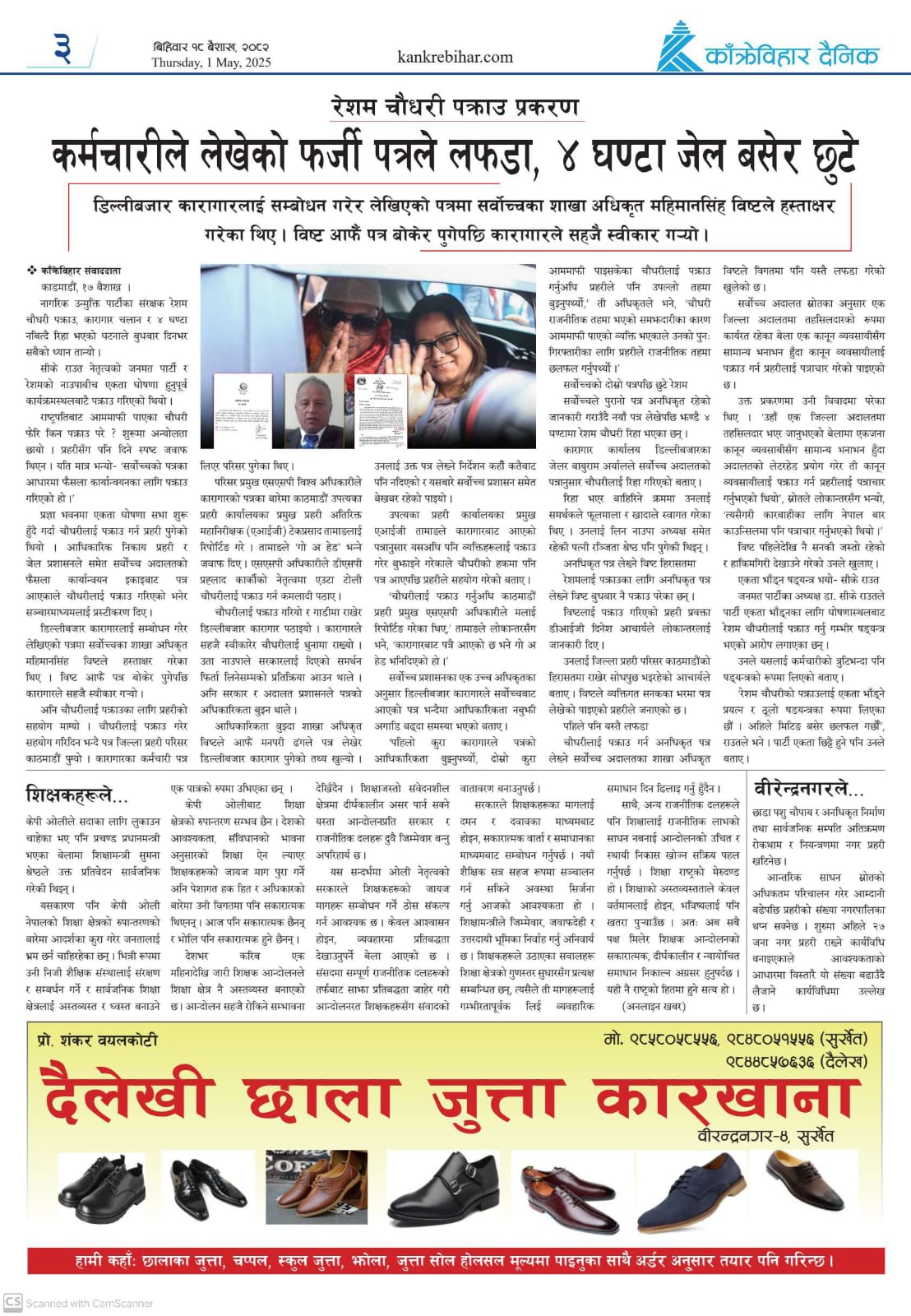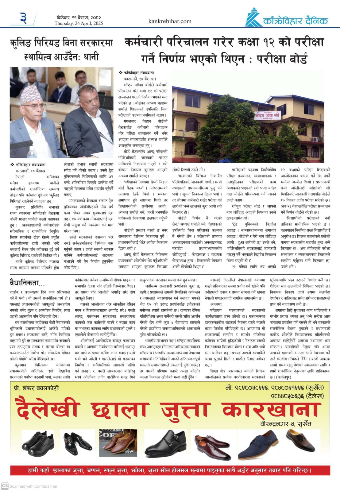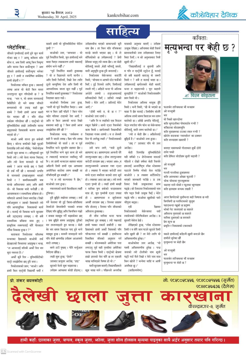 काँक्रेविहार दैनिकः शनिवार २० बैशाख २०८२, ३ May 2025