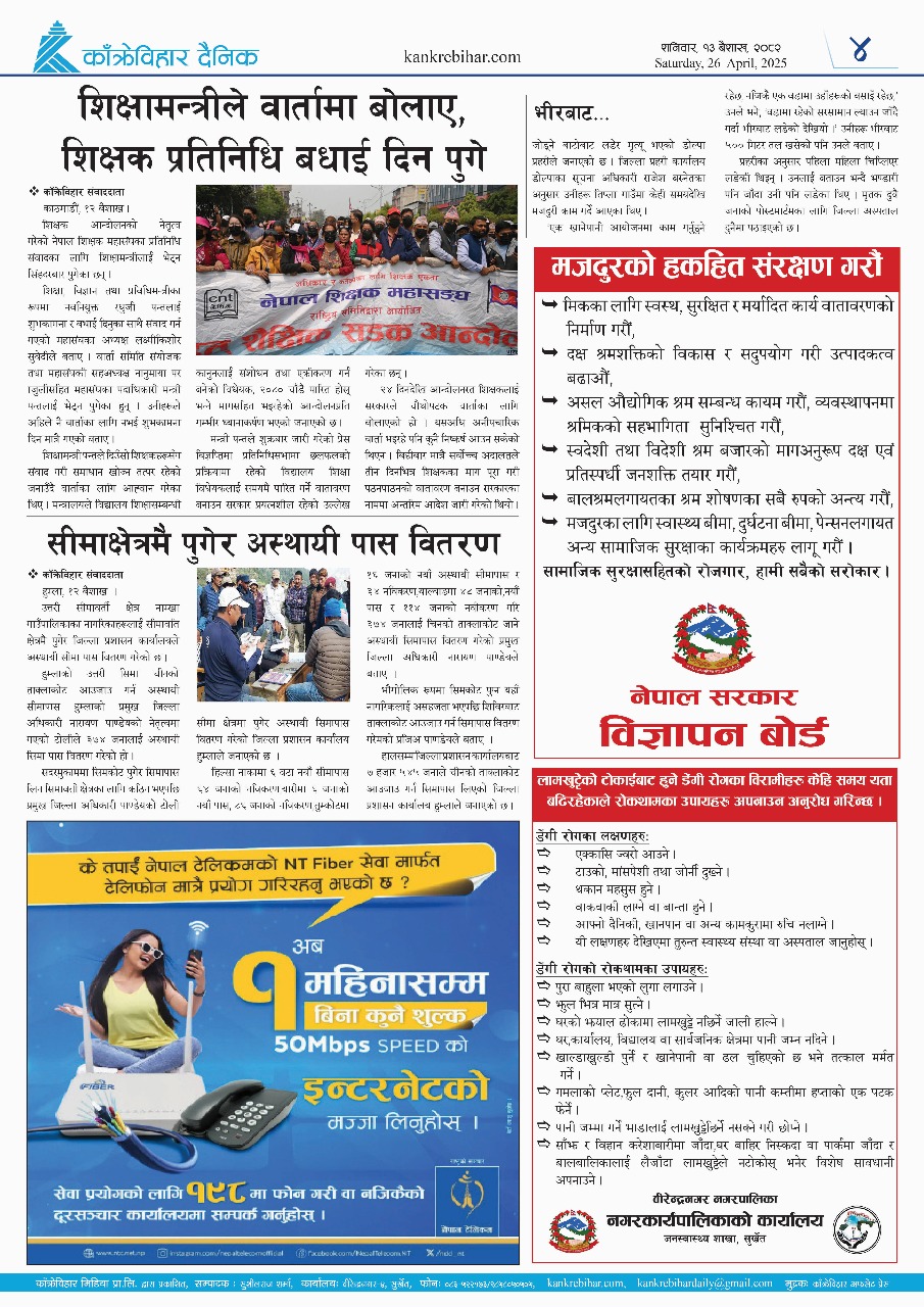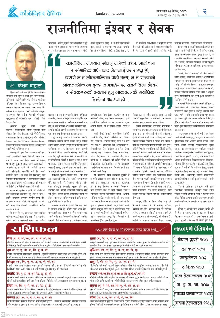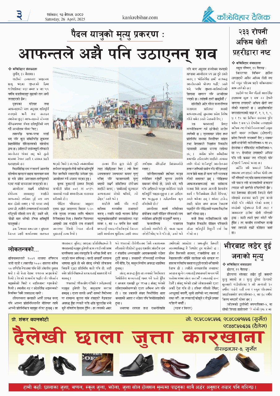 काँक्रेविहार दैनिकः शनिवार १३ बैशाख २०८२, 26 April 2025
