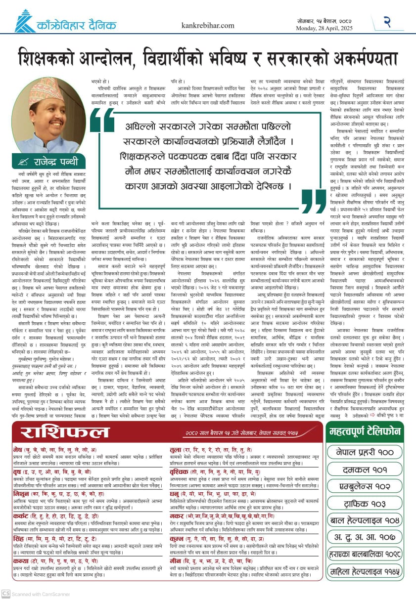 काँक्रेविहार दैनिकः सोमवार १५ बैशाख २०८२, 28 April 2025