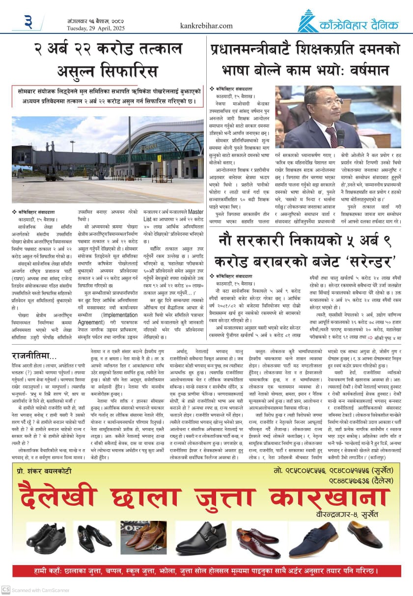 काँक्रेविहार दैनिकः मंगलवार १६ बैशाख २०८२, 29 April 2025