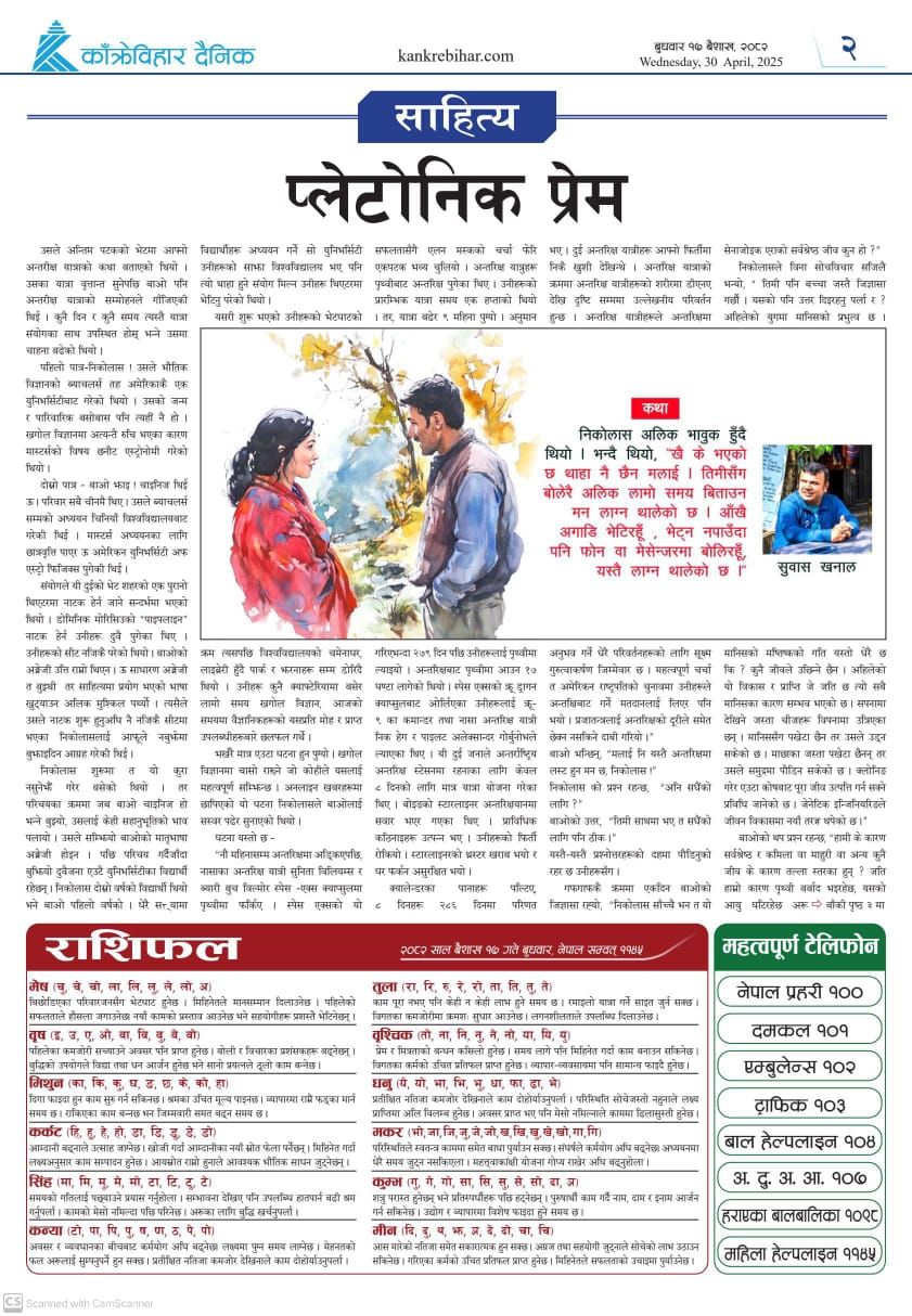 काँक्रेविहार दैनिकः बुधवार १७ बैशाख २०८२, 30 April 2025