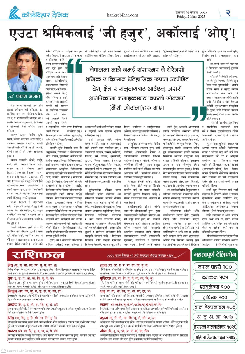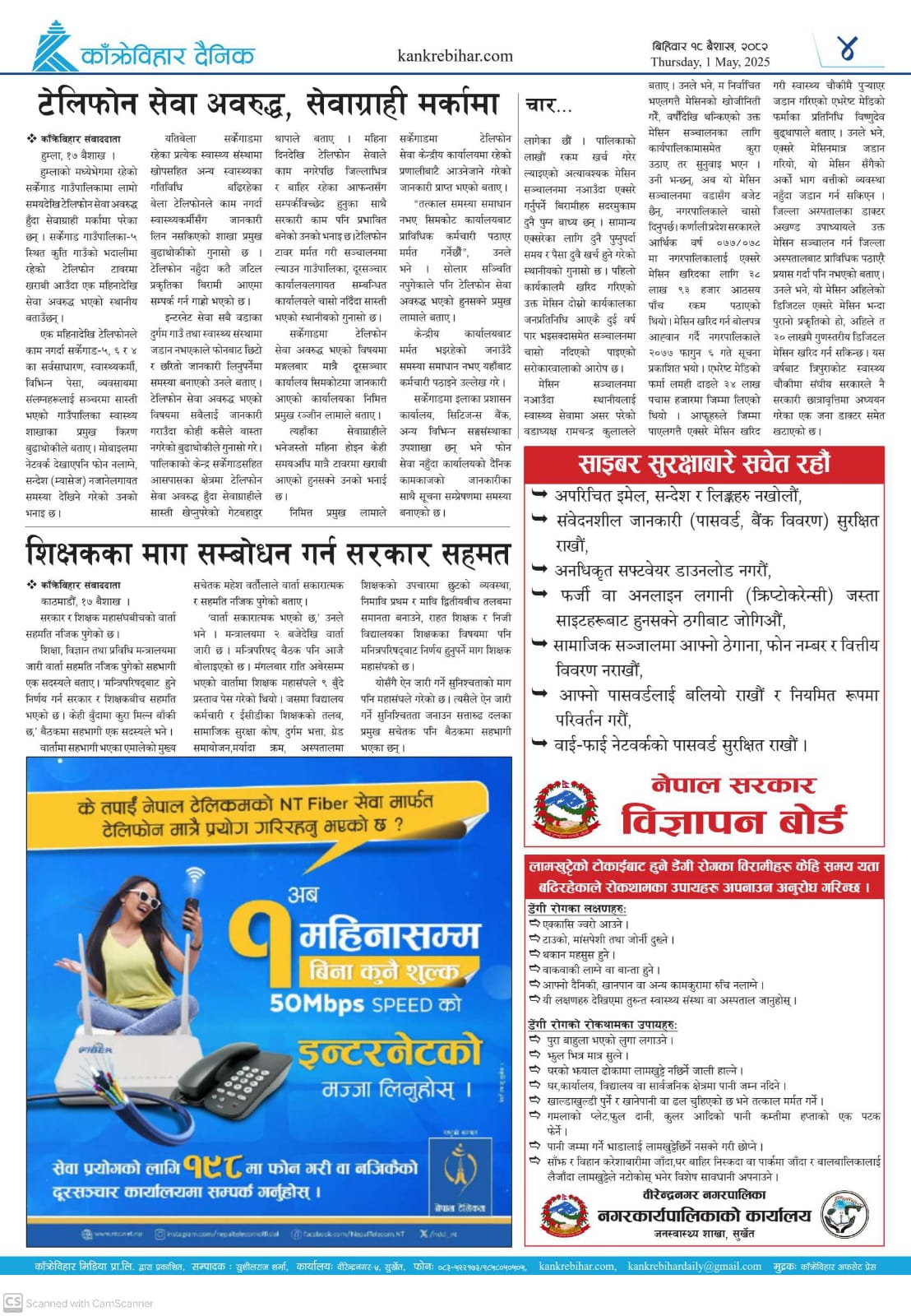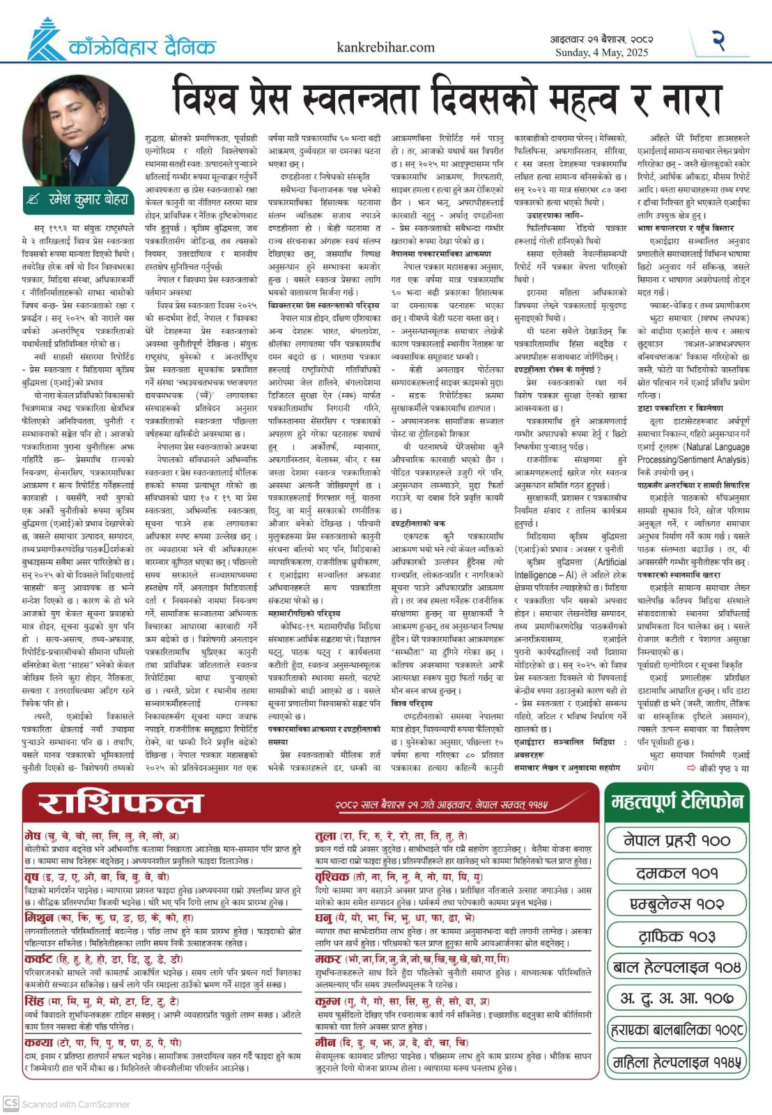 काँक्रेविहार दैनिकः शुक्रवार १९ बैशाख २०८२, 2 May 2025