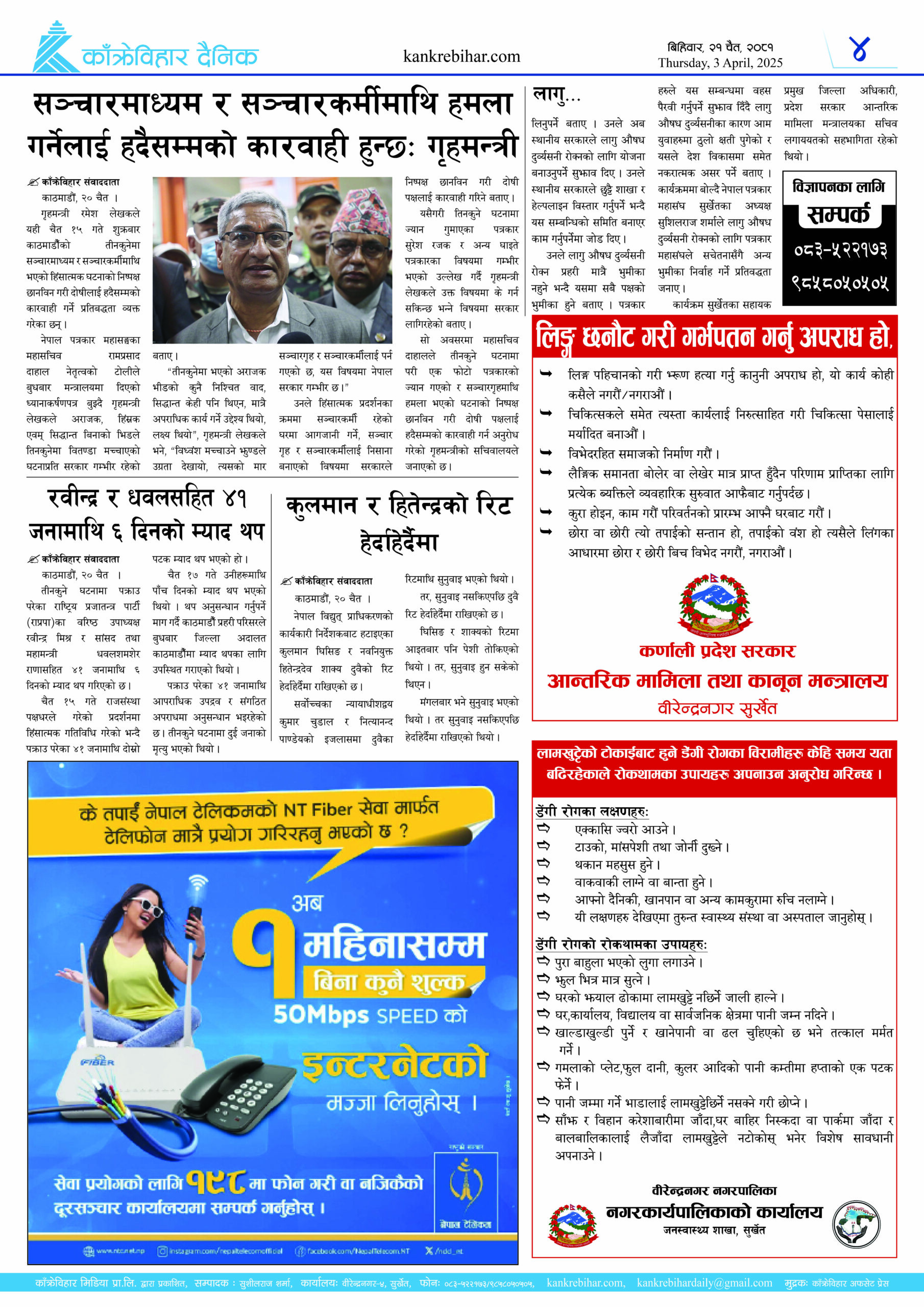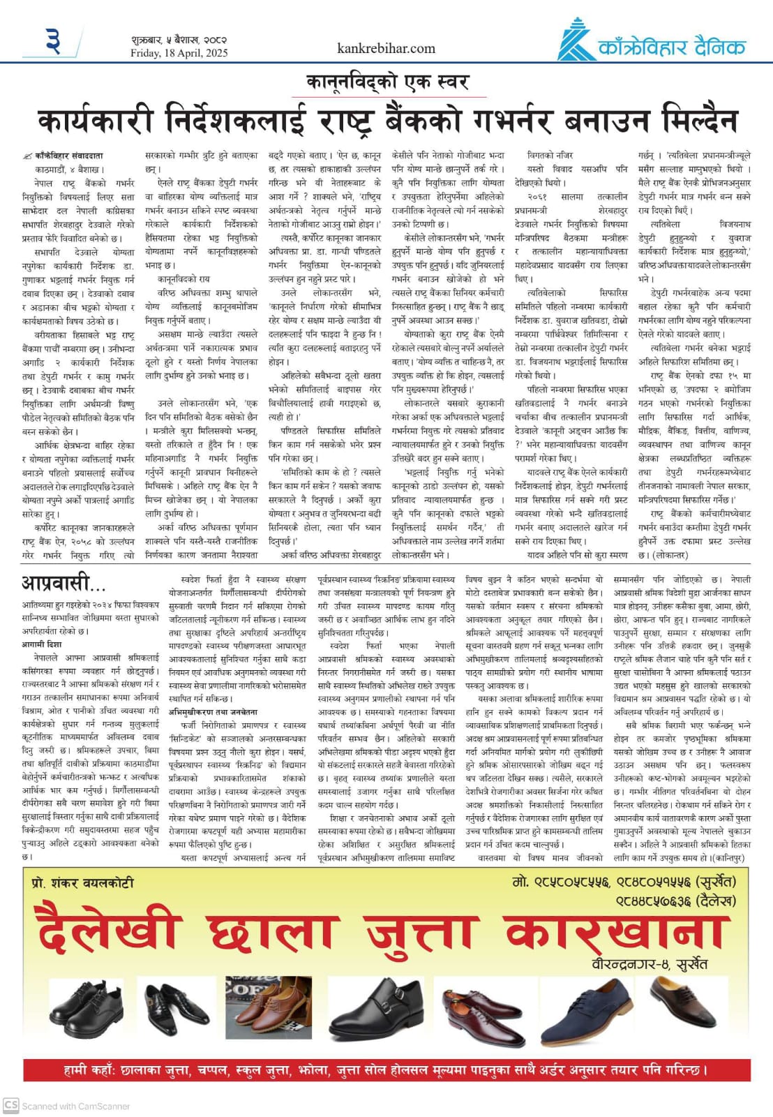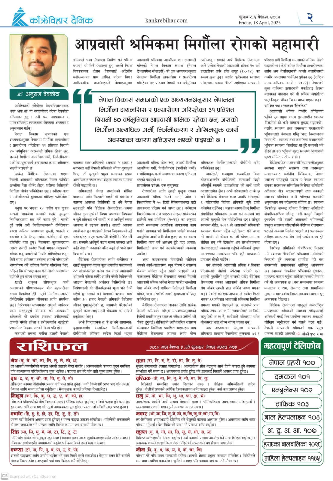 काँक्रेविहार दैनिकः साेमवार २५ चैत २०८१, 7 April 2025