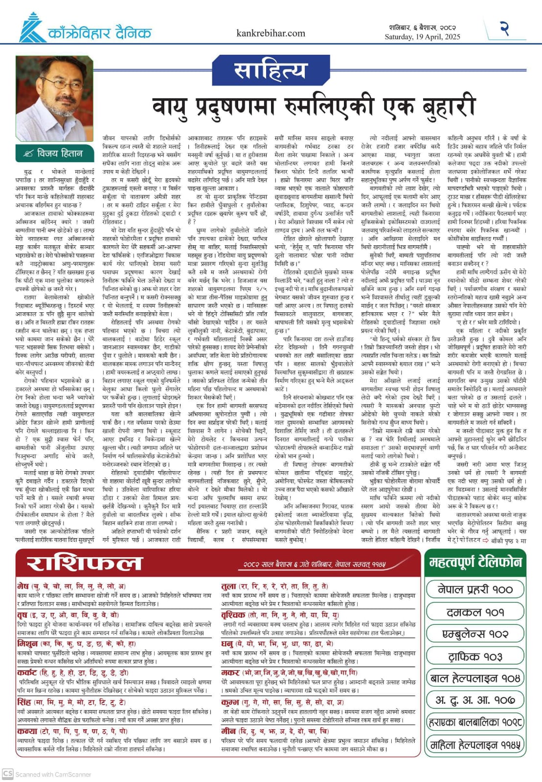 काँक्रेविहार दैनिकः शनिवार ६ बैशाख २०८२, 19 April 2025