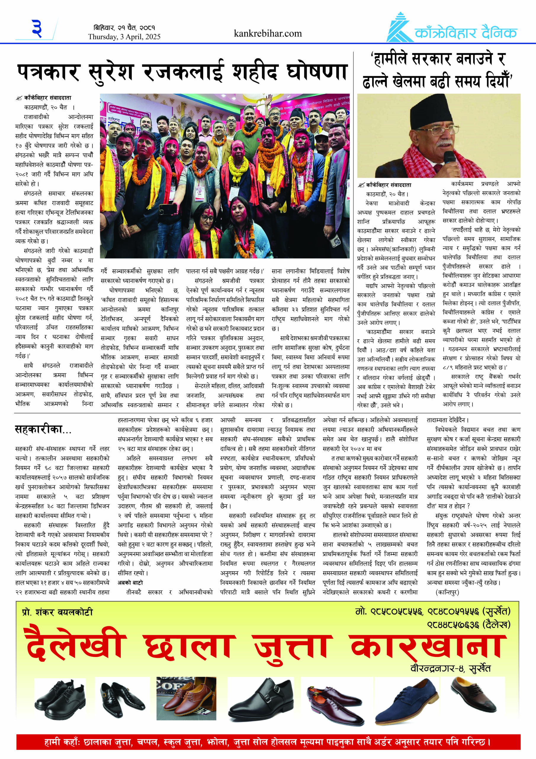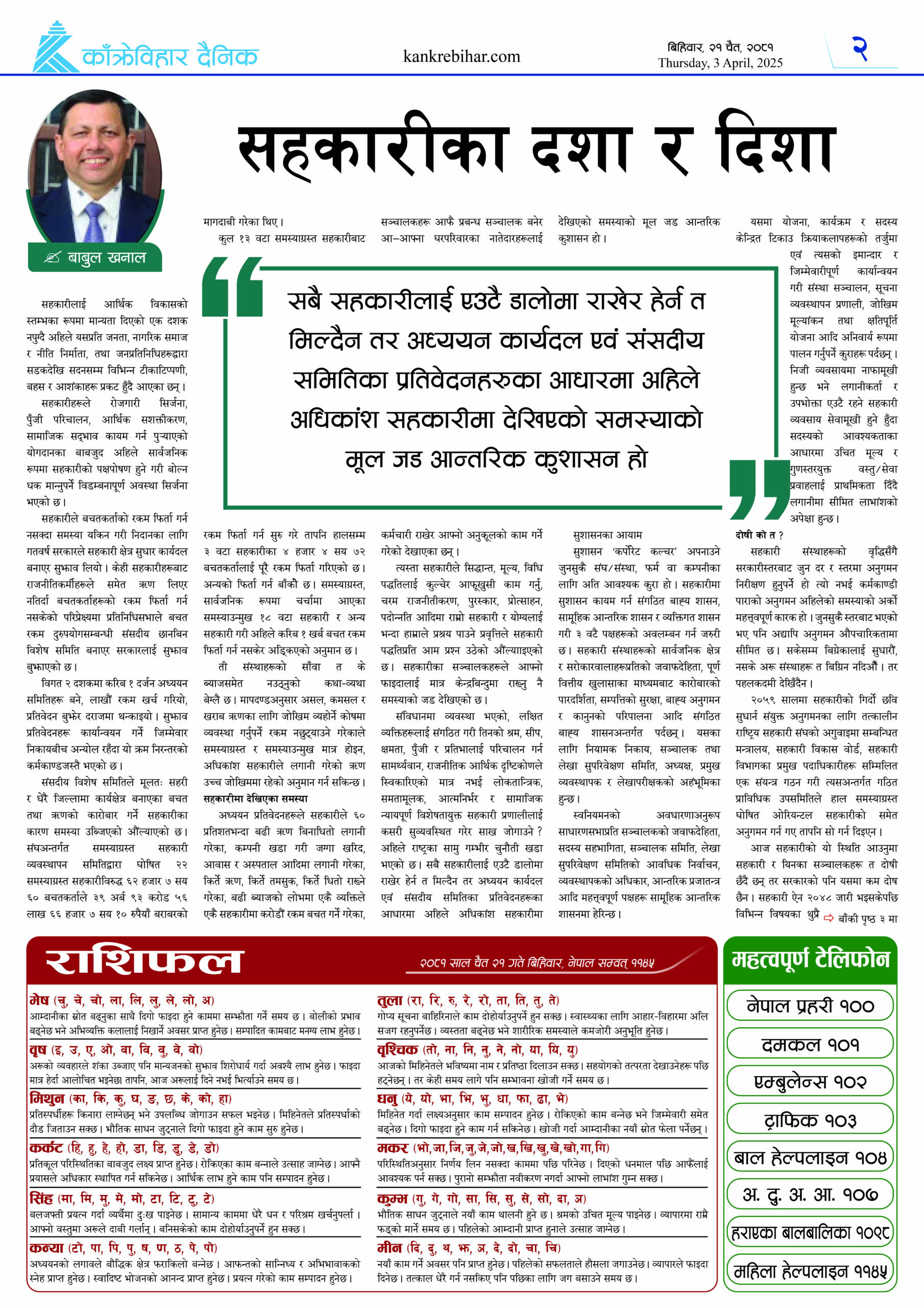 काँक्रेविहार दैनिकः बिहिवार २१ चैत २०८१, 3 April 2025