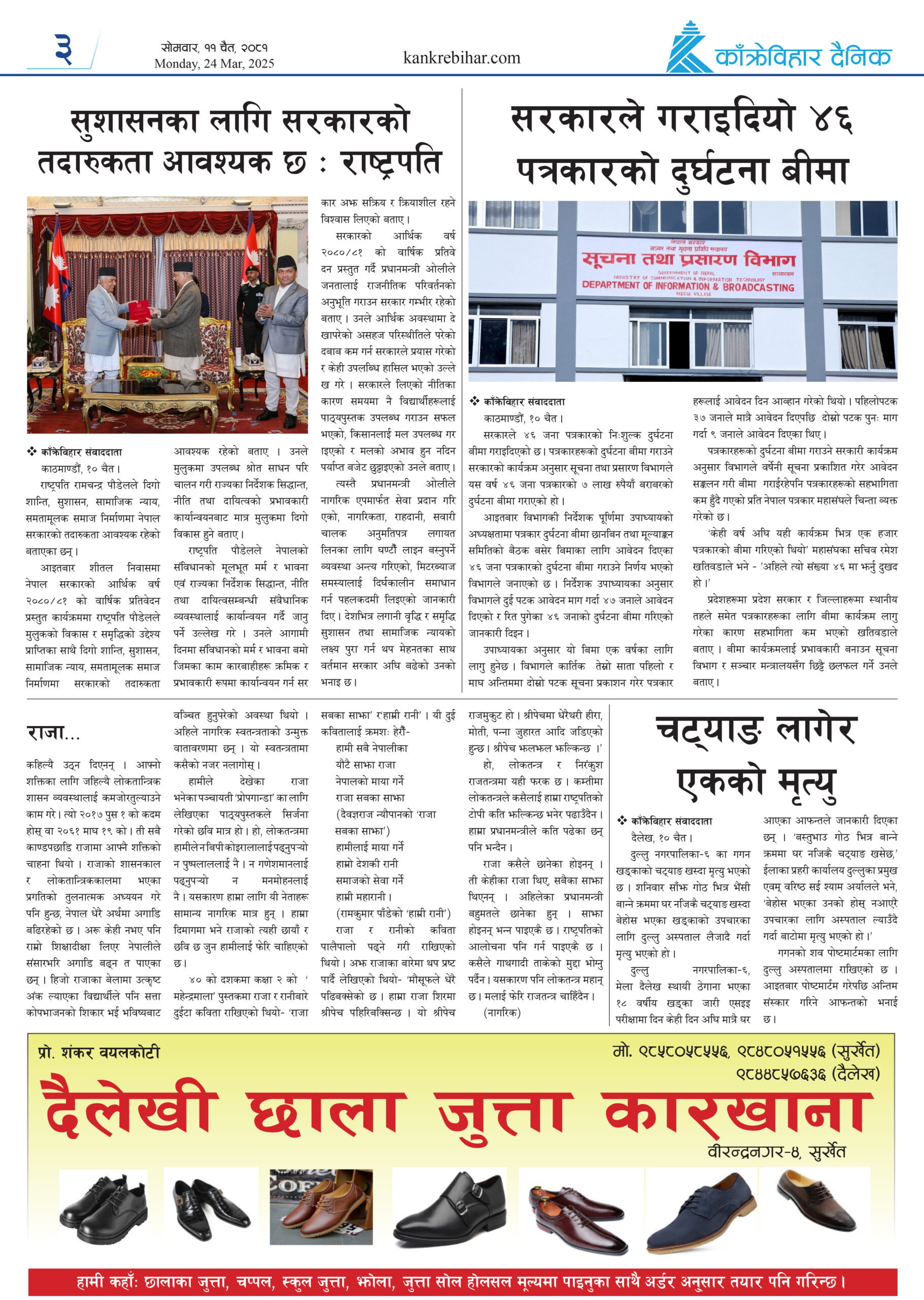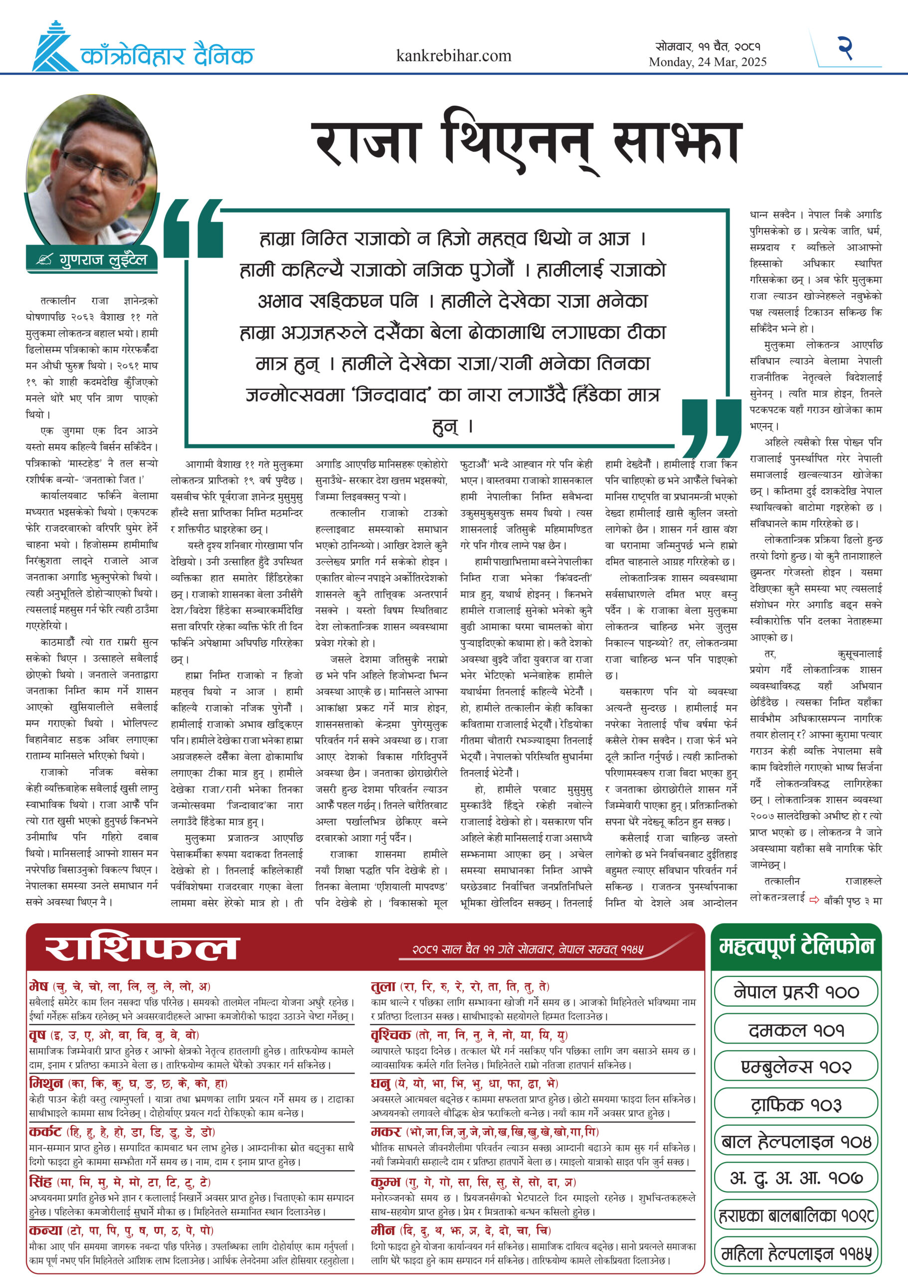 काँक्रेविहार दैनिकः साेमवार ११ चैत २०८१, 24 Mar 2025