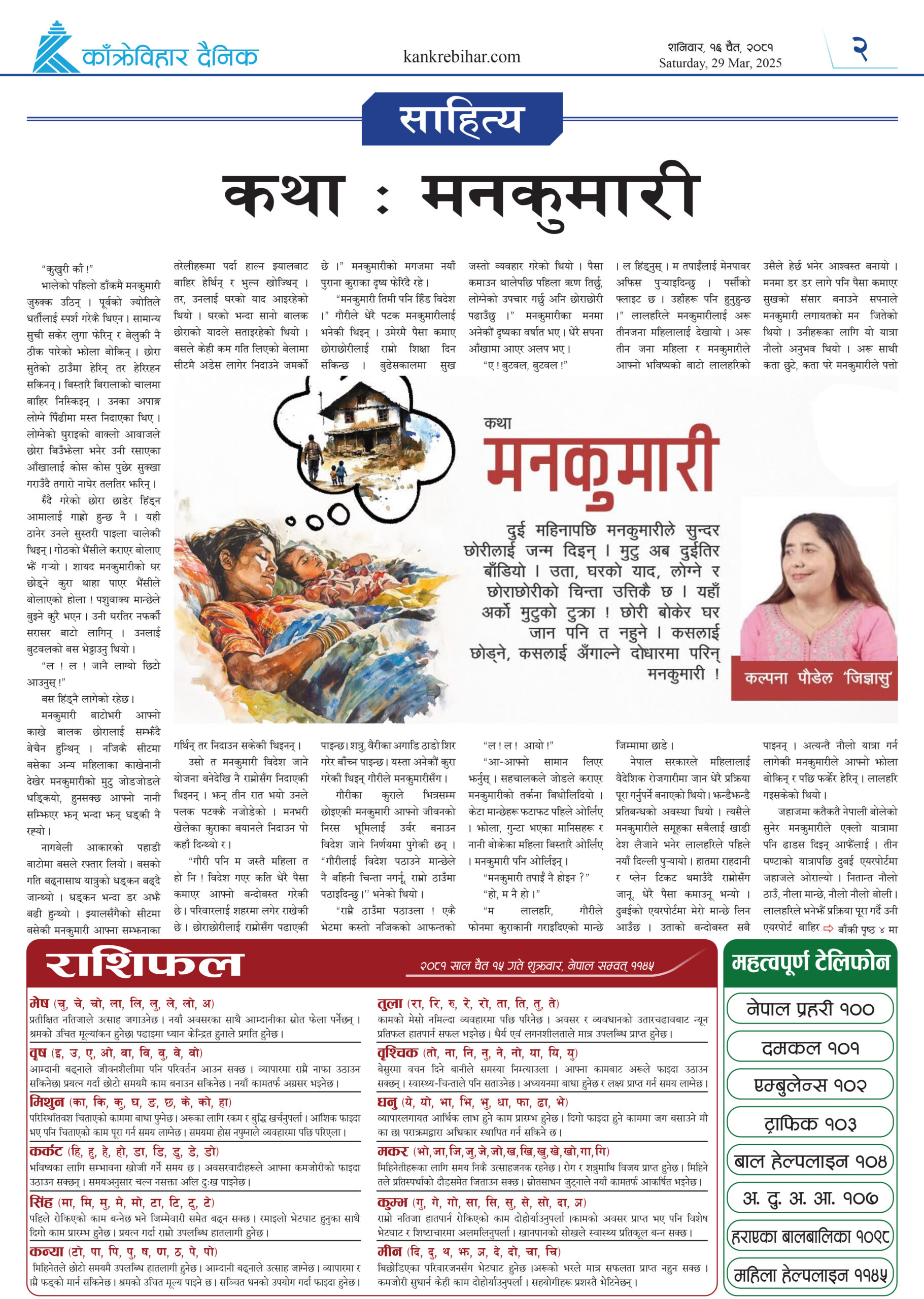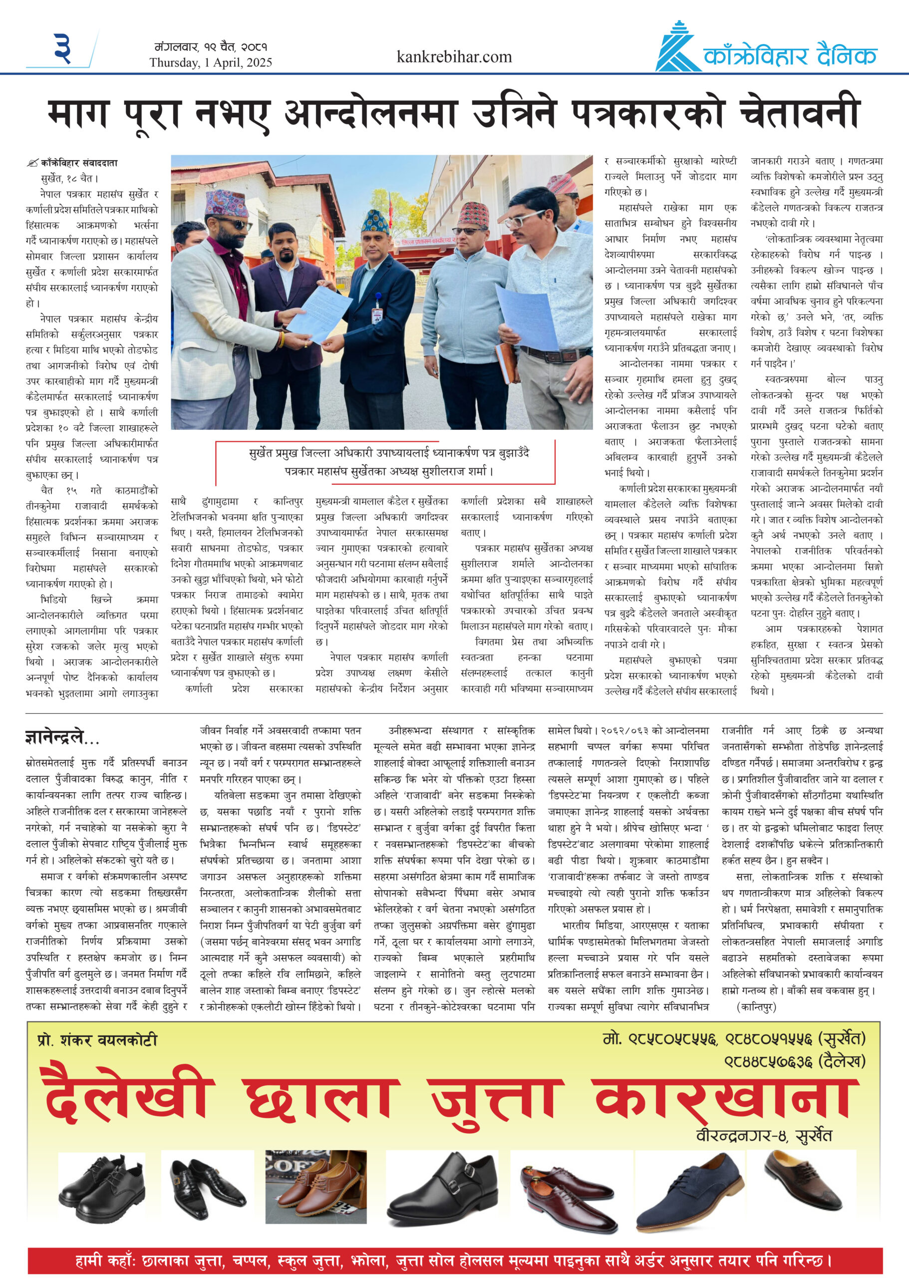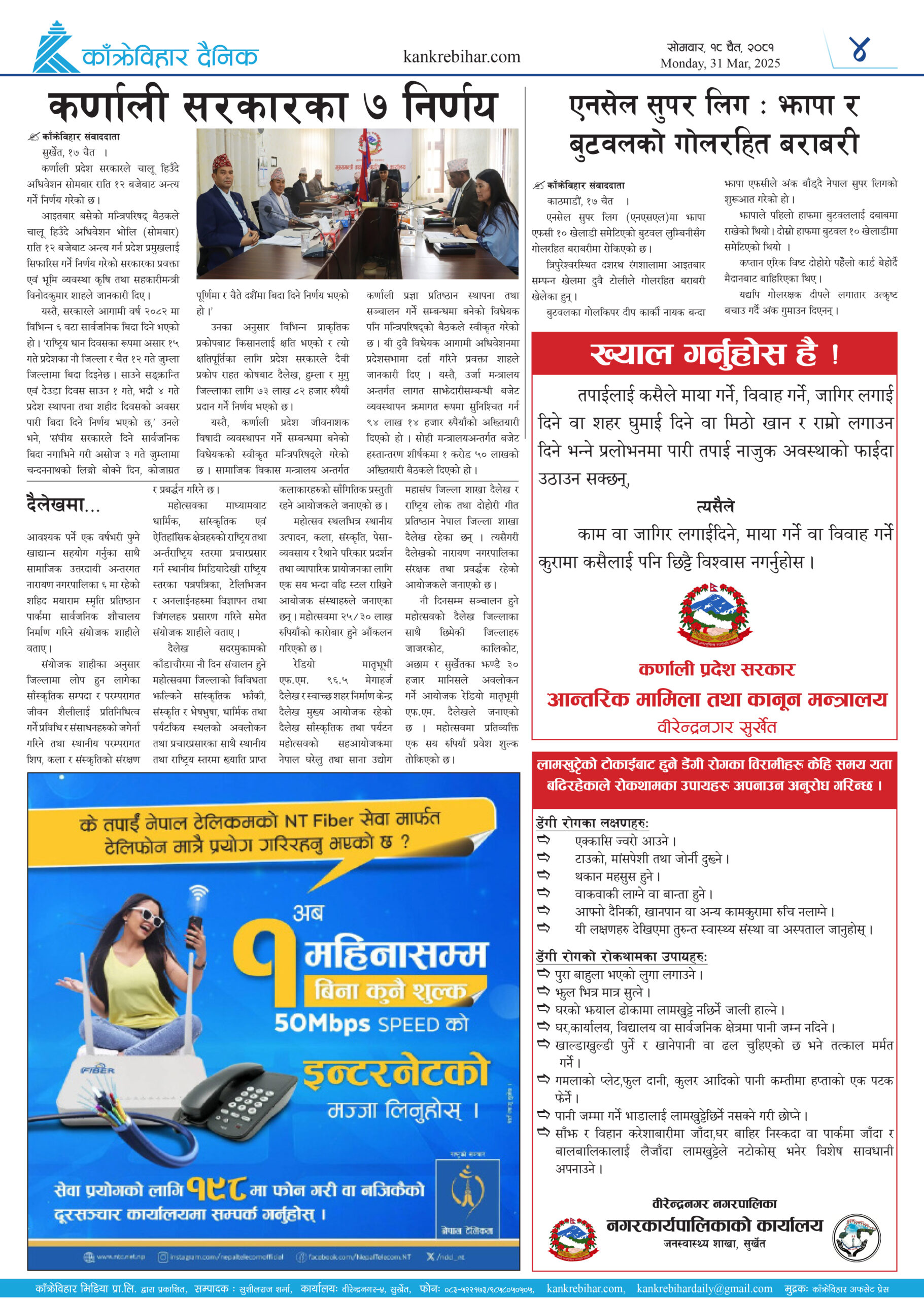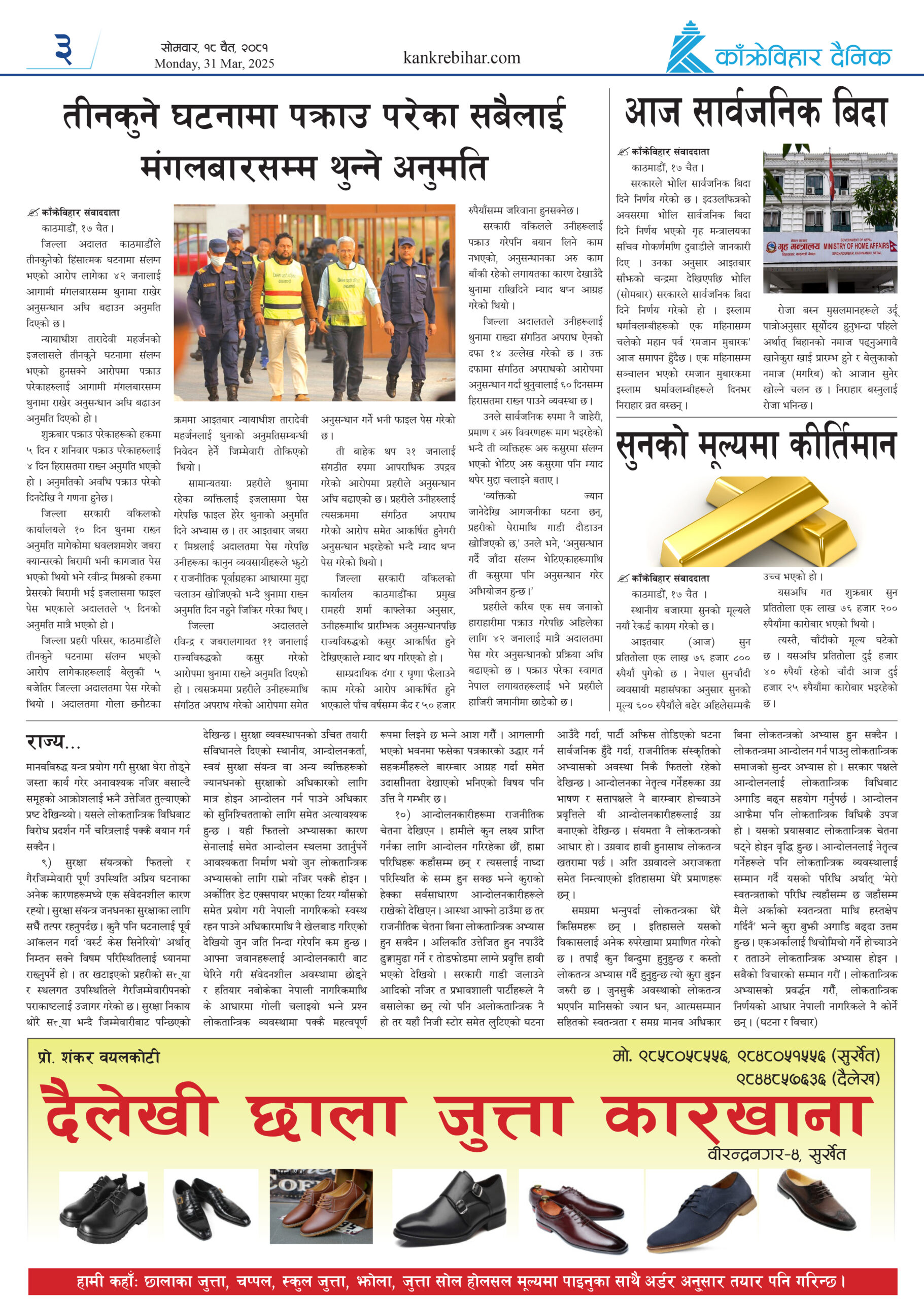 काँक्रेविहार दैनिकः साेमवार १८ चैत २०८१, 31 Mar 2025