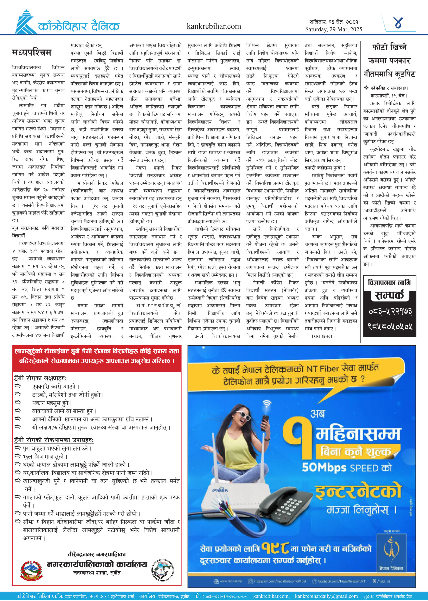 काँक्रेविहार दैनिकः शनिवार १६ चैत २०८१, 29 Mar 2025
