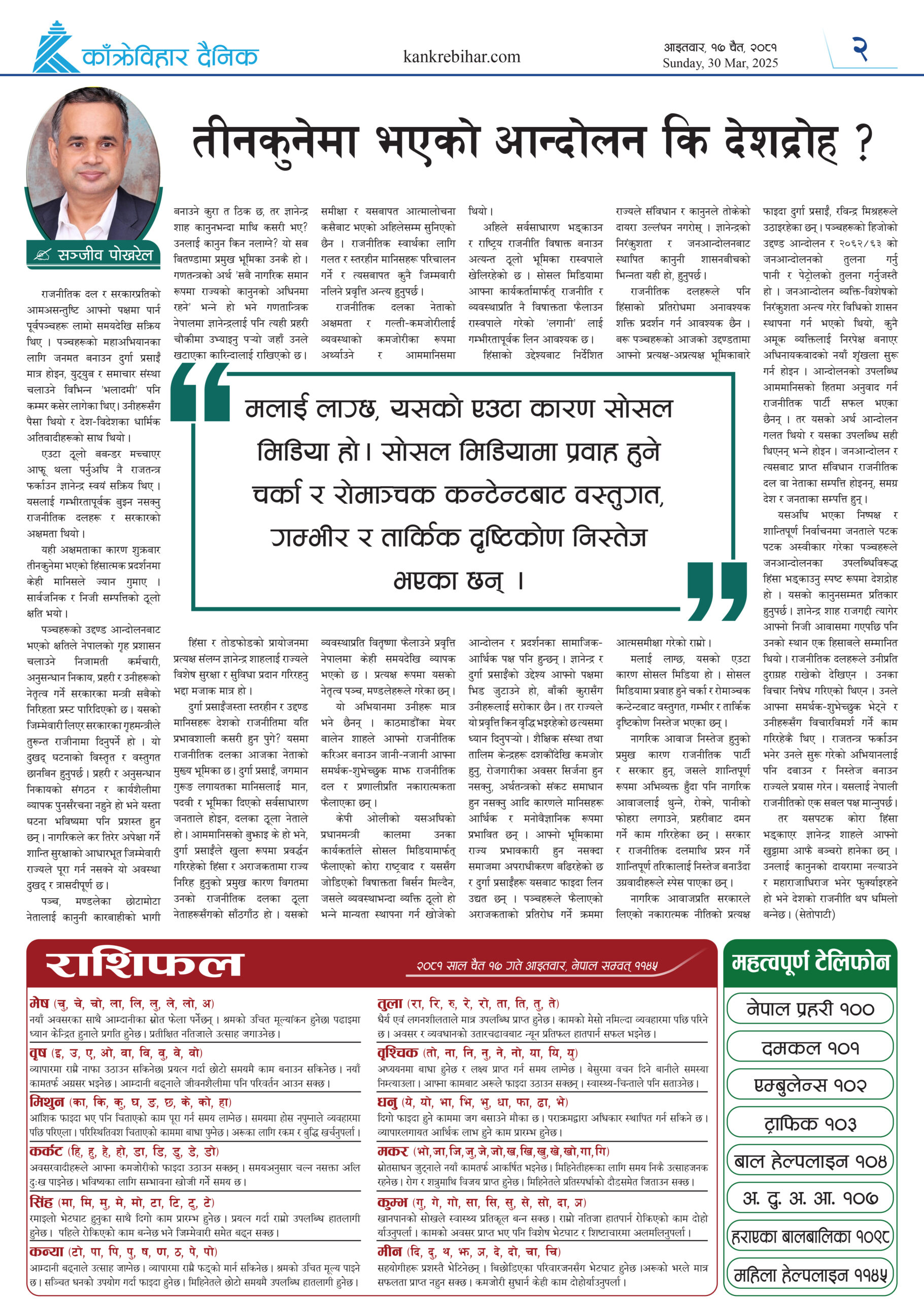 काँक्रेविहार दैनिकः आइतवार १७ चैत २०८१, 30 Mar 2025