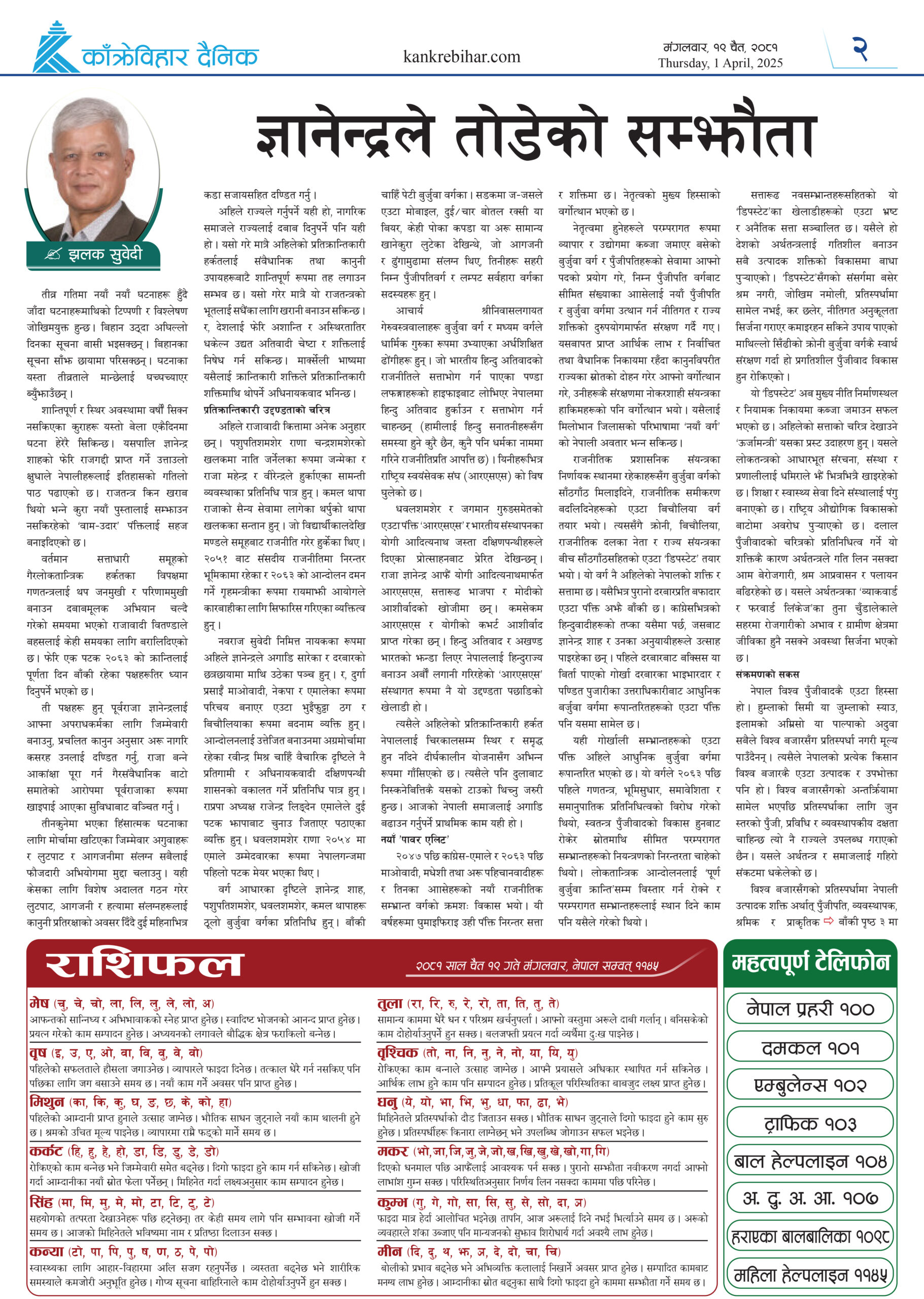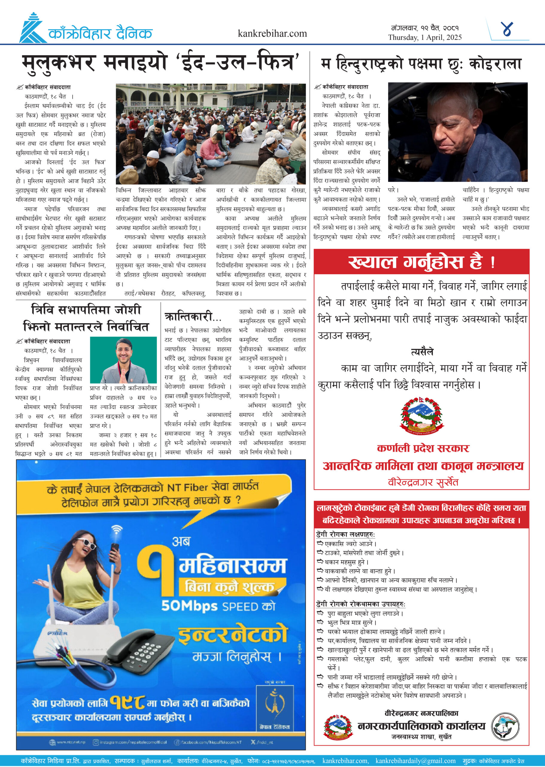 काँक्रेविहार दैनिकः मंगलवार १९ चैत २०८१, 1 April 2025