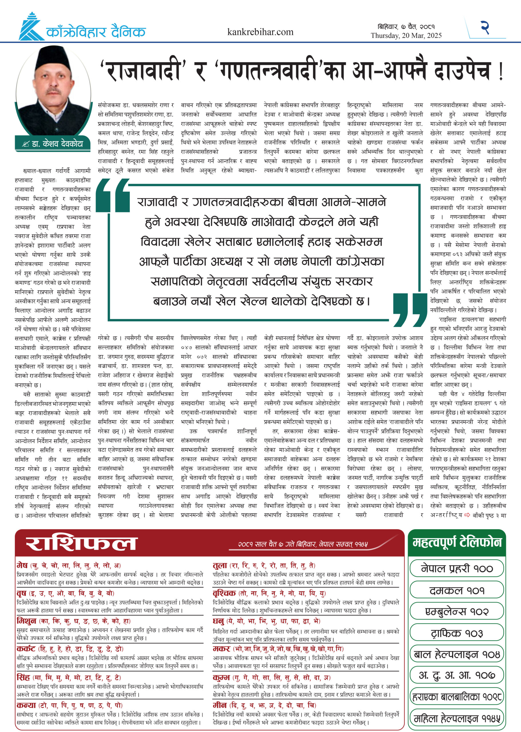 काँक्रेविहार दैनिकः साेमवार ६ चैत २०८१, 19 Mar 2025