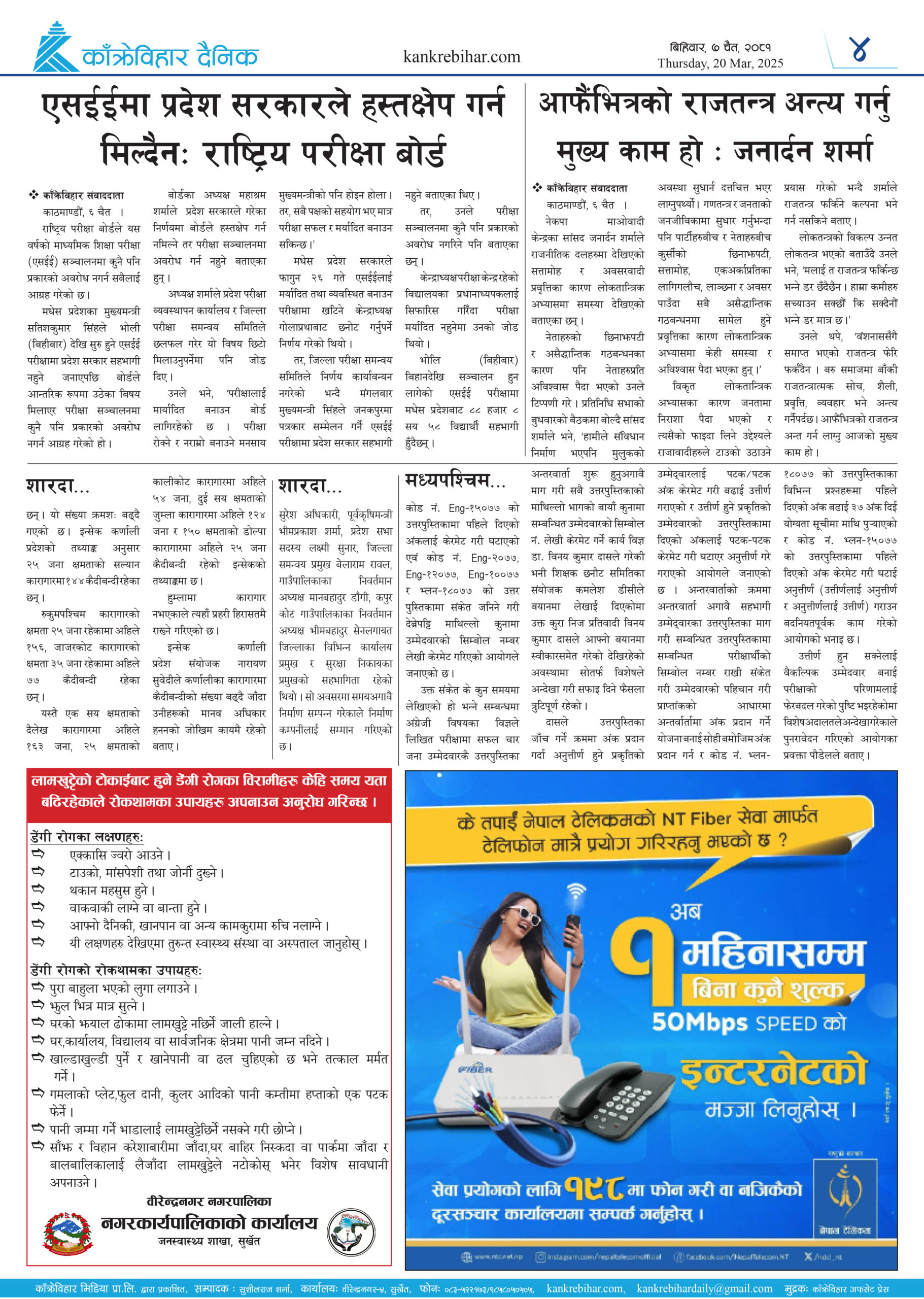 काँक्रेविहार दैनिकः बिहिवार 7 चैत २०८१, 20 Mar 2025