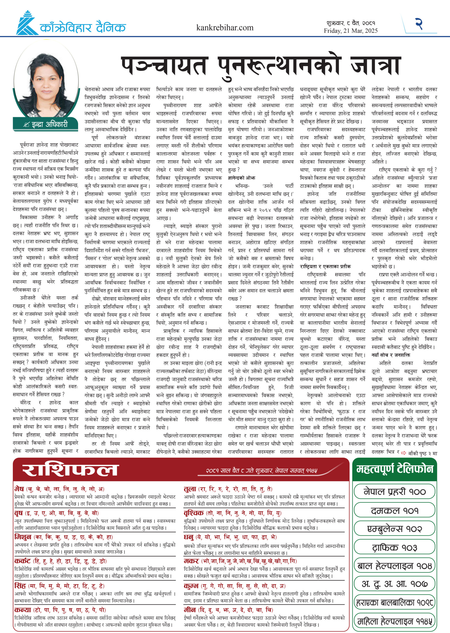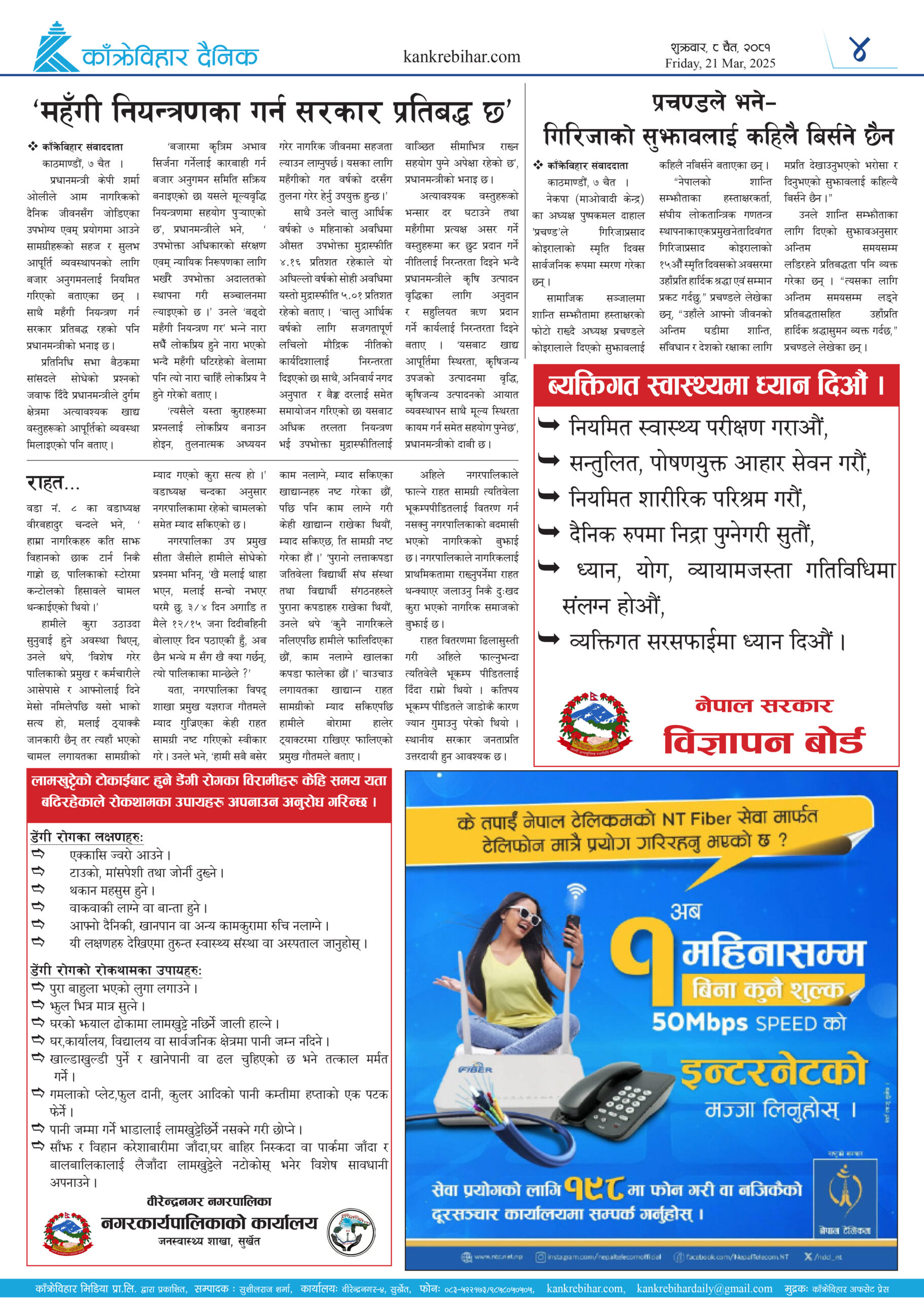 काँक्रेविहार दैनिकः शुक्रवार ८ चैत २०८१, 21 Mar 2025