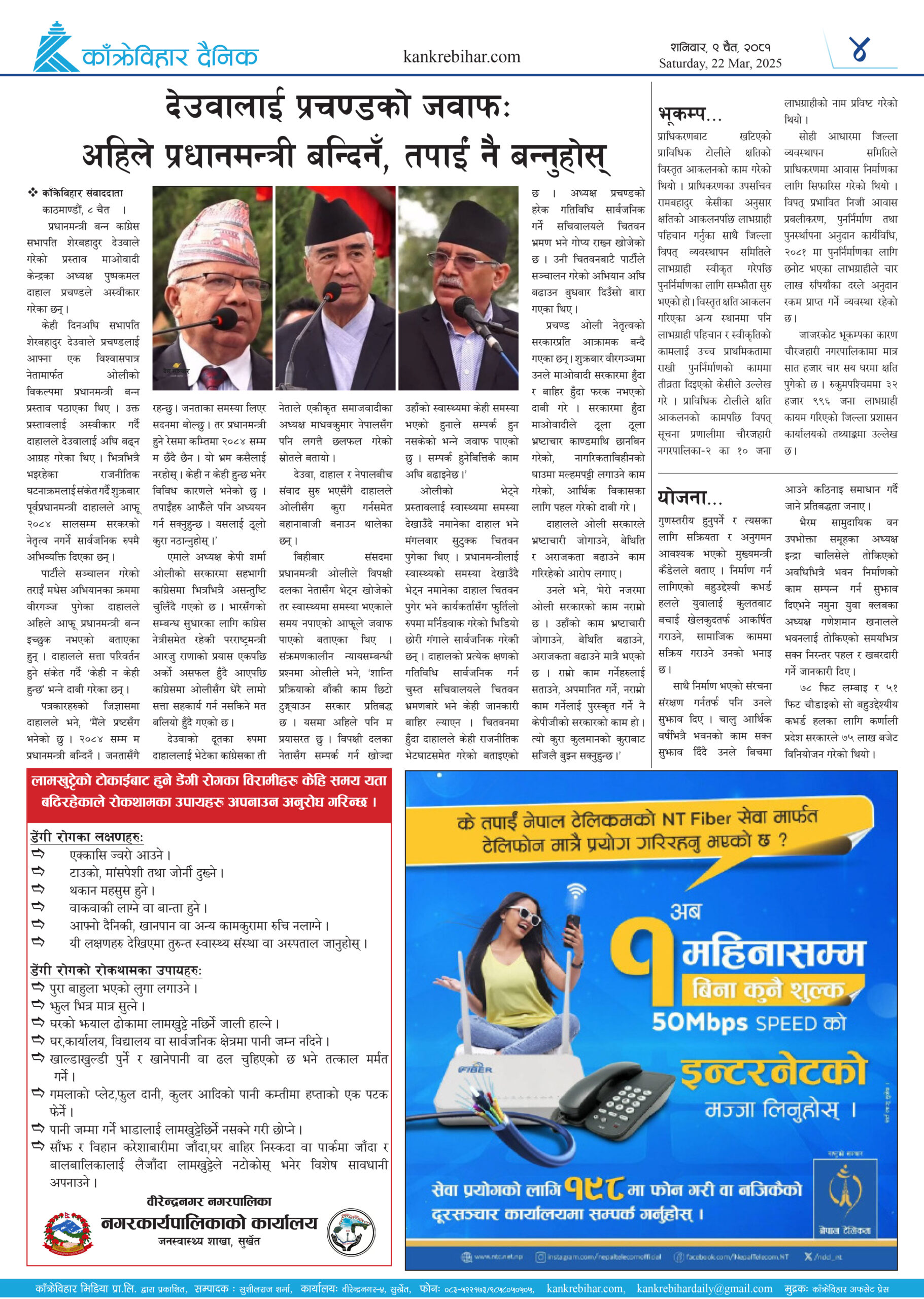 काँक्रेविहार दैनिकः शनिवार ९ चैत २०८१, 22 Mar 2025