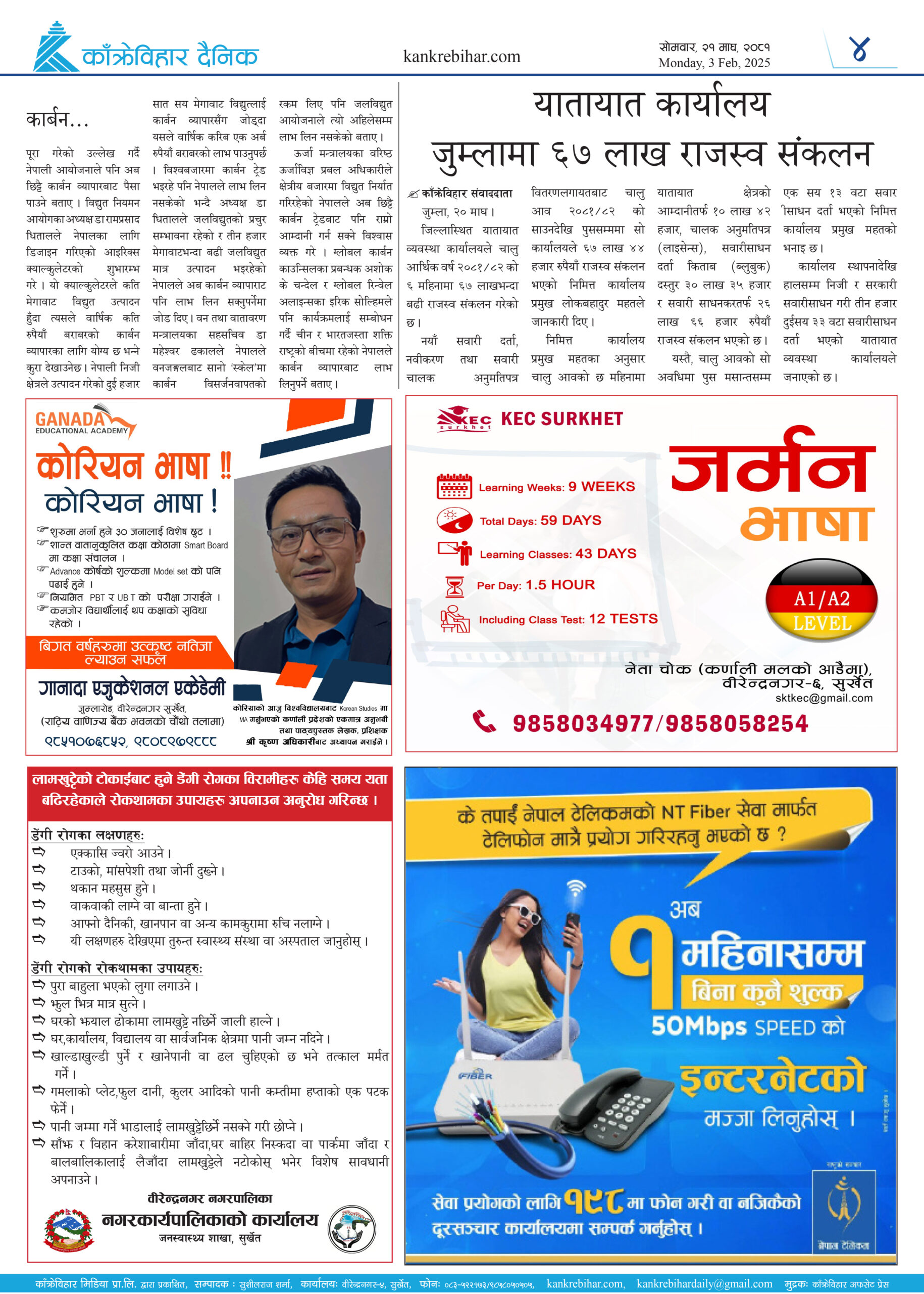 काँक्रेविहार दैनिकः साेमवार, २१ माघ २०८१, 3 Feb 2025