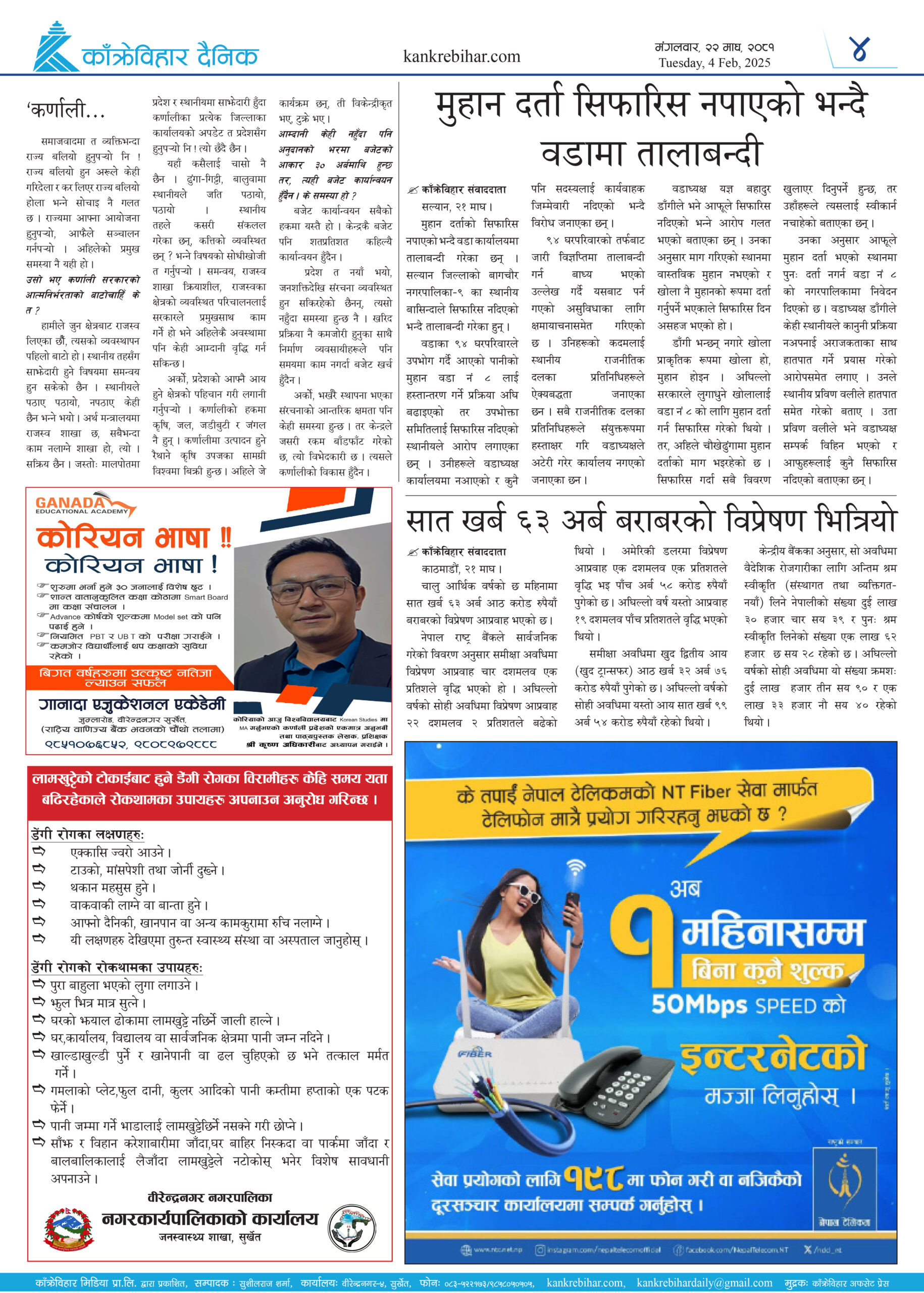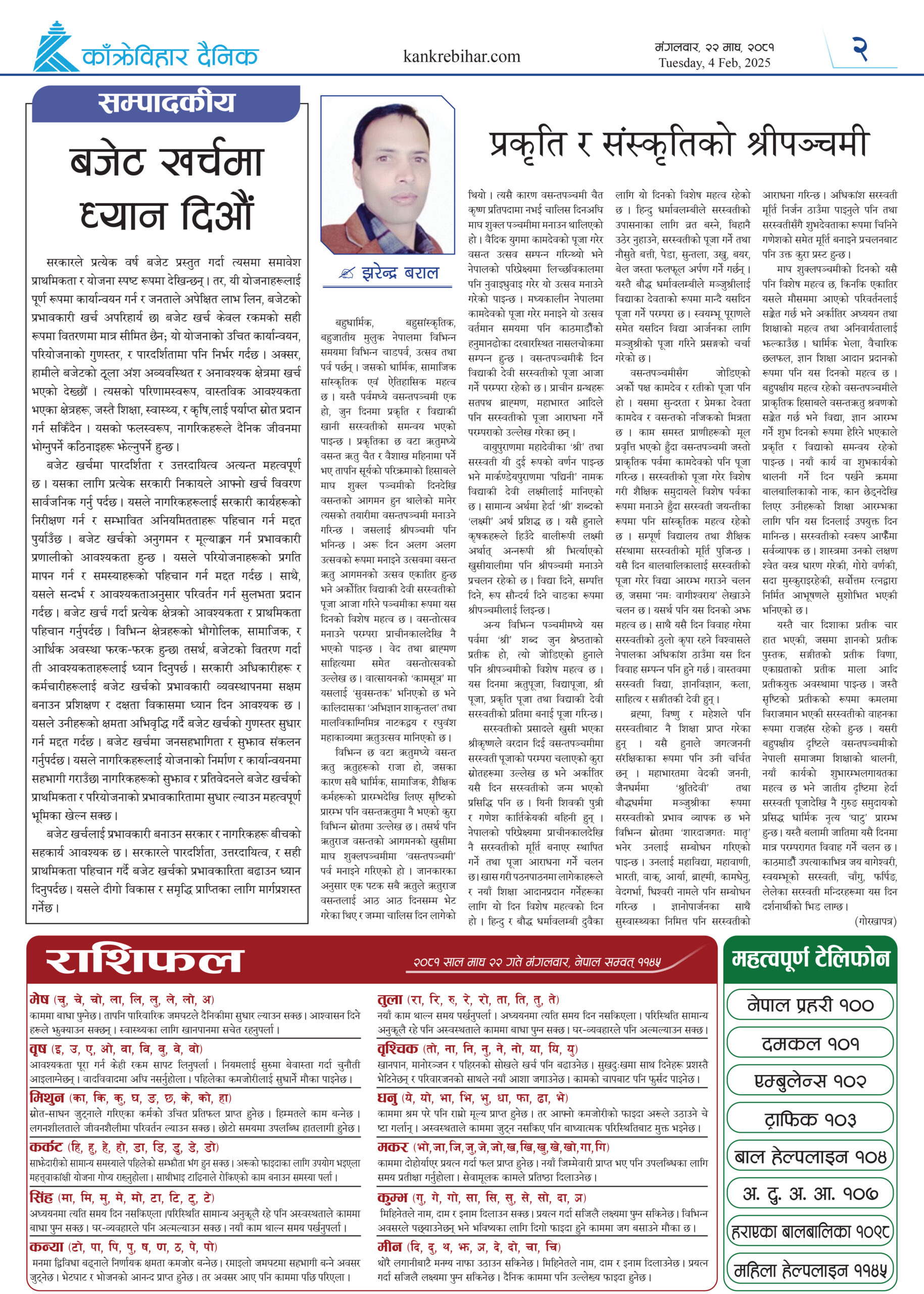 काँक्रेविहार दैनिकः मंगलवार, २२ माघ २०८१, 4 Feb 2025
