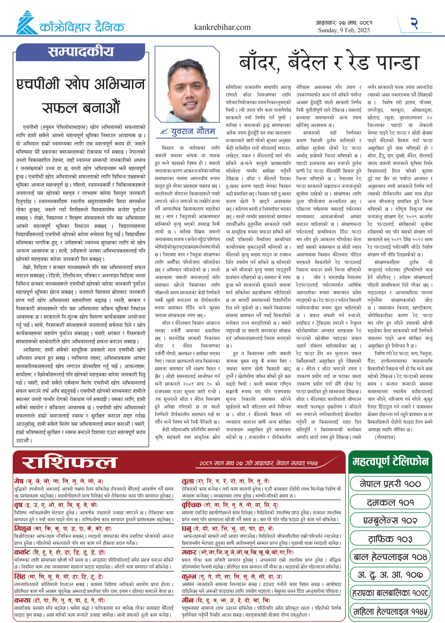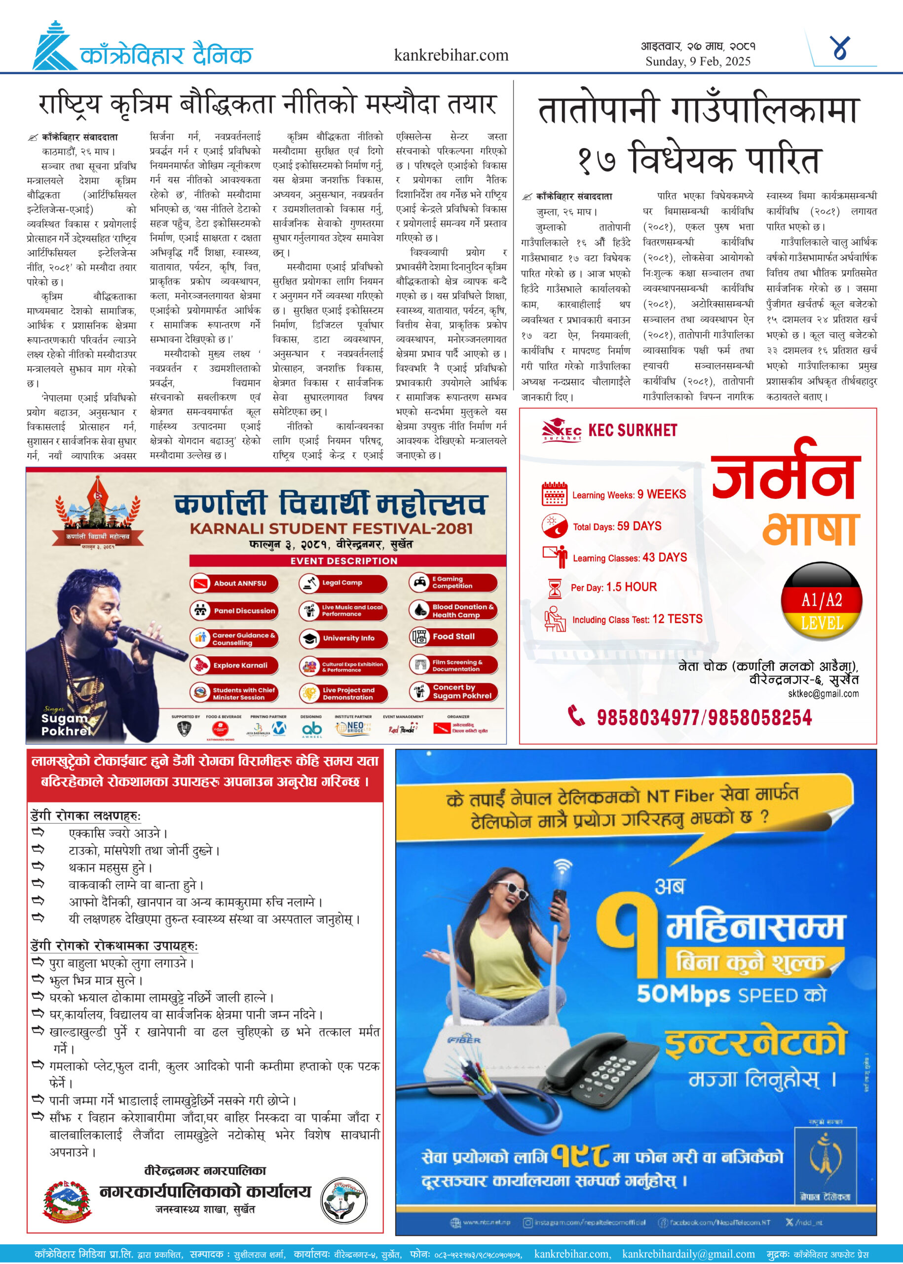 काँक्रेविहार दैनिकः आइतवार, २७ माघ २०८१, 9 Feb 2025