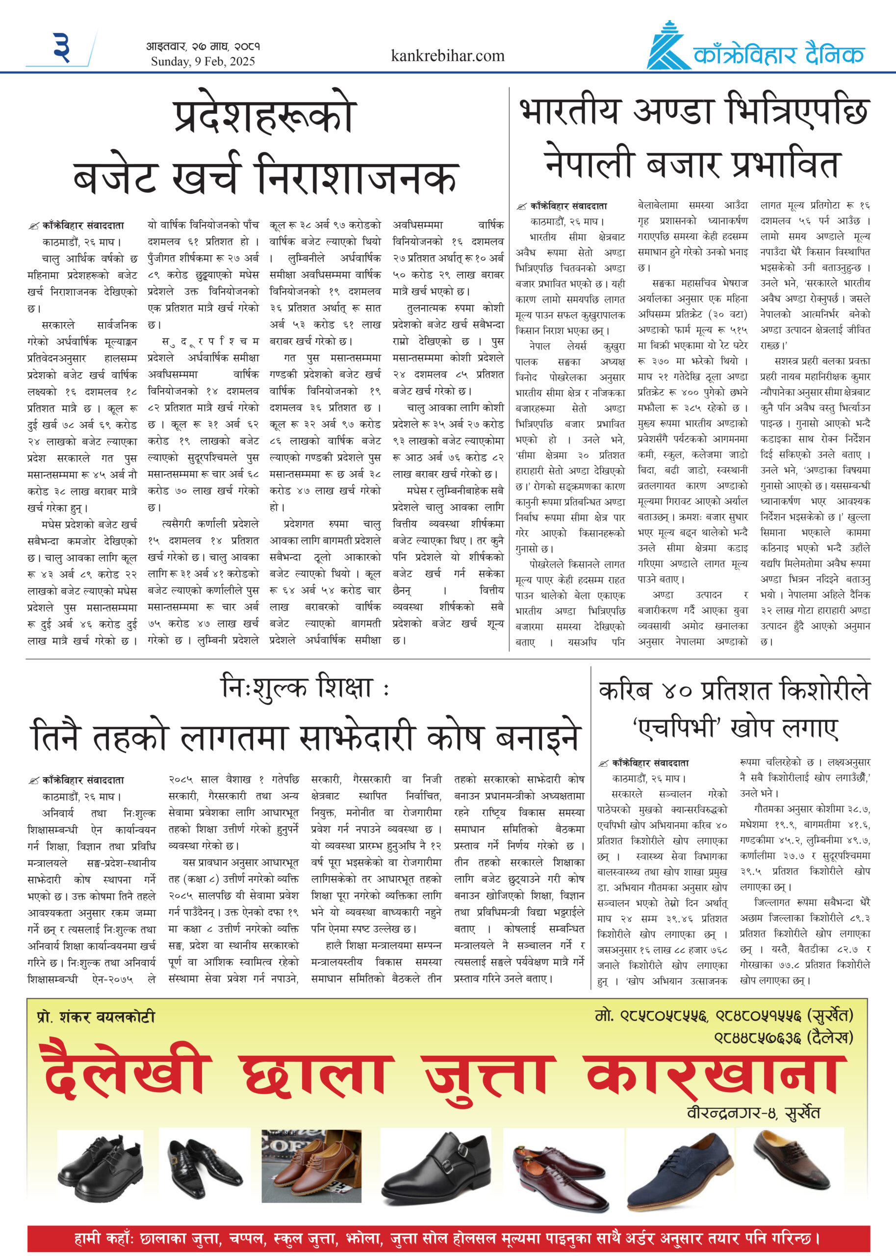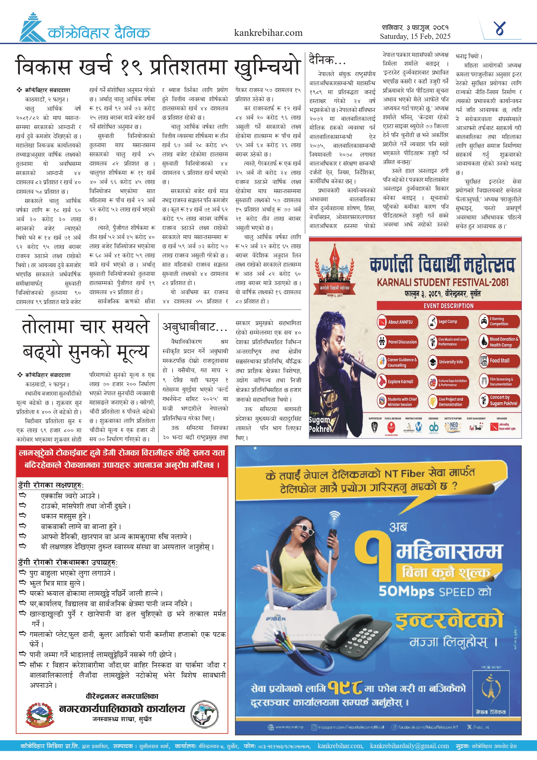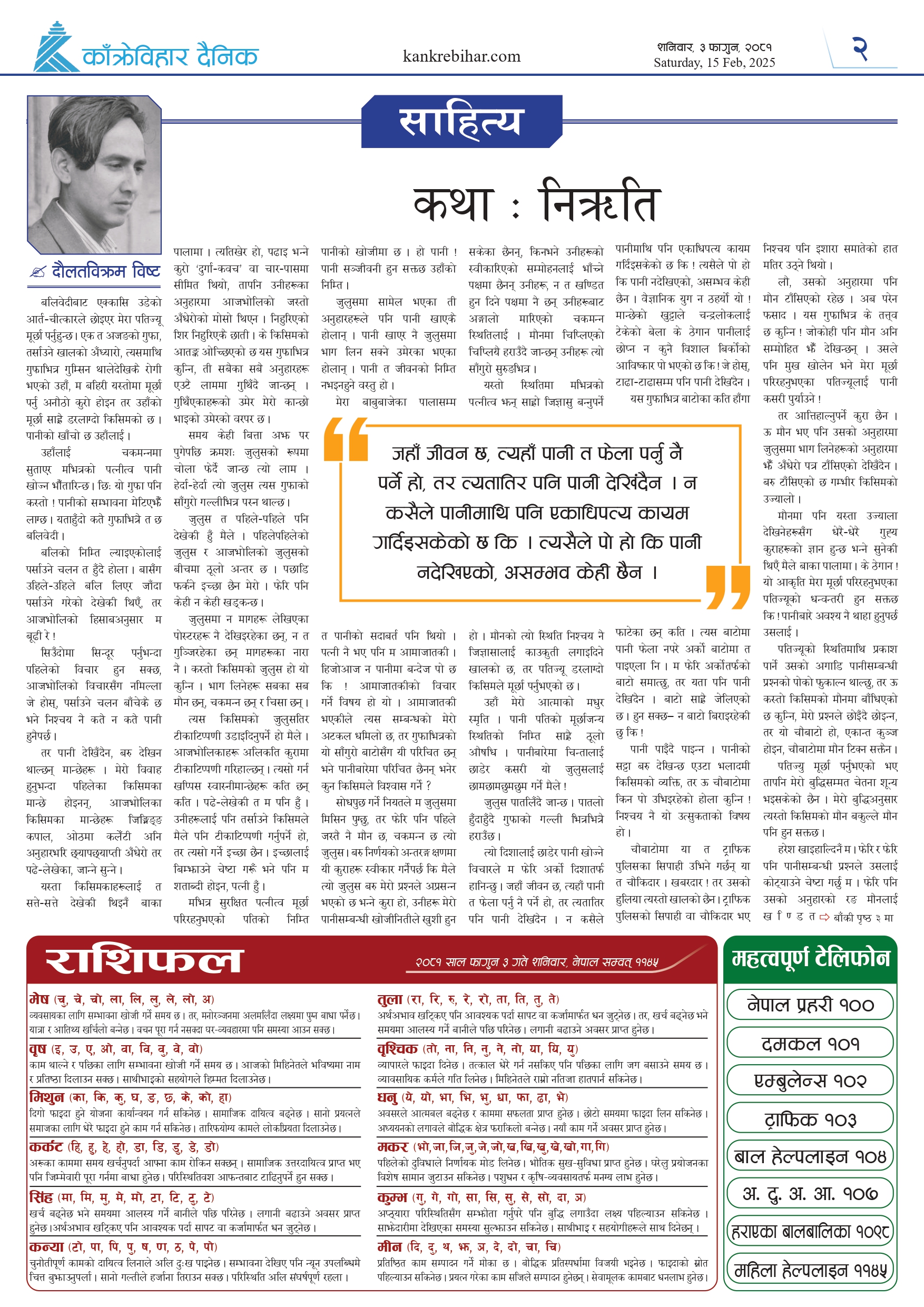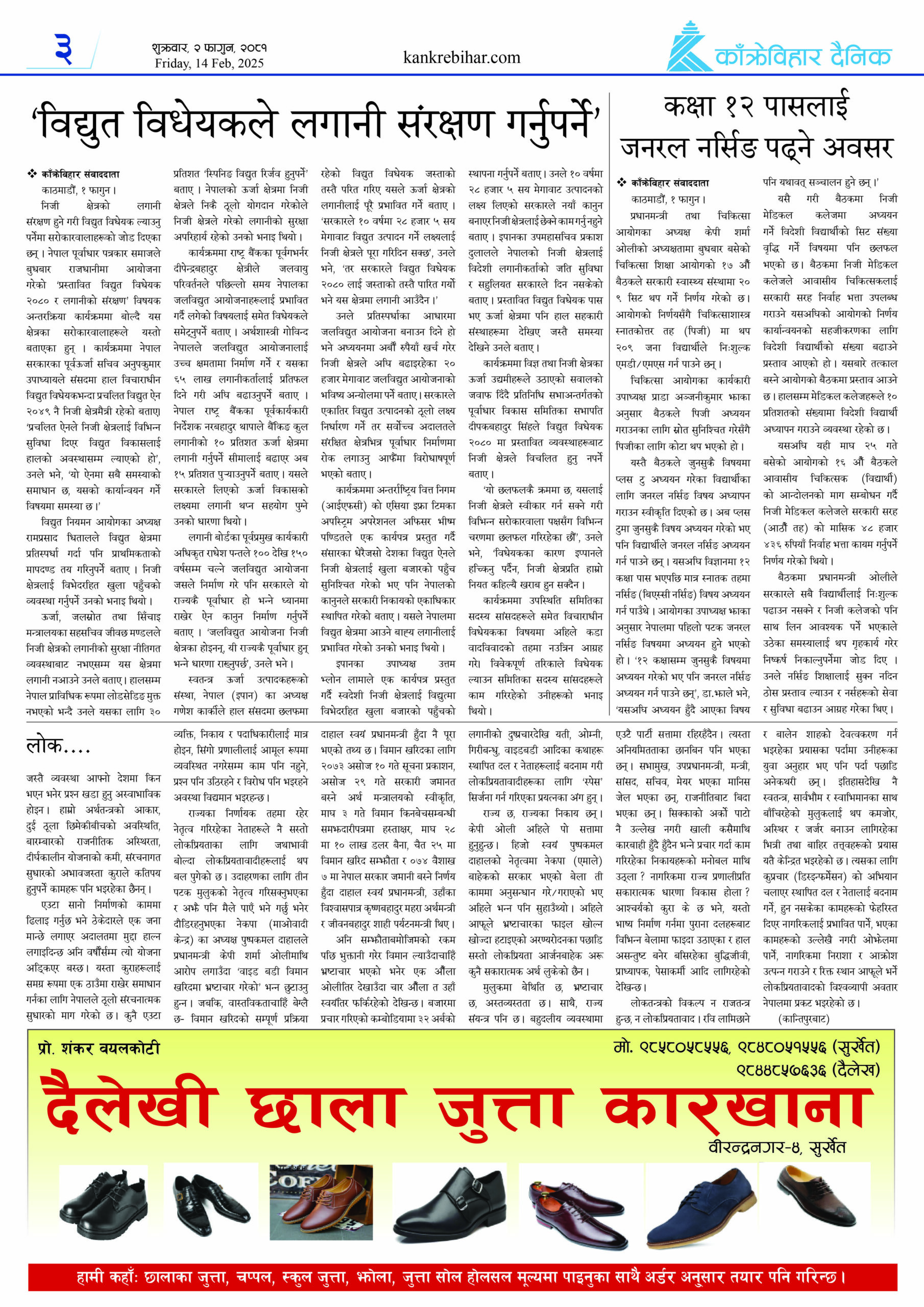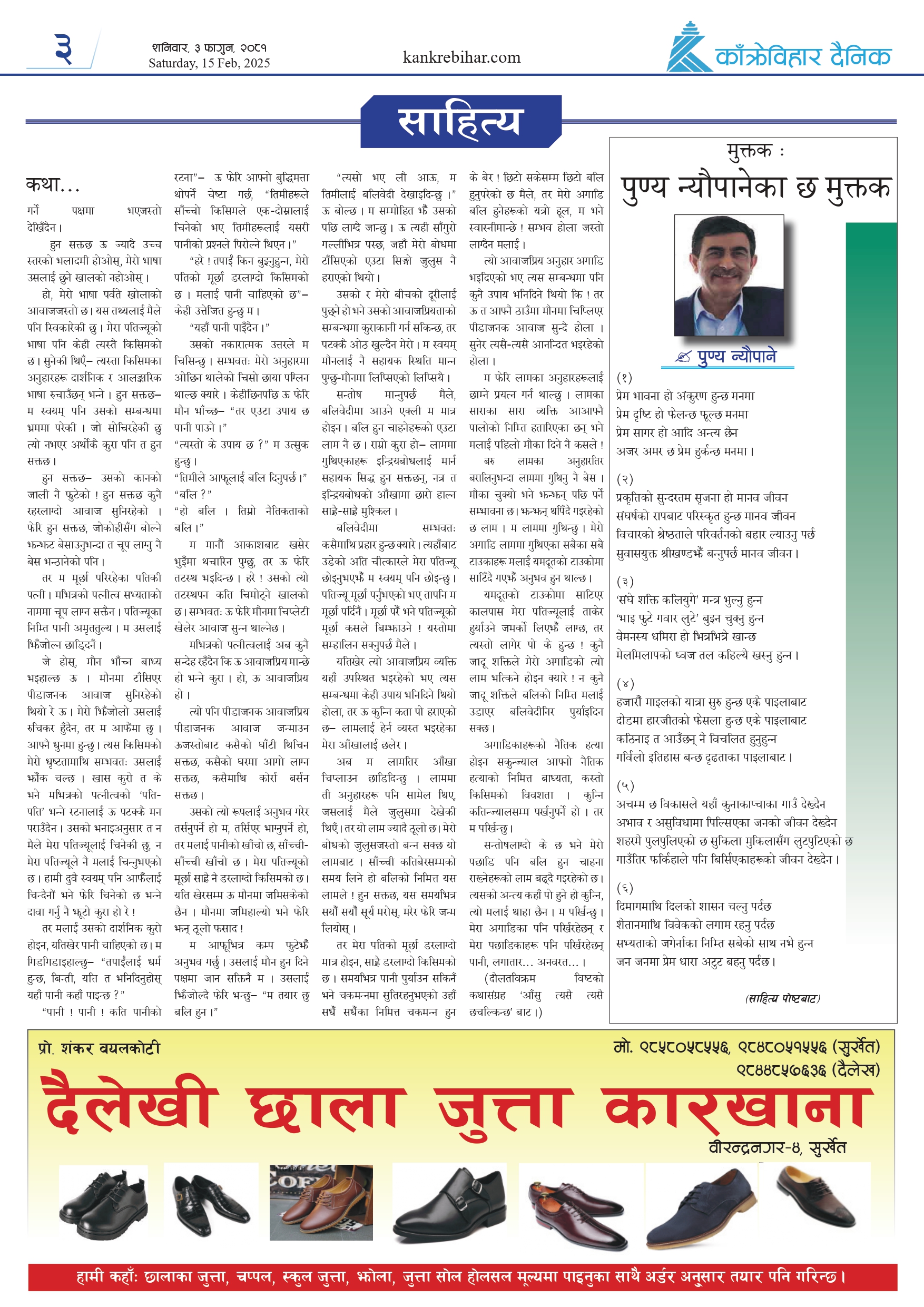 काँक्रेविहार दैनिकः शनिवार, ३ फागुन २०८१, 15 Feb 2025