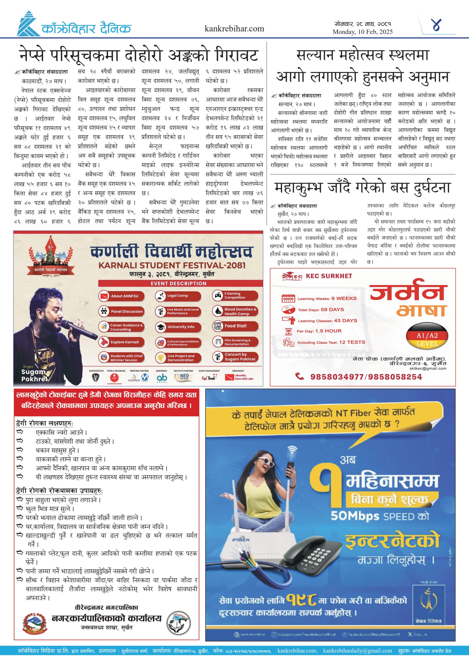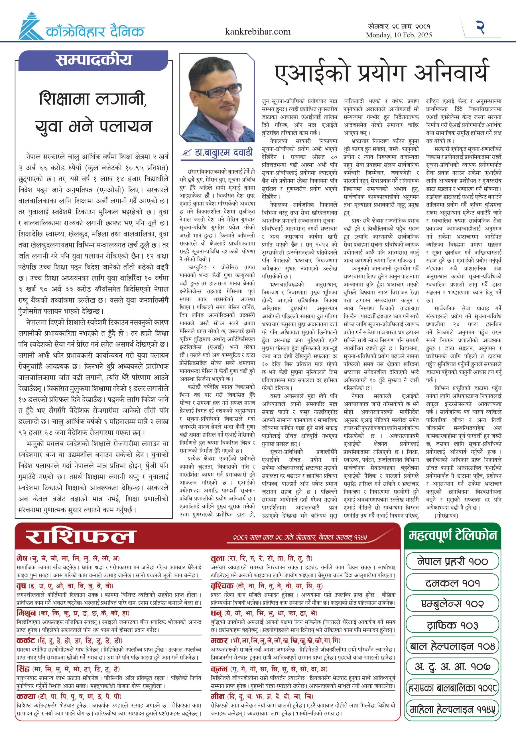 काँक्रेविहार दैनिकः साेमवार, २८ माघ २०८१, 10 Feb 2025