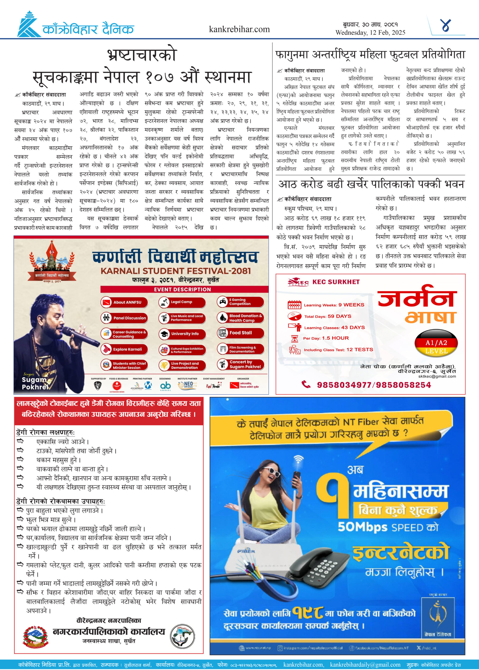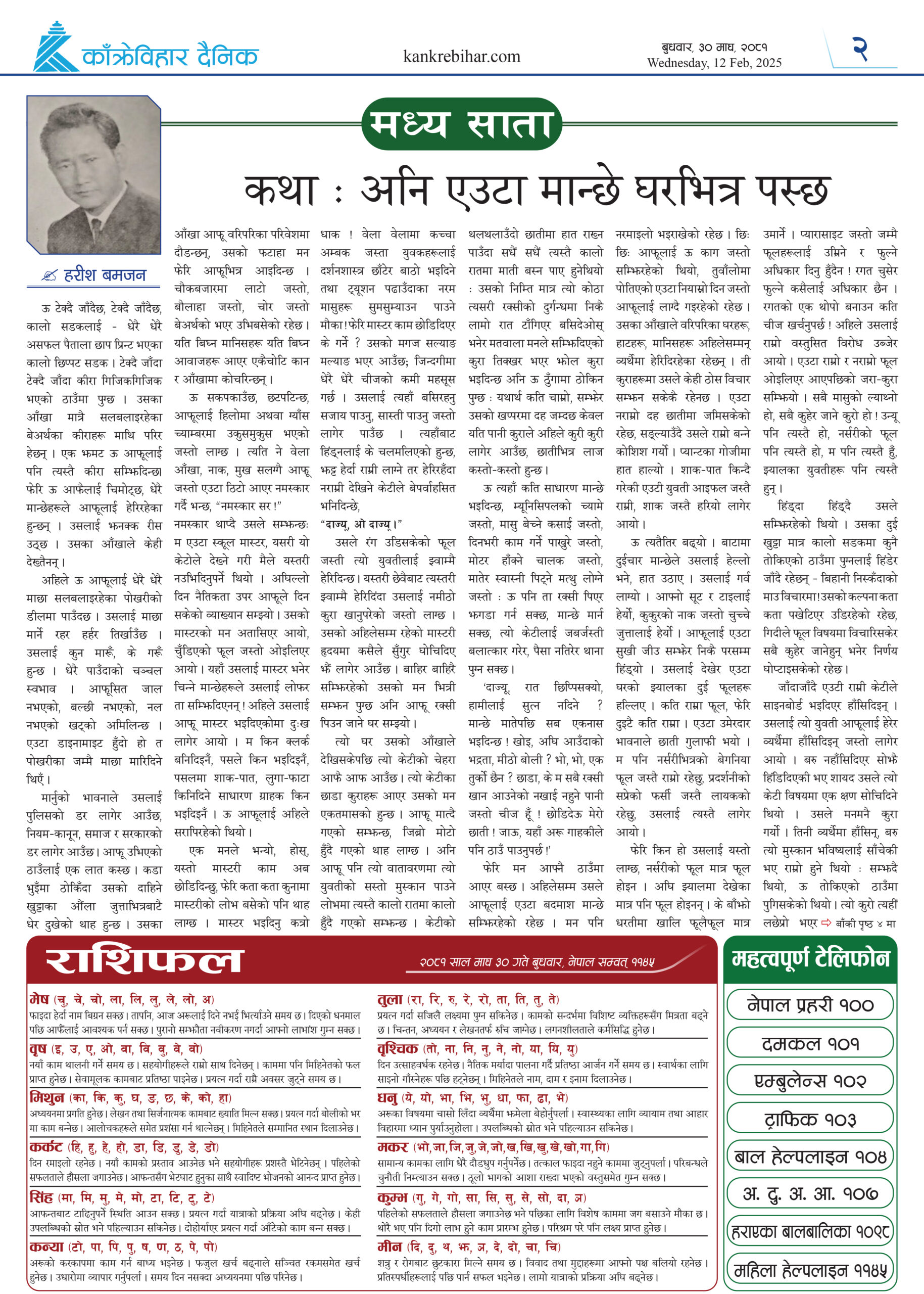 काँक्रेविहार दैनिकः बुधवार, ३० माघ २०८१, 12 Feb 2025