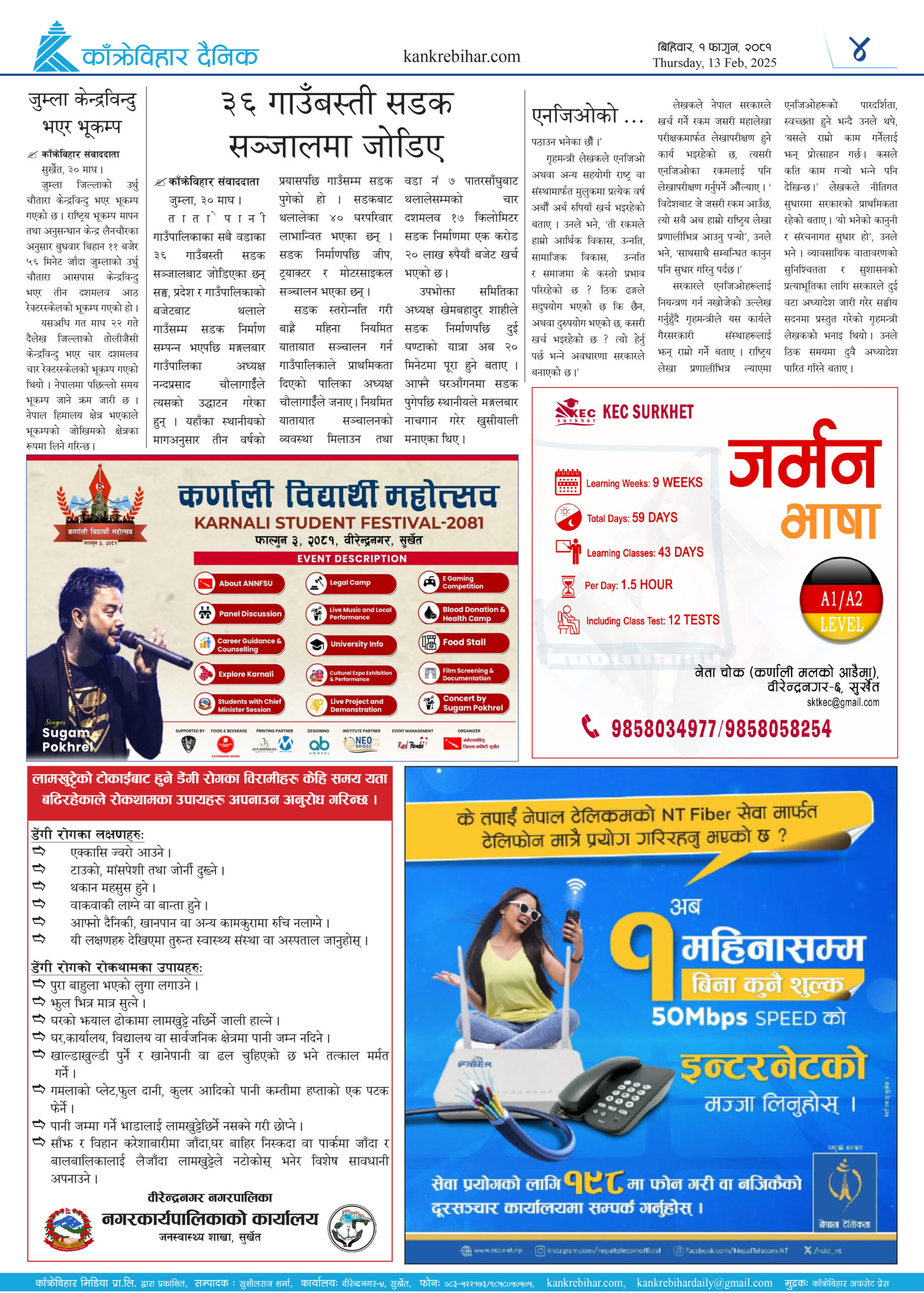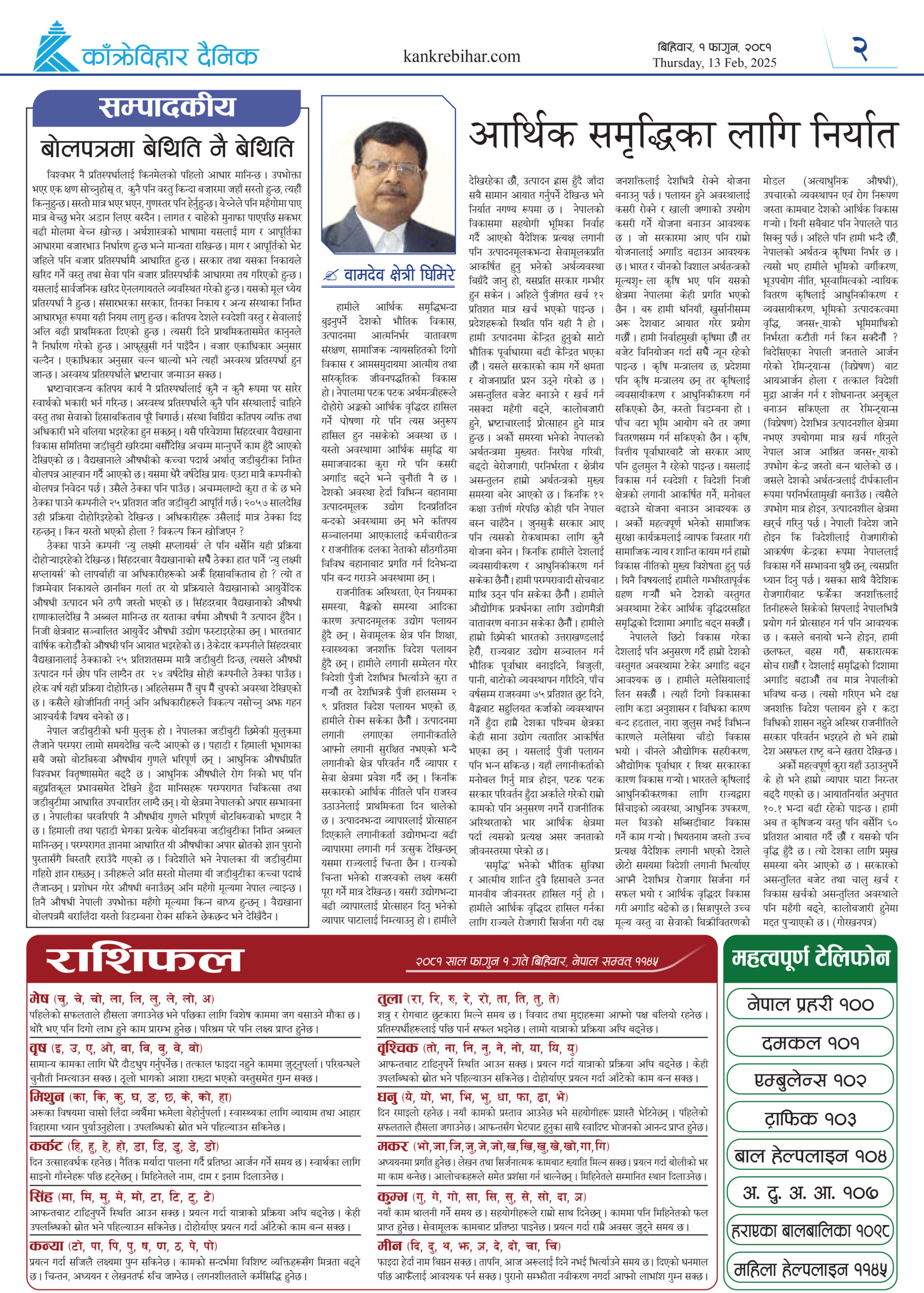 काँक्रेविहार दैनिकः बिहिवार, १ फागुन २०८१, 13 Feb 2025