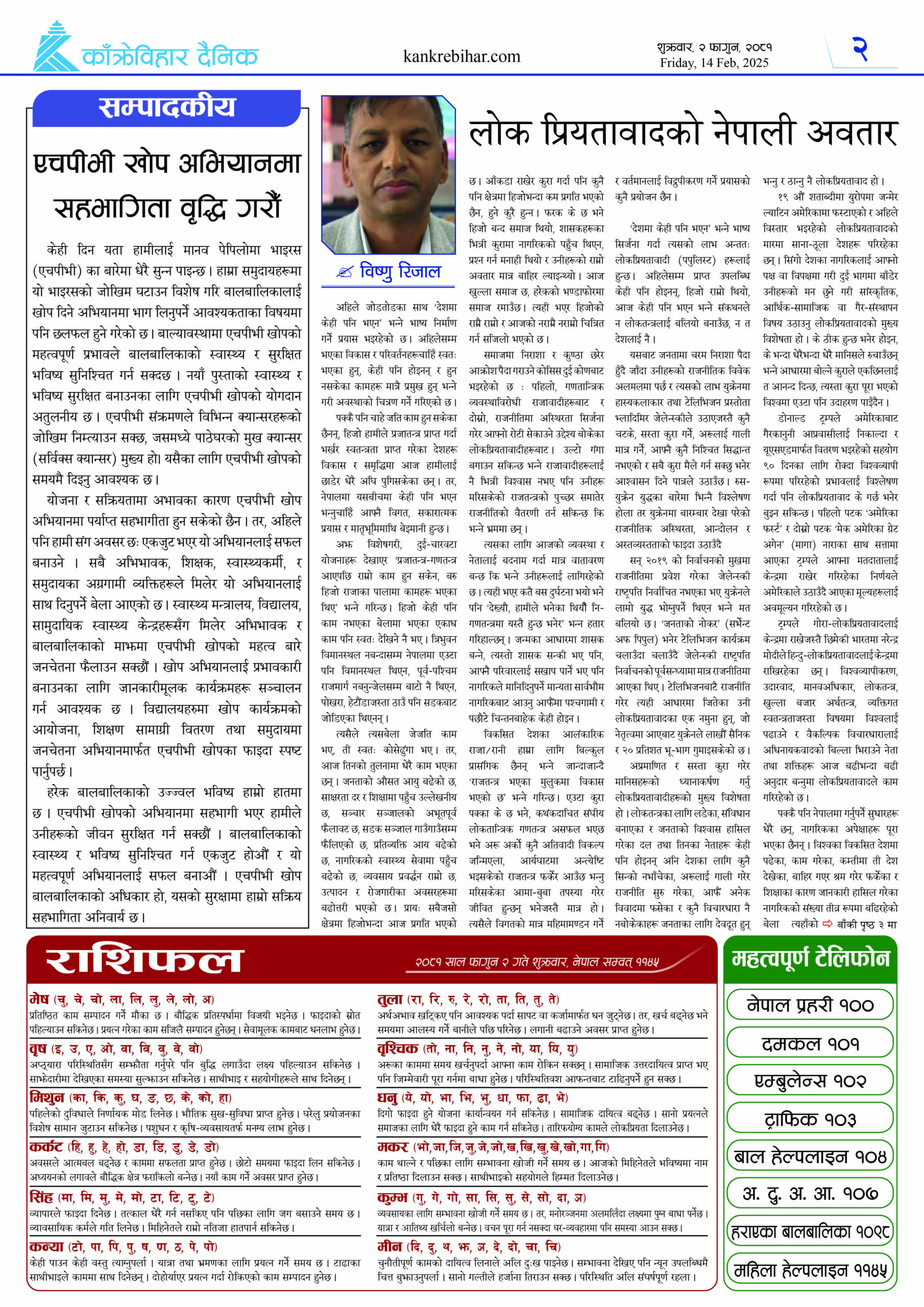 काँक्रेविहार दैनिकः बिहिवार, २ फागुन २०८१, 14 Feb 2025