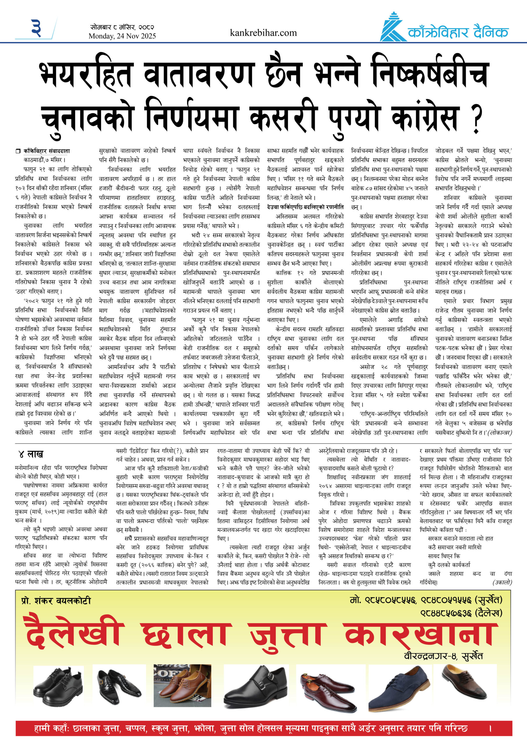 काँक्रेविहार दैनिकःसाेमबार ८ मंसिर २०८२, 24 Nov 2025