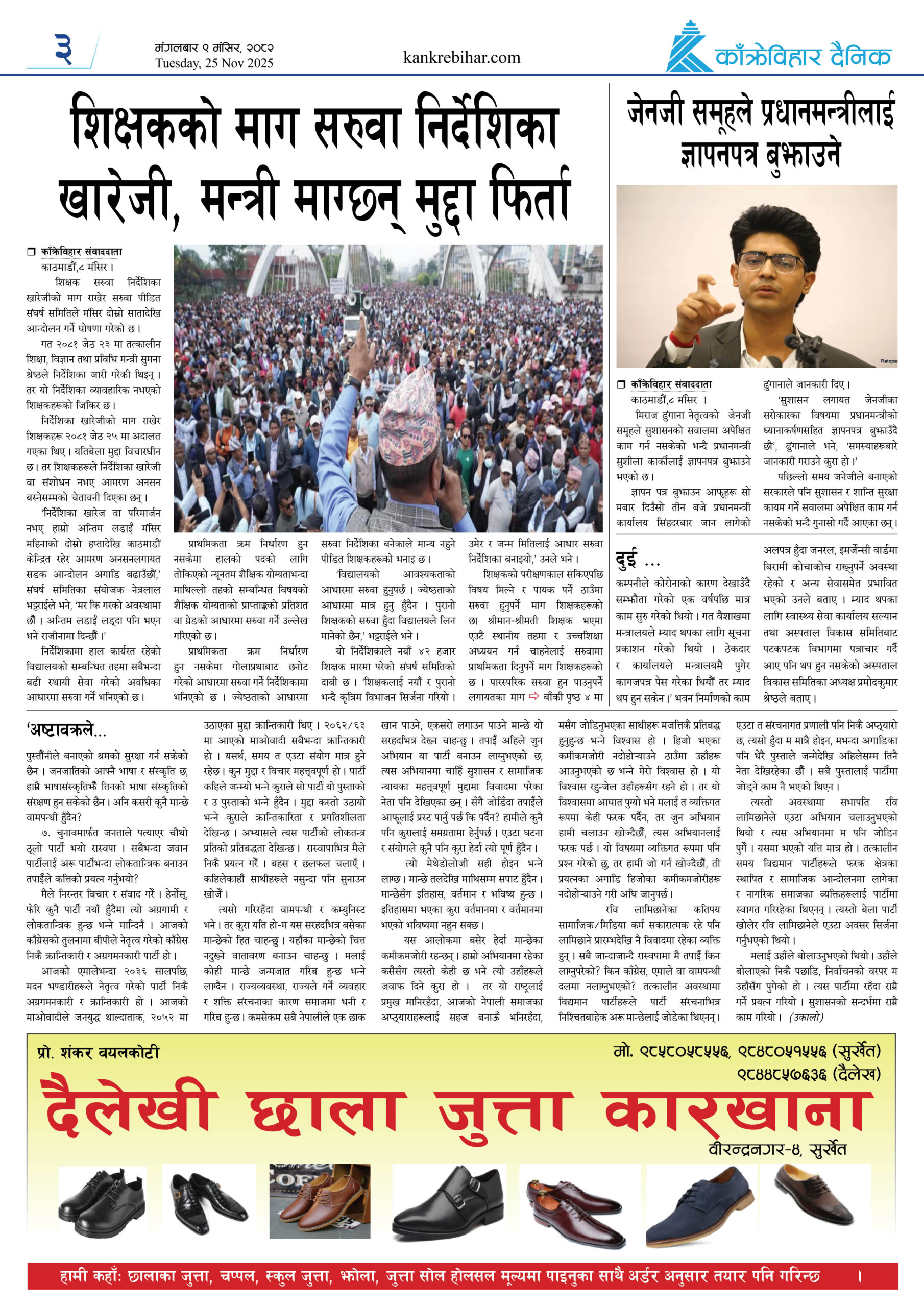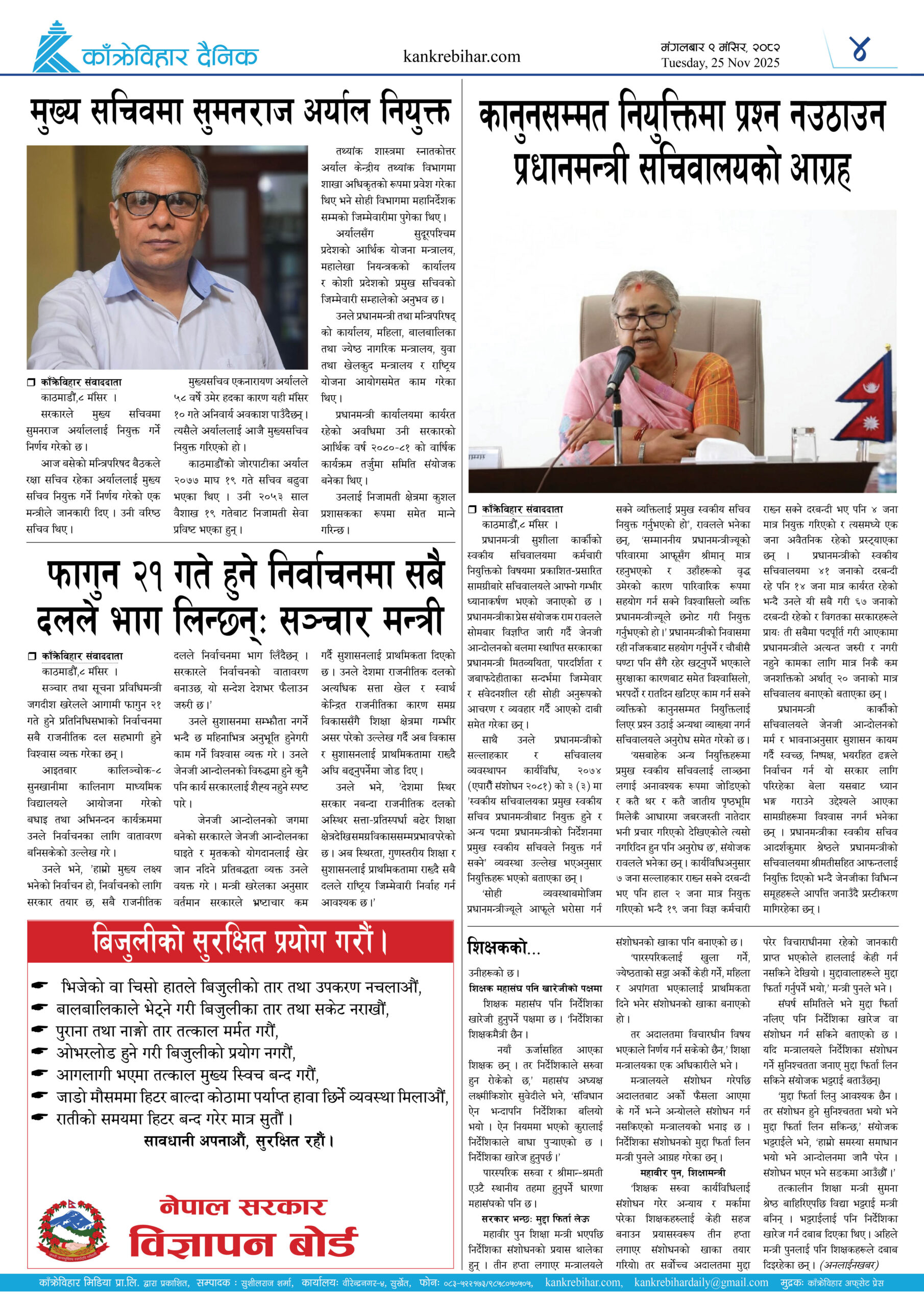 काँक्रेविहार दैनिकःमंगलबार ९ मंसिर २०८२, 25 Nov 2025