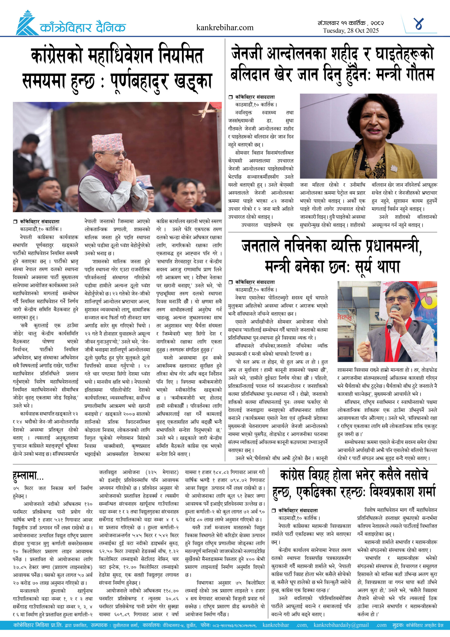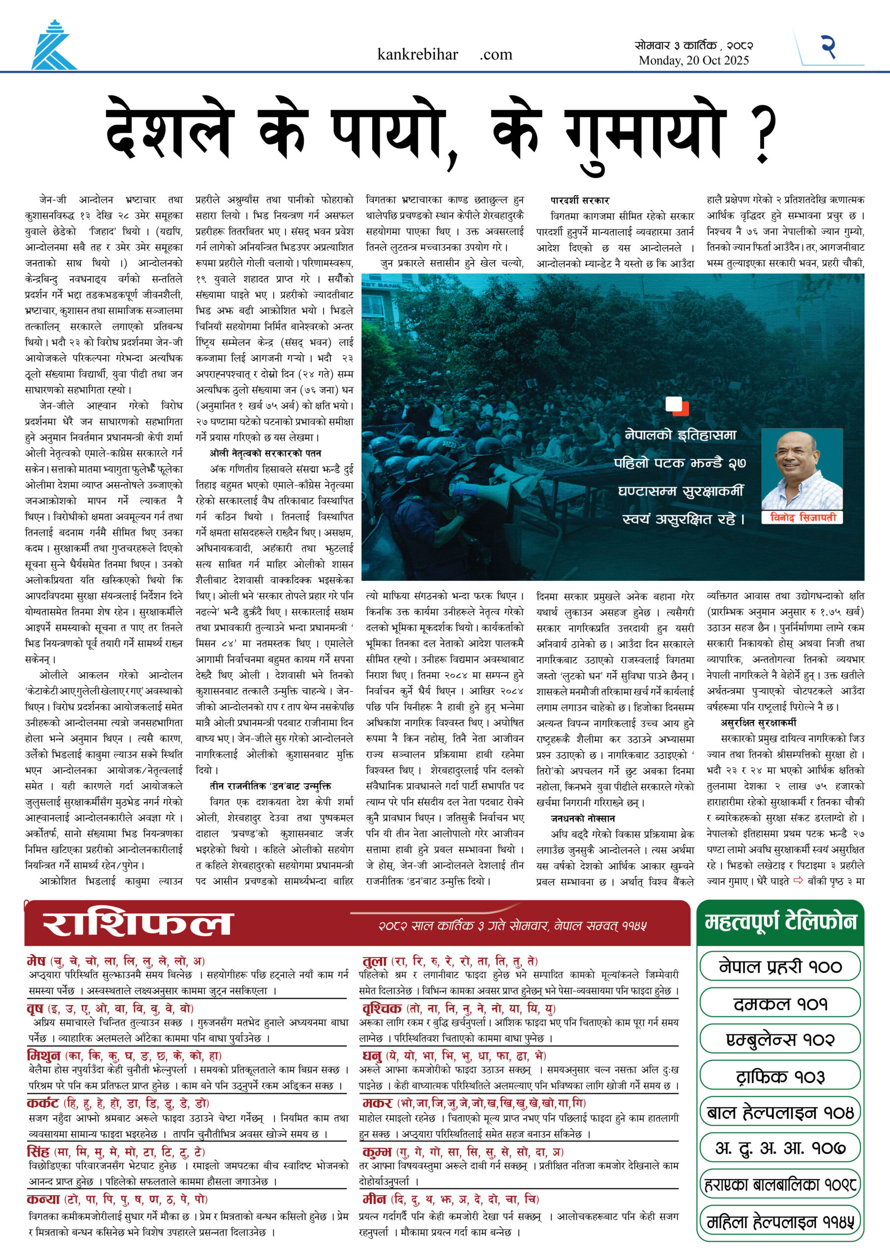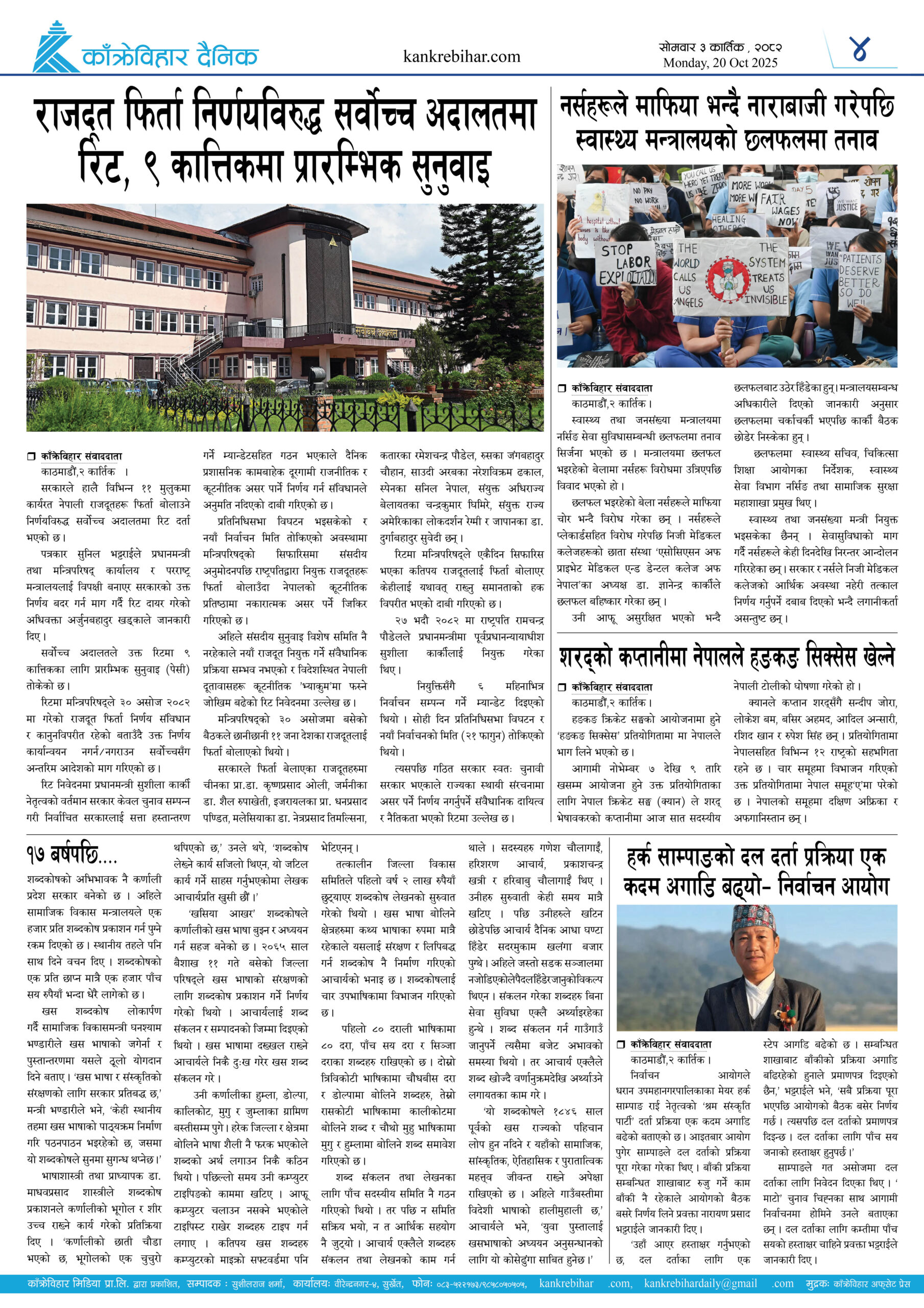 काँक्रेविहार दैनिकः साेमवार ३ कार्तिक २०८२, 20 Oct 2025