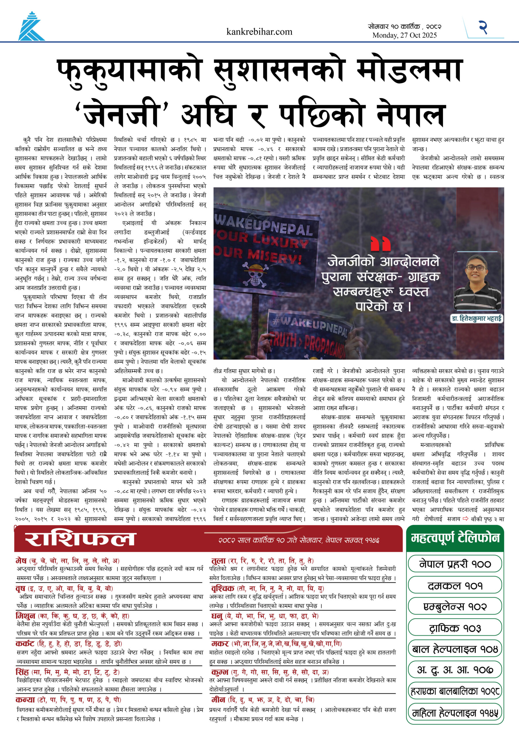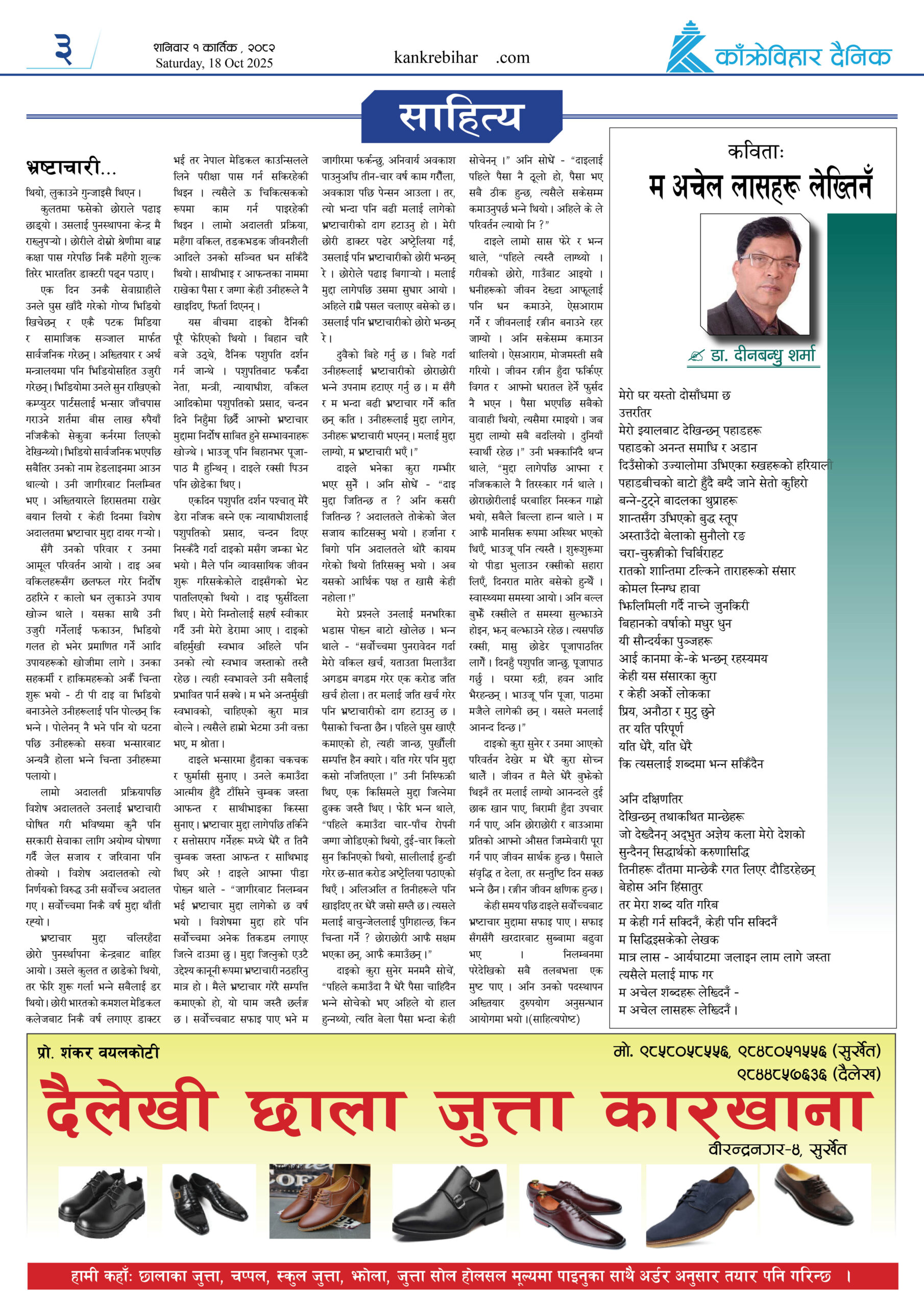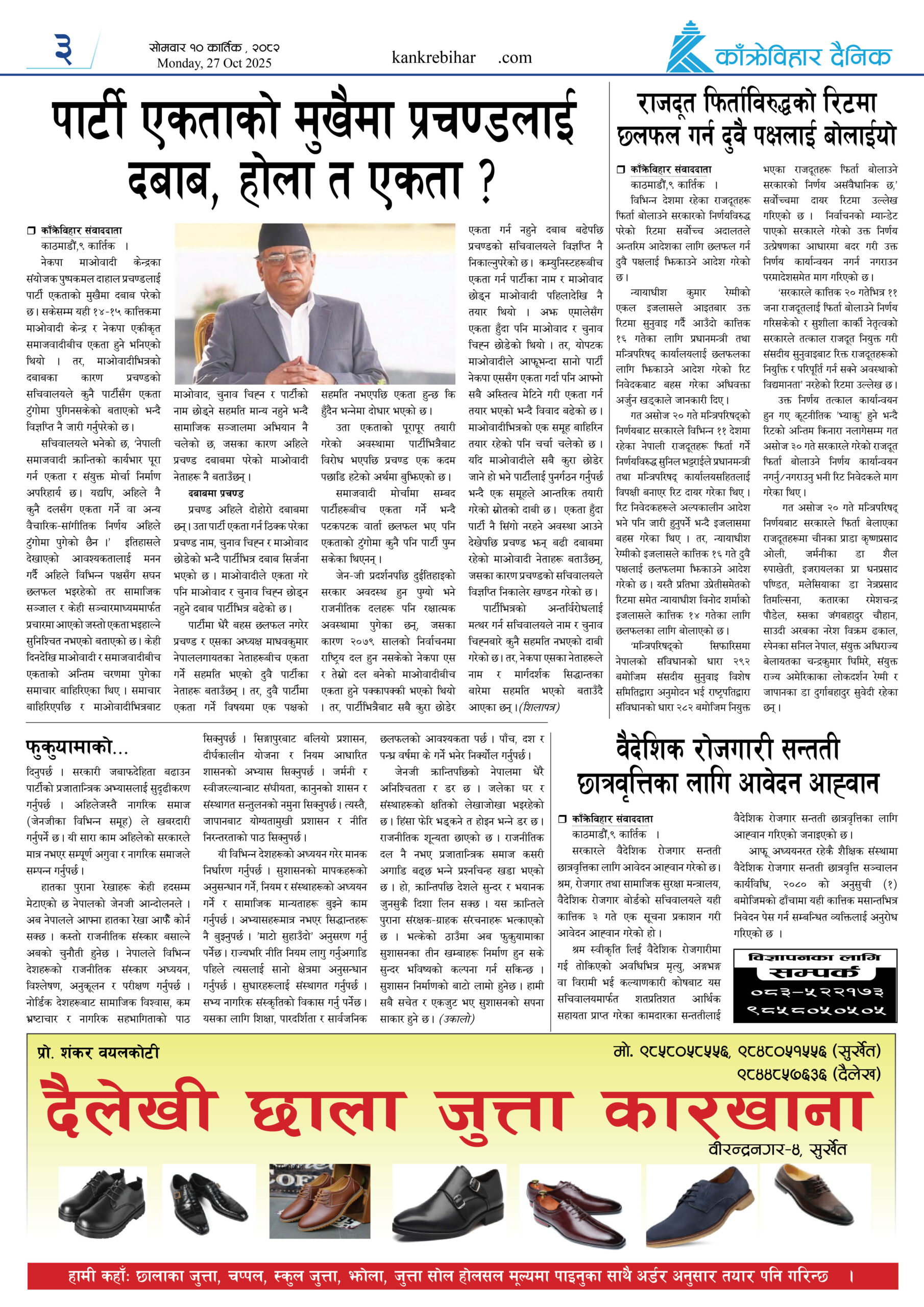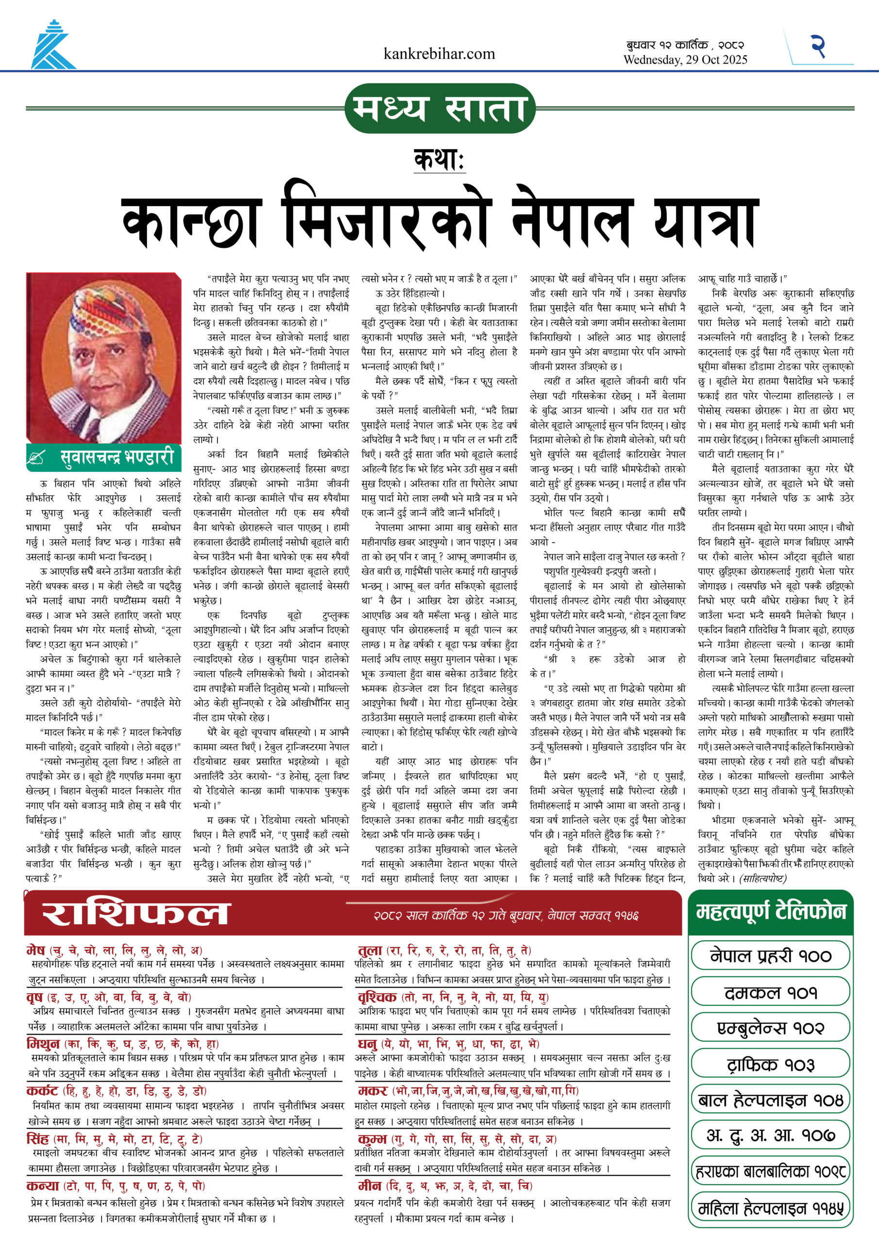 काँक्रेविहार दैनिकः साेमवार ३ कार्तिक २०८२, 20 Oct 2025