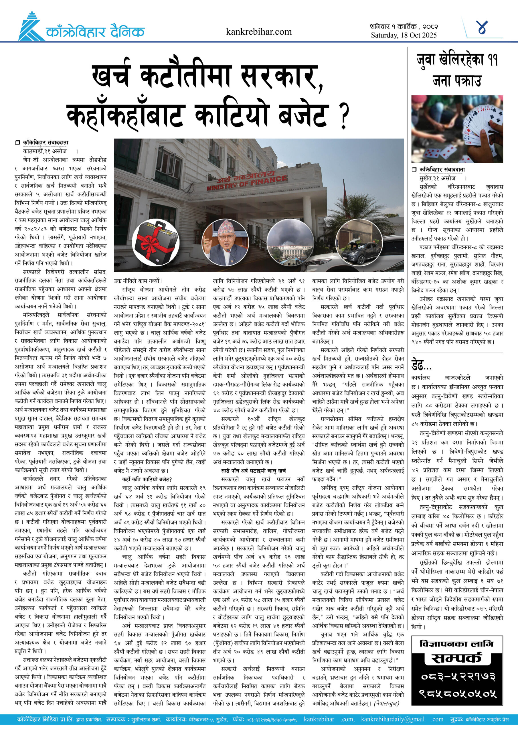 काँक्रेविहार दैनिकः शनिवार १ कार्तिक २०८२, 18 Oct 2025