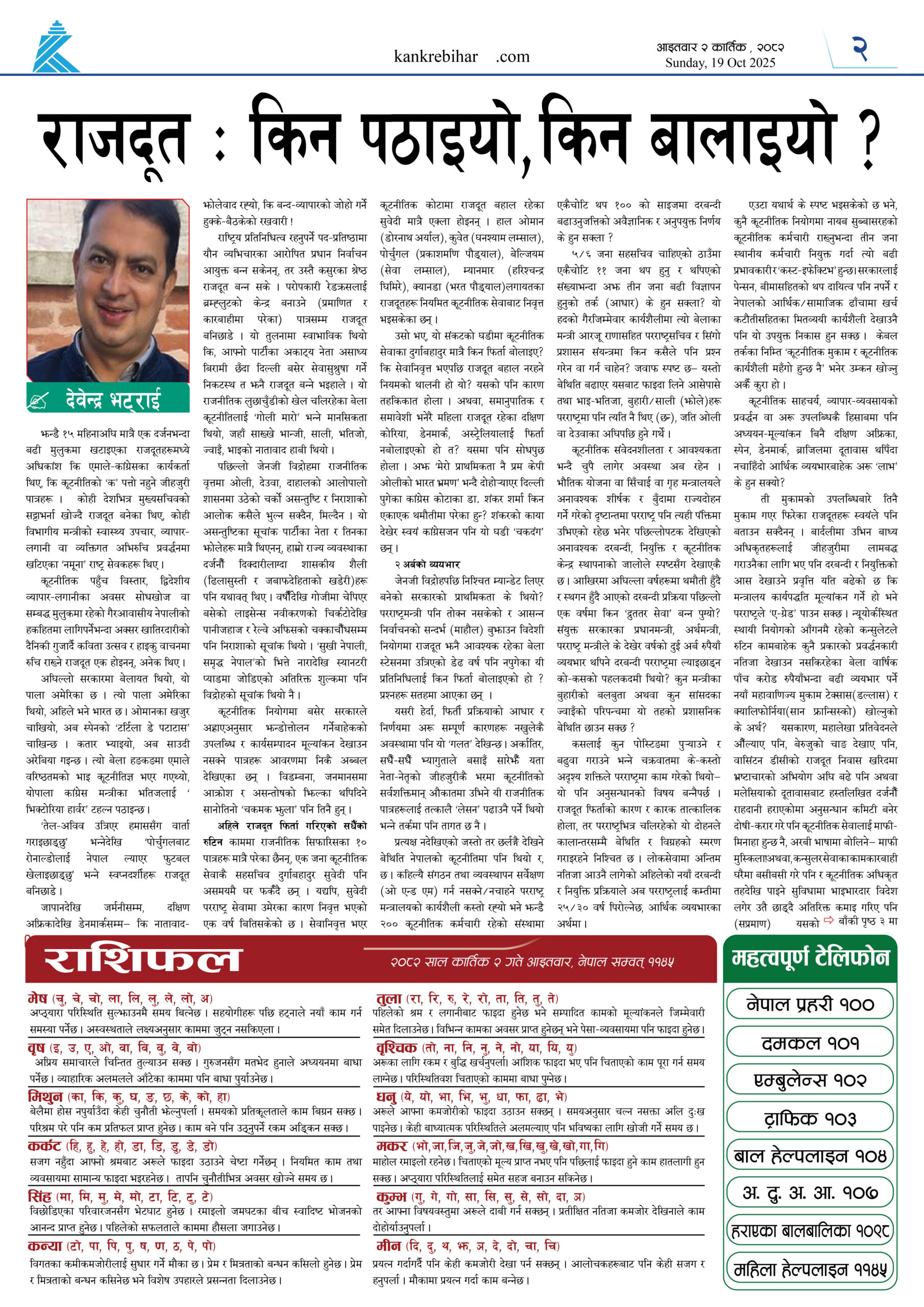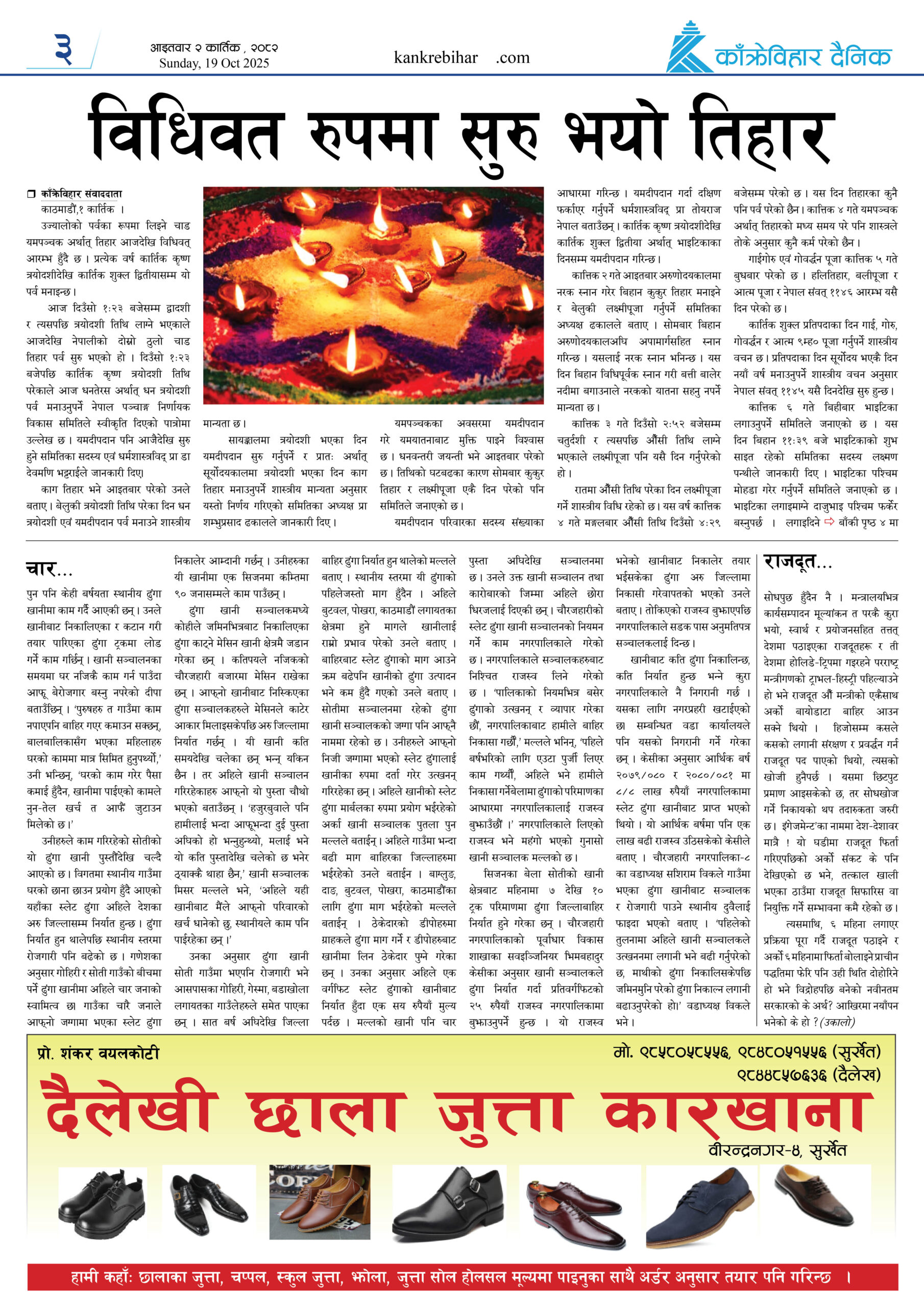 काँक्रेविहार दैनिकः आइतवार २ कार्तिक २०८२, 19 Oct 2025